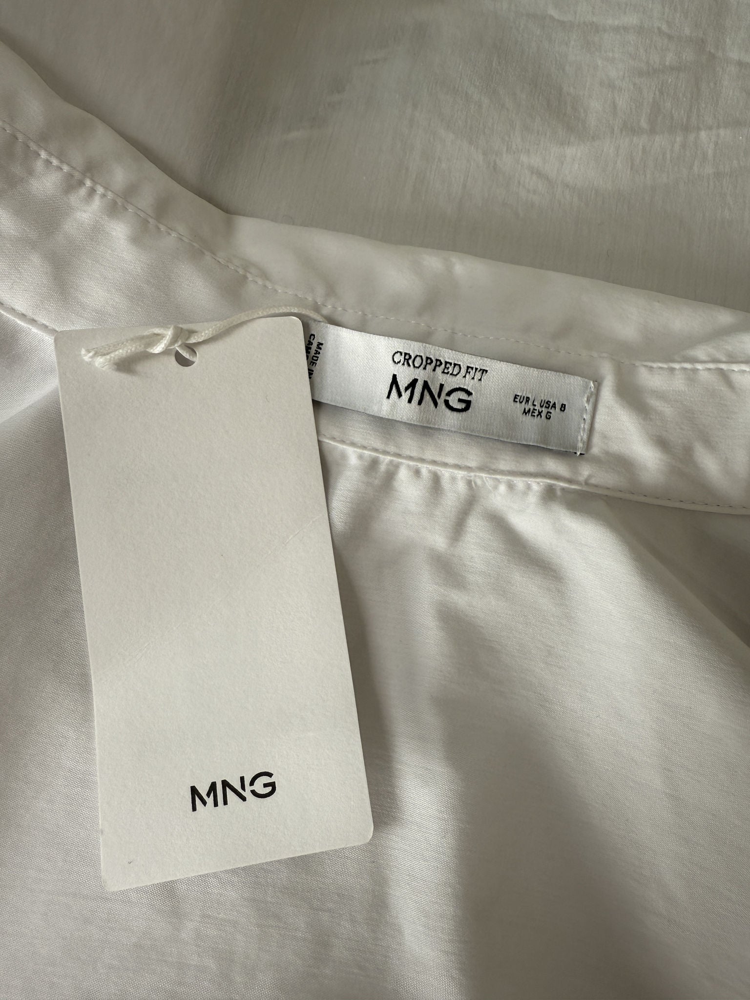 Cooles Secondhand Cropped Hemd von Mango in Weiß.