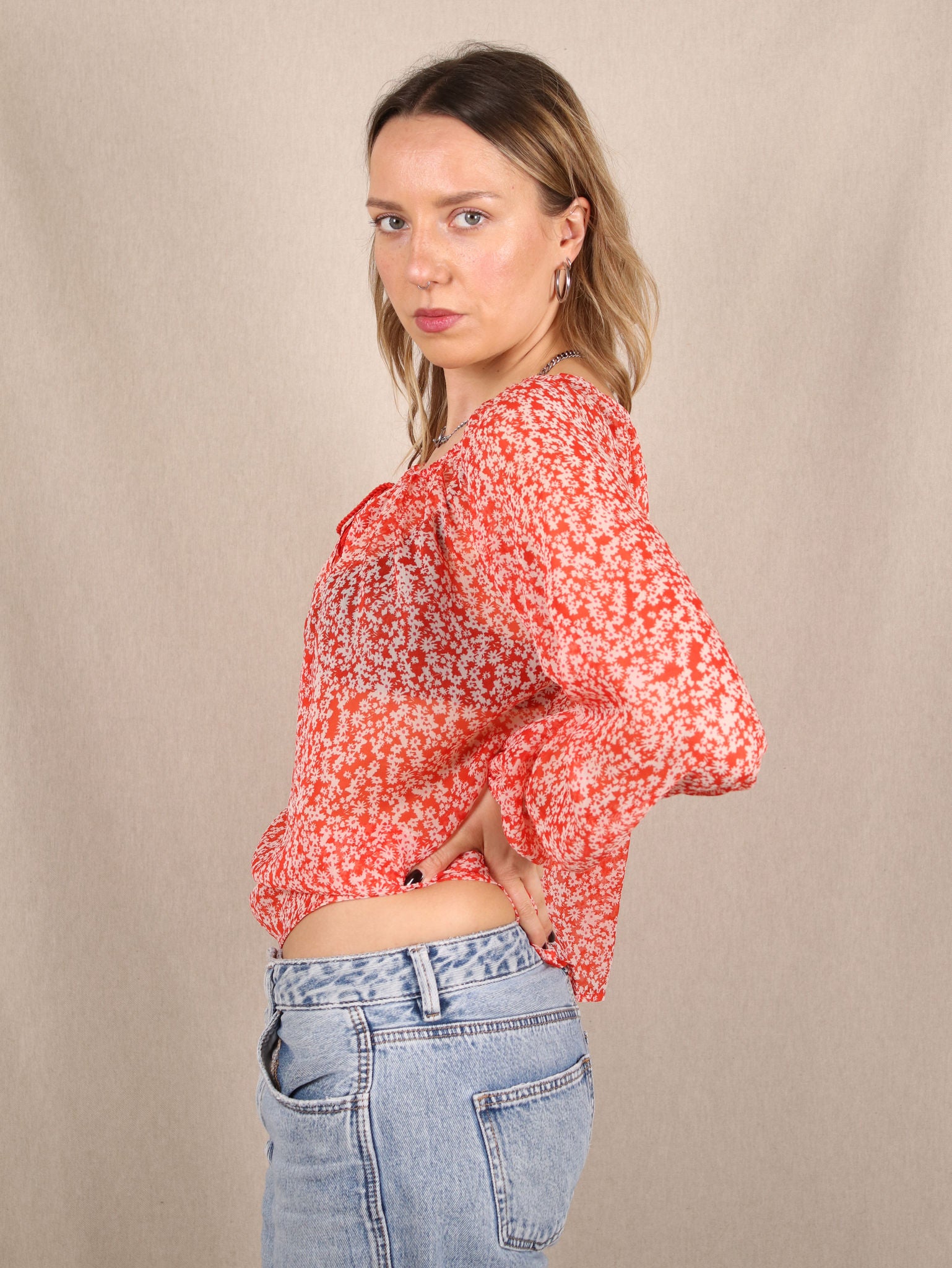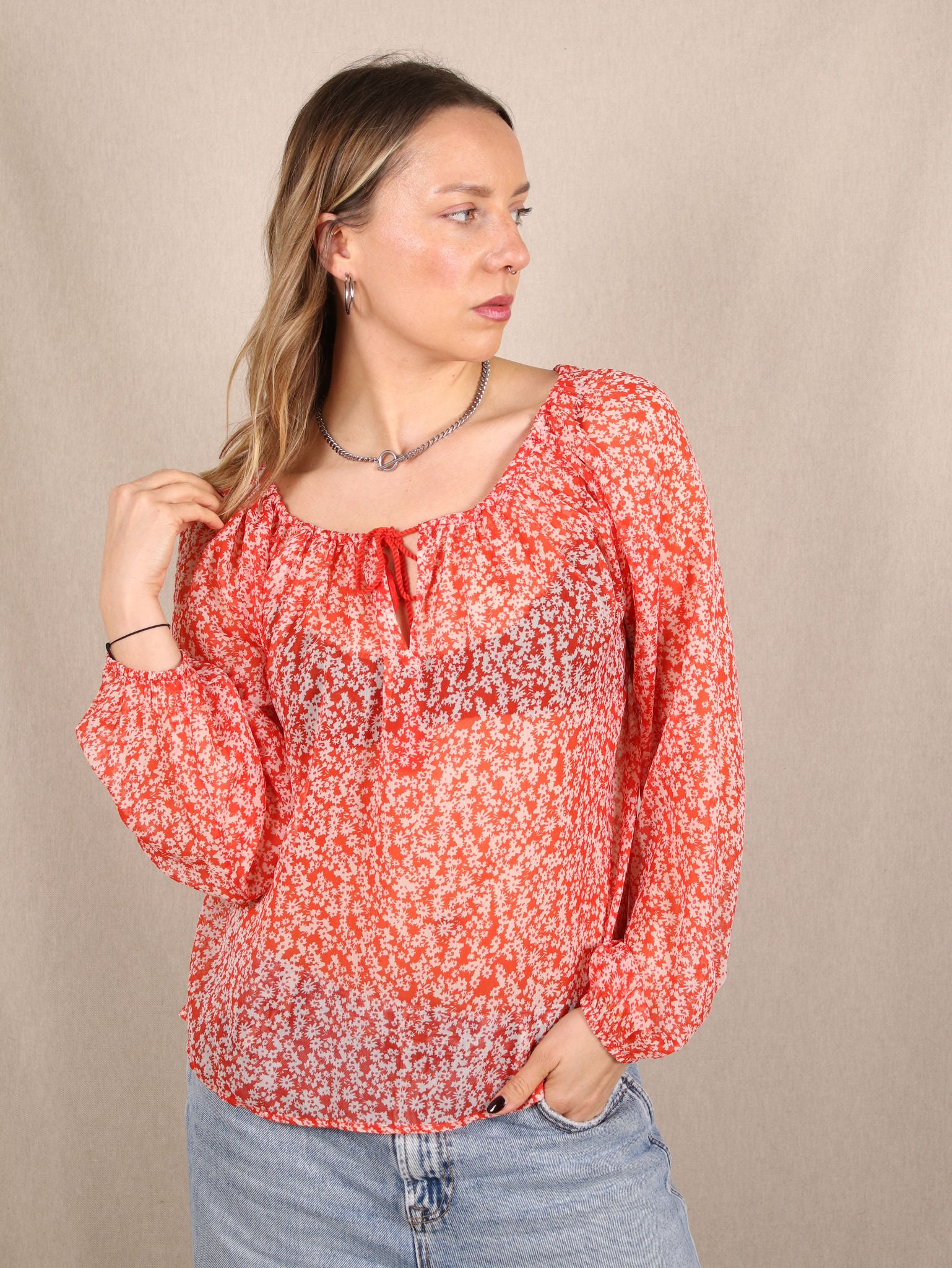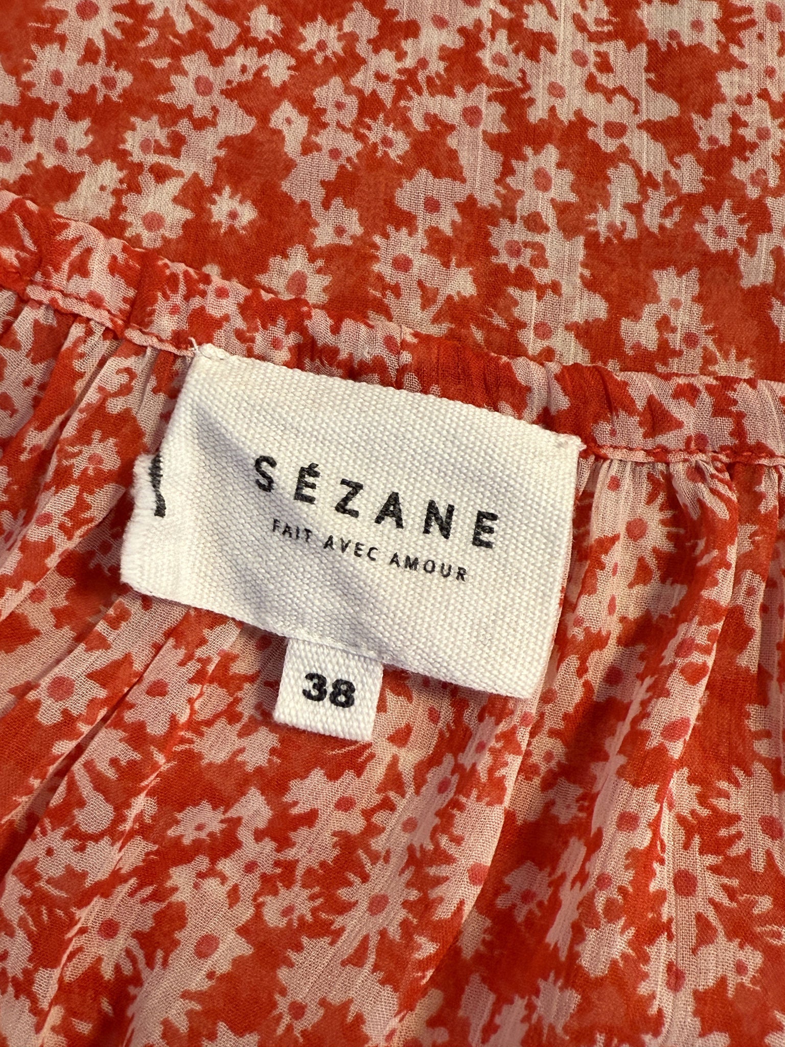 Romantisch, verspielt und ein echter Hingucker: Diese Preloved-Bluse von Sézane bringt frischen Wind in deine Garderobe! Das leichte Crêpe-Material mit floralem Muster in lebhaftem Rot versprüht sommerliche Leichtigkeit und lässt sich perfekt zu Denim oder fließenden Röcken kombinieren. Mit ihren zarten Puffärmeln und dem Kordelzug am Ausschnitt sorgt sie für eine Prise Vintage-Charme. Ein Must-have für alle, die Secondhand-Mode lieben und nach einem femininen, stilvollen Statement suchen!