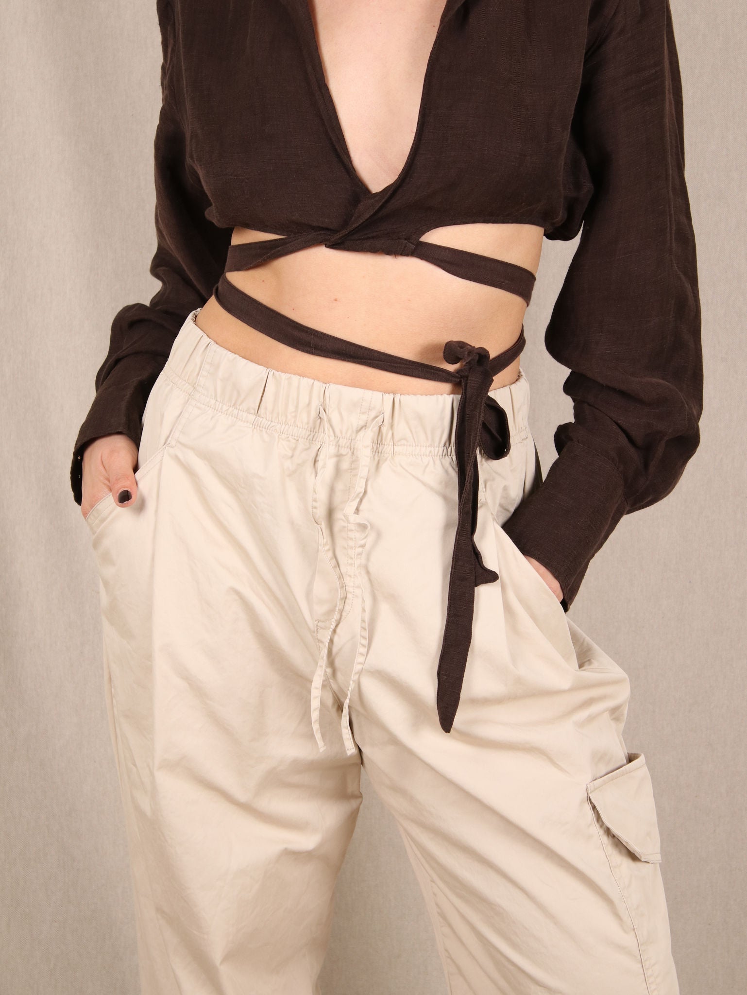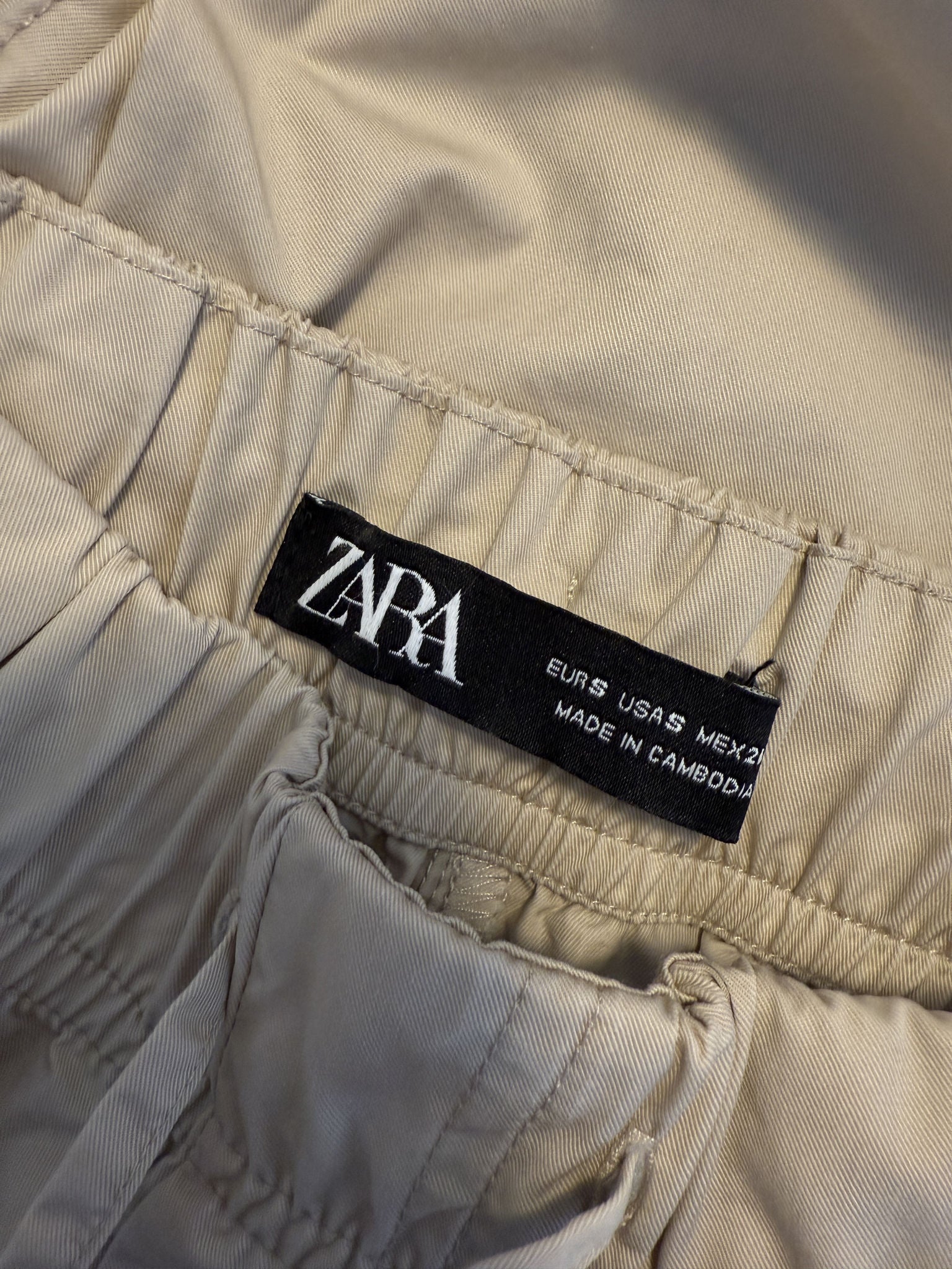 Diese Secondhand Cargohose von Zara in Ecru kombiniert Utility-Style mit lässiger Coolness. Die weite Passform und die praktischen Taschen machen sie zum perfekten Mix aus Funktion und Fashion. Ob mit Croptop für ein starkes Statement oder mit Oversized-Blazer für den ultimativen Stilbruch - ein Secondhand-Must-have für moderne Abenteuer.