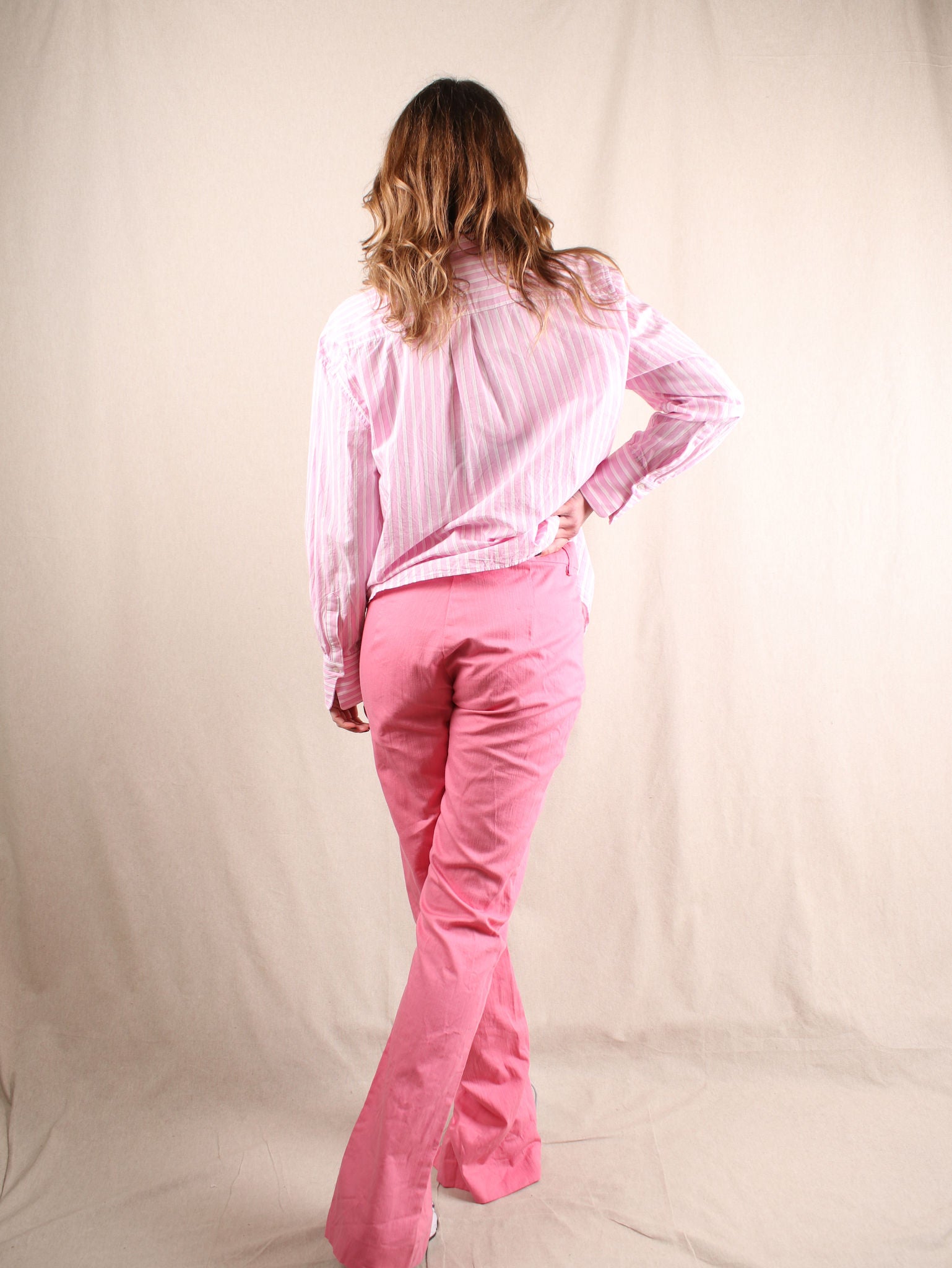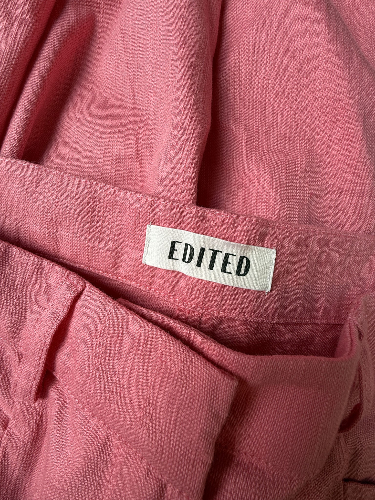 Diese Preloved Hose von EDITED bringt Frische in deine Garderobe! Der rosa Farbton setzt ein echtes Statement, während der Mix aus Bio-Baumwolle, Leinen und recyceltem Polyester für einen angenehmen Tragekomfort sorgt. Der moderne Schnitt mit weiten Beinen und stylischen Saumschlitzen macht sie perfekt für entspannte, aber dennoch trendige Looks. Kombiniere sie mit Oversize-Shirts für einen lässigen Vibe oder mit Blazer und Heels für einen edgy Twist!