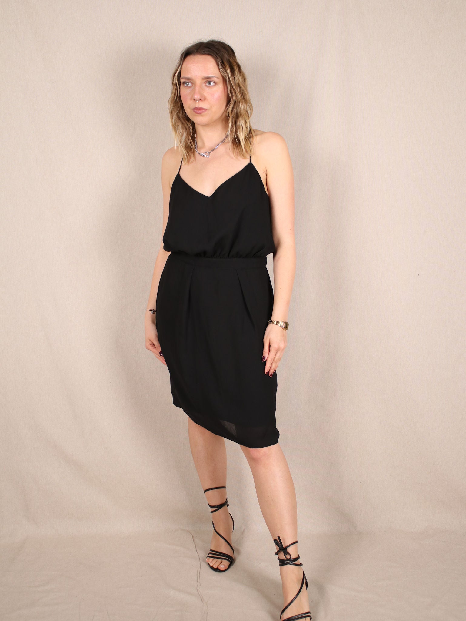 Dieses Secondhand Kleid von Envii ist minimalistisch, aber mit maximalem Effekt. Das schlichte schwarze Design bekommt durch den tiefen Rückenausschnitt mit überkreuzten Trägern ein aufregendes Detail. Der leichte Stoff sorgt für ein angenehmes Tragegefühl - perfekt für schicke Events oder elegante Abendlooks.