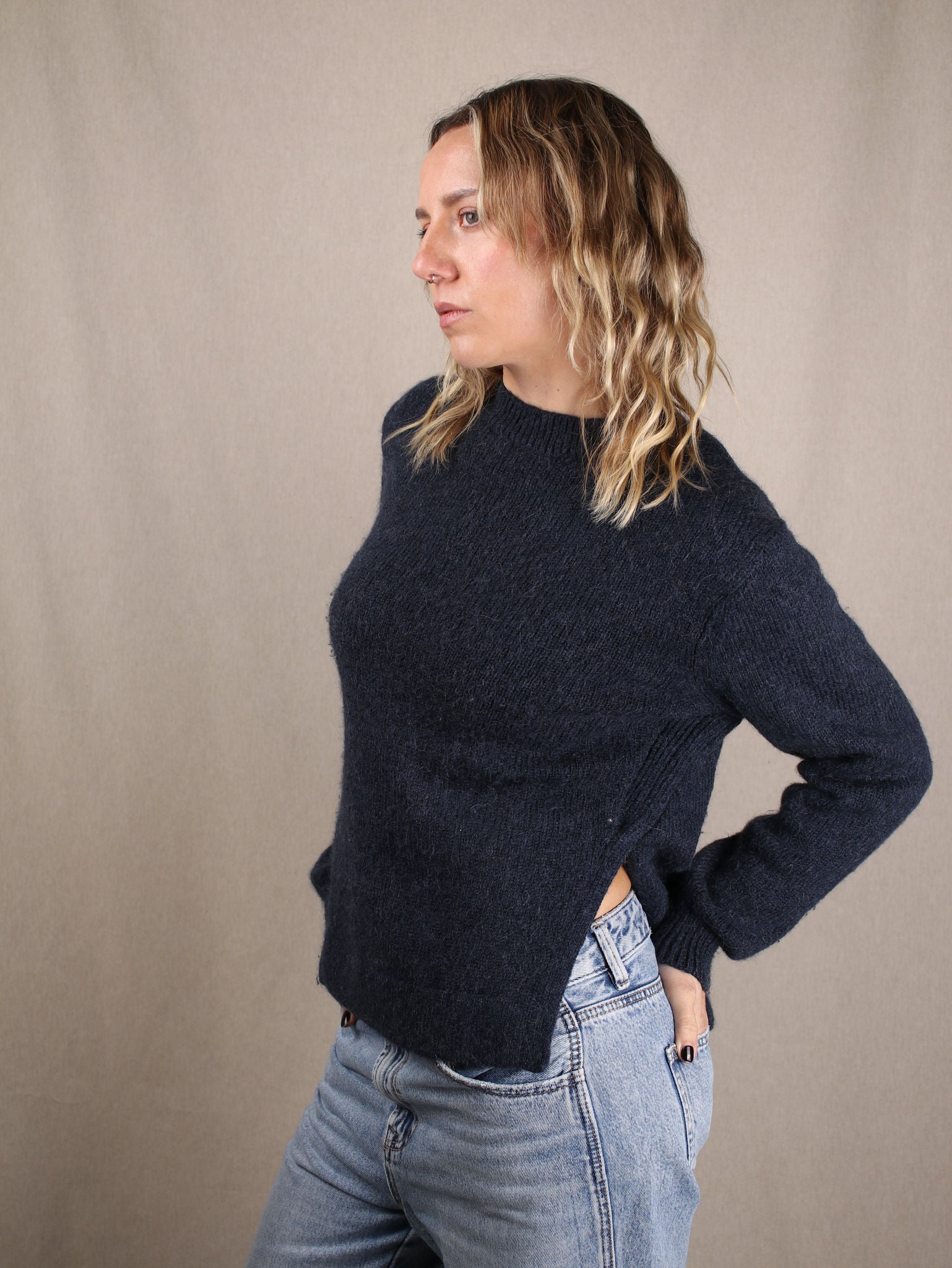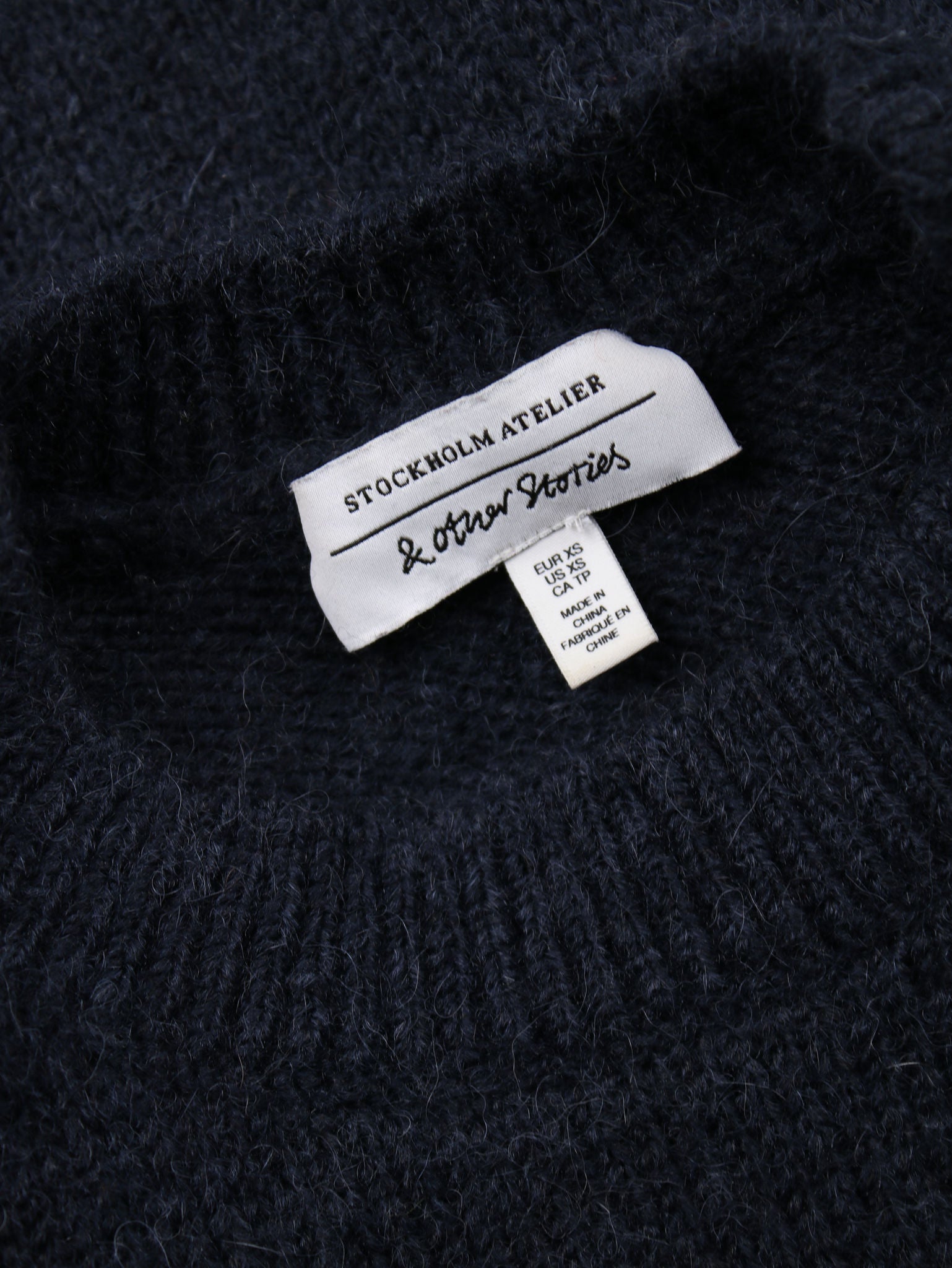 Dieser Secondhand Pullover von & Other Stories aus Woll-Mischung mit Alpaka wirkt auf dem Bild bewusst zurückhaltend, aber extrem hochwertig. Der cleane Schnitt, die dunkle Farbe und die weiche Struktur geben dir diesen effortless Scandinavian-Cool-Girl-Vibe. Ein Teil für alle, die wissen, dass echtes Style-Statement keine Aufmerksamkeit braucht.