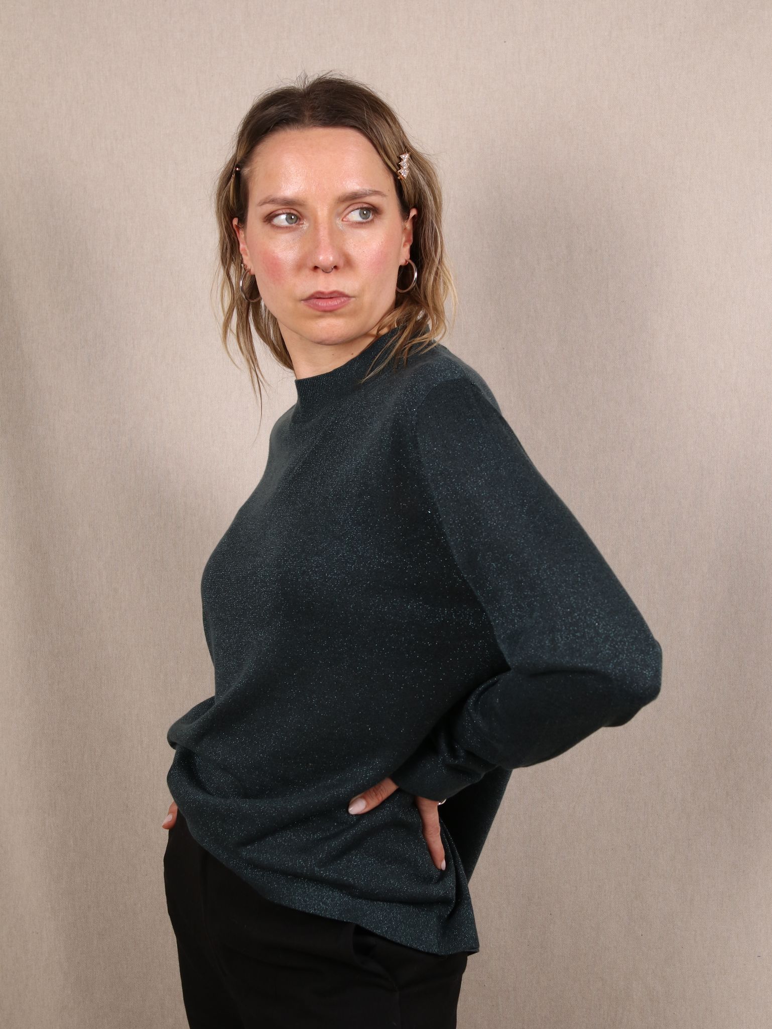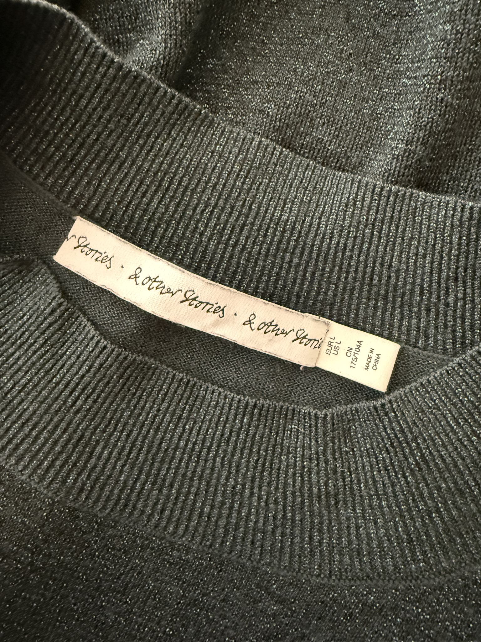 Dieser Secondhand Pullover von & Other Stories liefert dir den perfekten Mix aus cosy und classy. Das dezente Glitzern im petrolfarbenen Strick bringt subtilen Xmas Glow, während die normale Passform angenehm lässig bleibt. Für alle, die funkelnd auftreten wollen, ohne gleich wie ein Weihnachtsbaum zu leuchten.