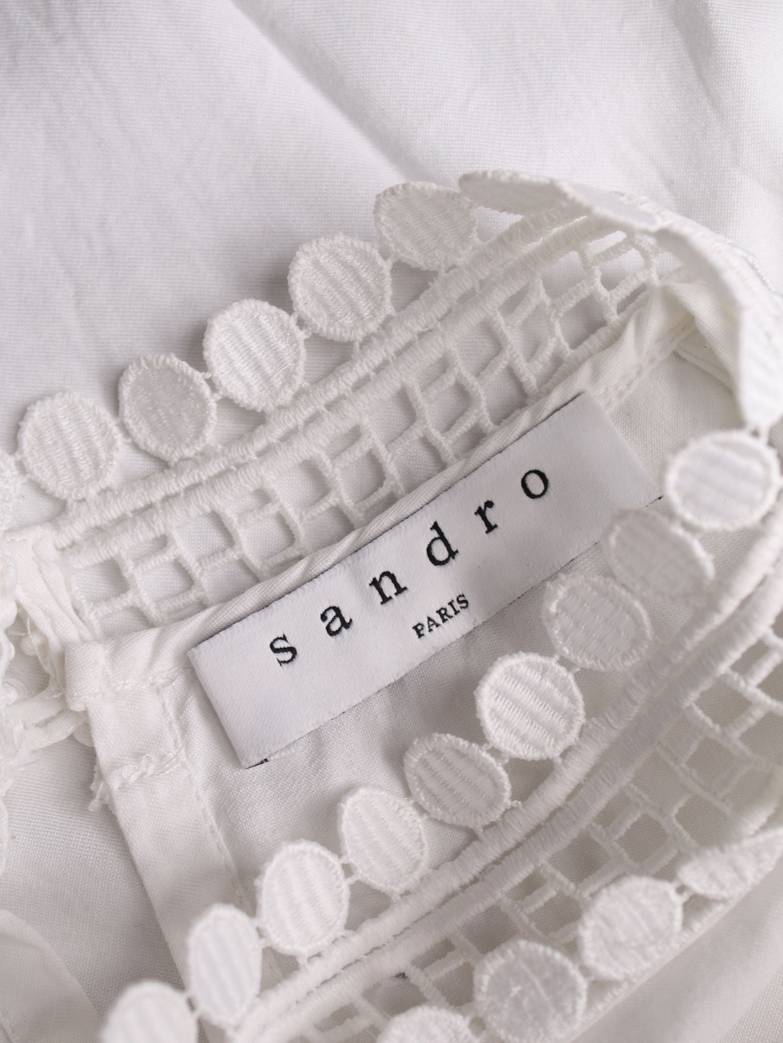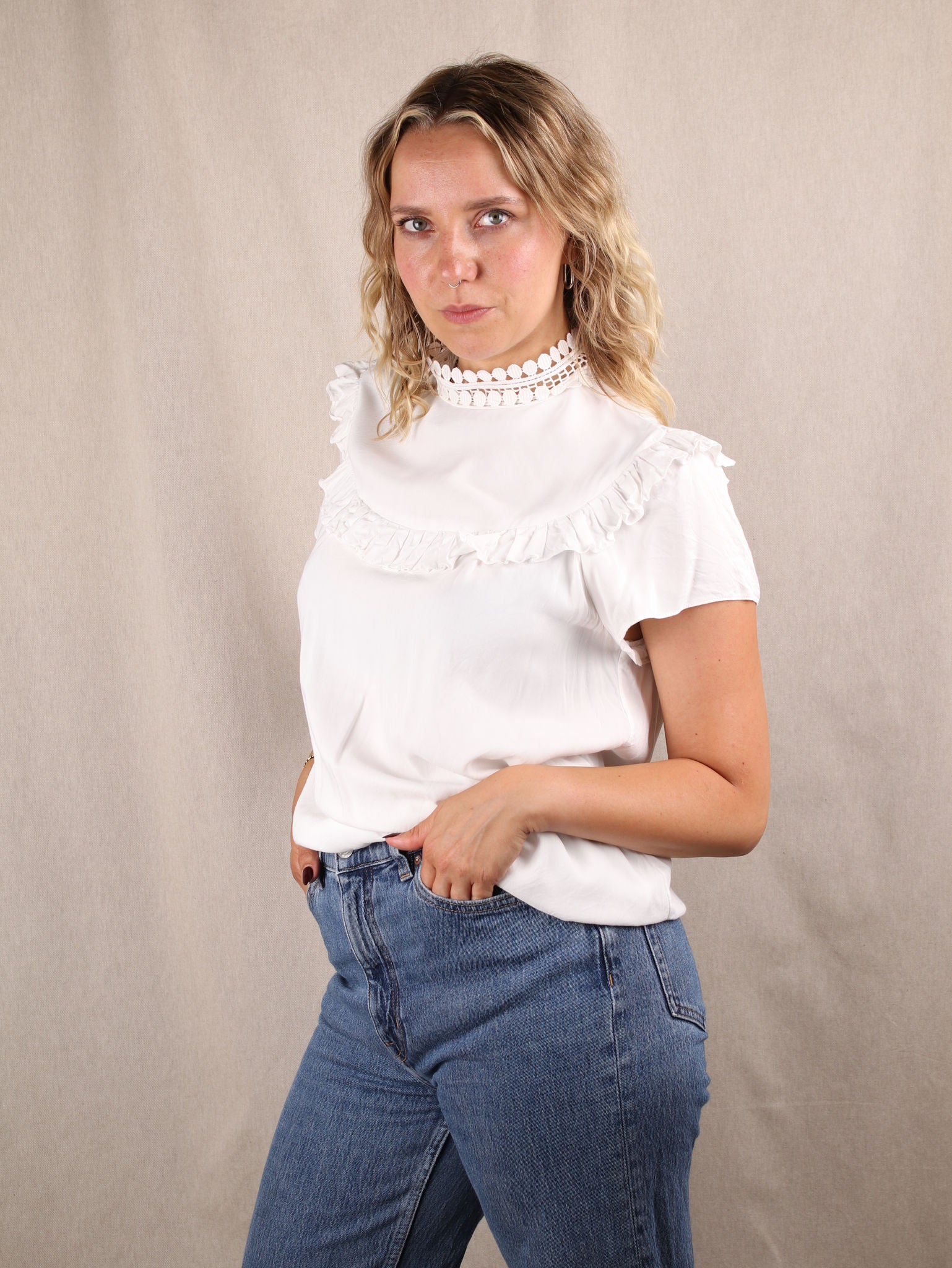 Kurzarm-Bluse mit Rüschen und Kragen aus Häkelspitze