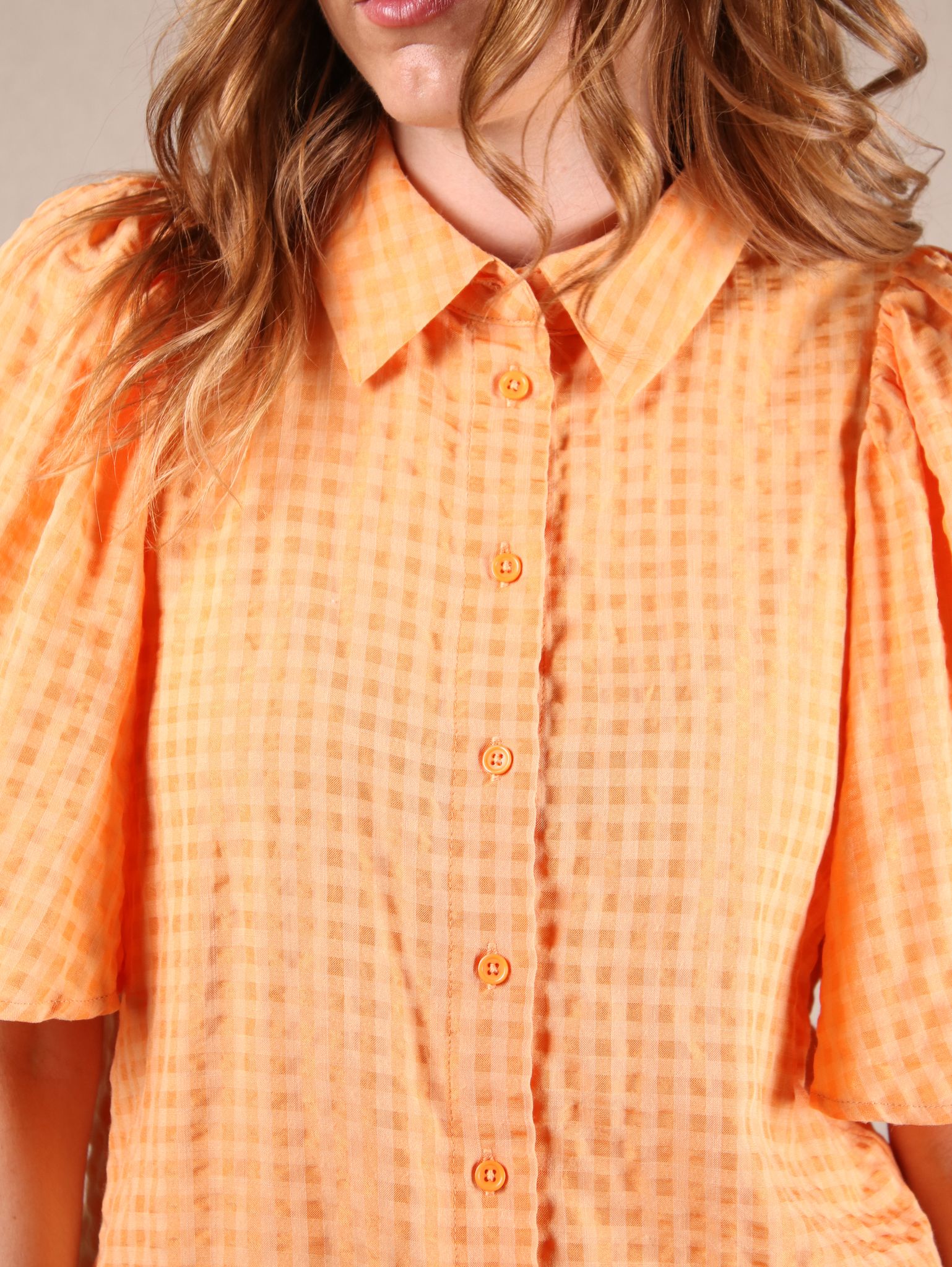 Oversize Bluse mit Vichy-Karo und weiten Ärmeln