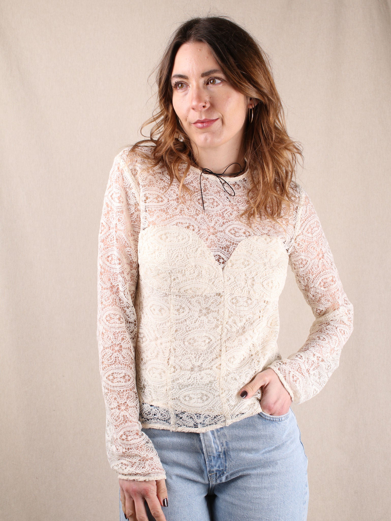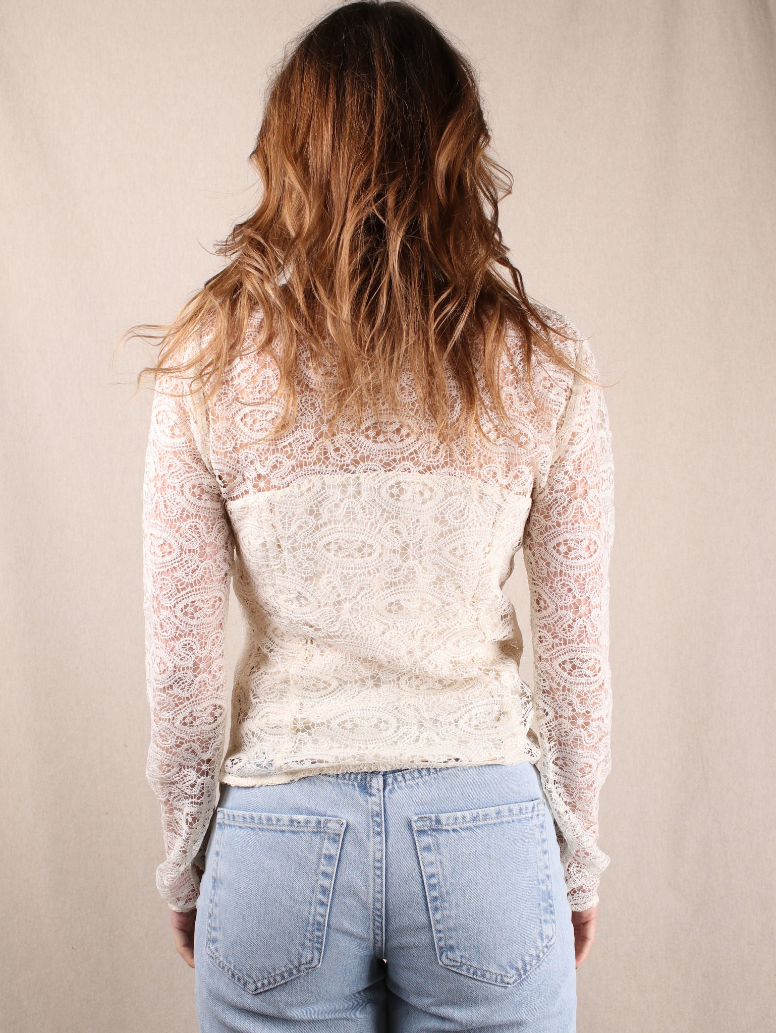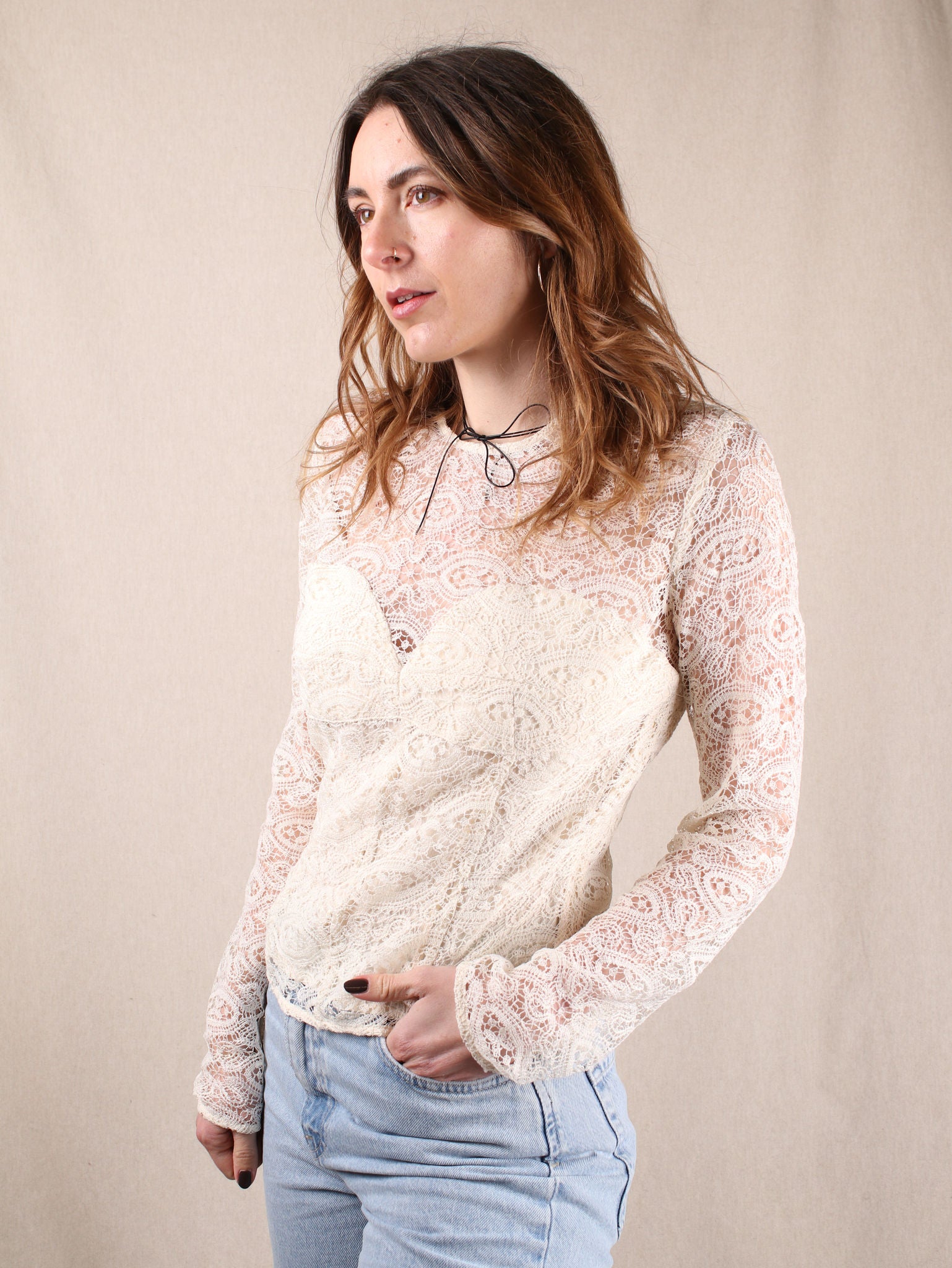 Secondhand Bluse aus Spitze von By Malene Birger mit Knopfdetails am Ärmel.
