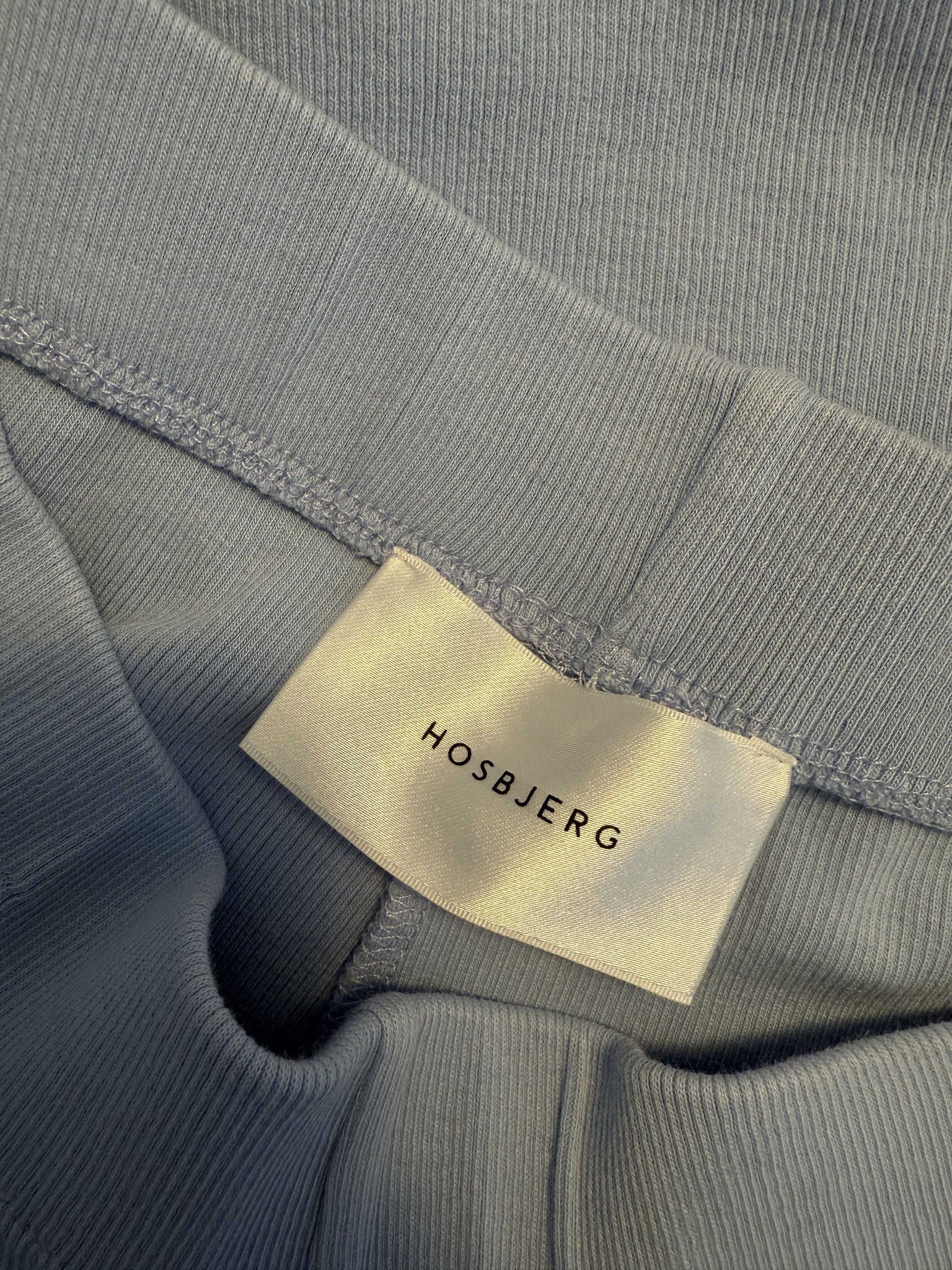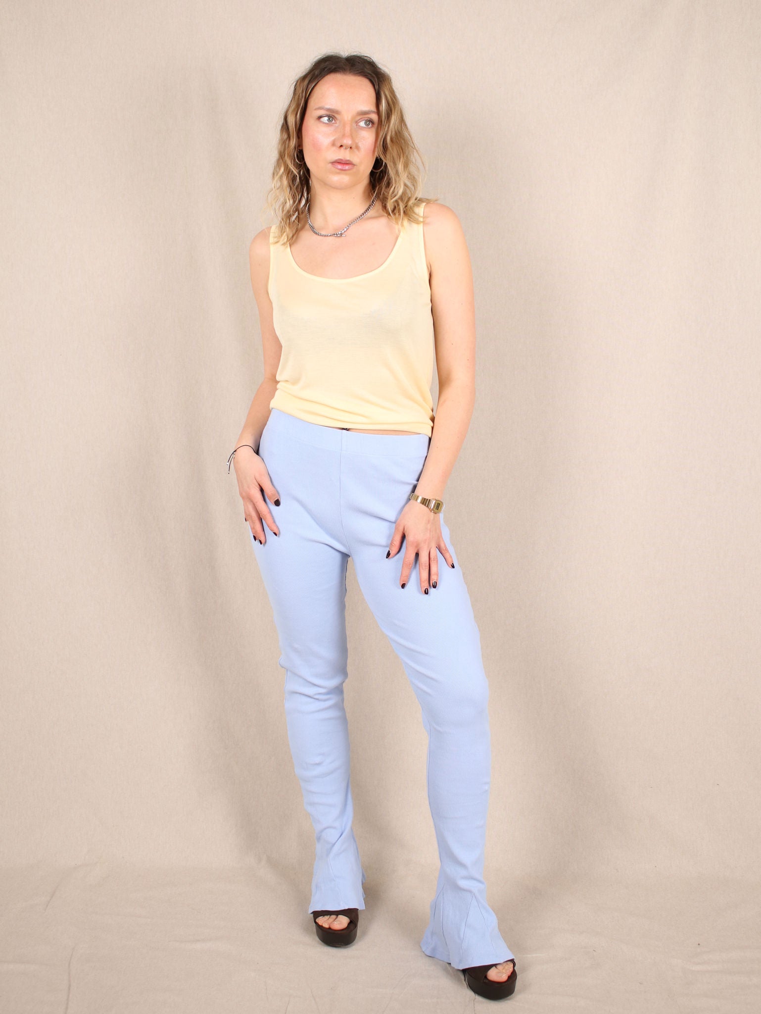 Hellblaue Rippstruktur, ausgestelltes Bein und Stretch-Komfort - diese Flare-Leggings von Hosbjerg verbindet Style und Bequemlichkeit. Die Baumwoll-Elasthan-Mischung sorgt für eine perfekte Passform, während das softe Blau jedem Outfit einen frischen Touch verleiht. Ob mit Oversized-Blazer oder Croptop, dieses Secondhand-Piece bringt 70s-Vibes in deine Garderobe.