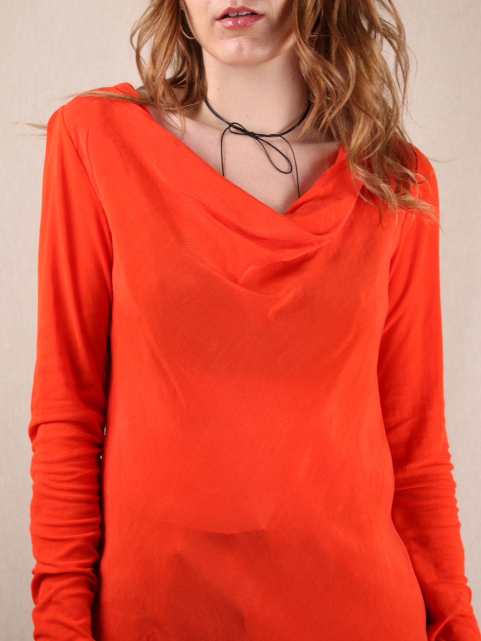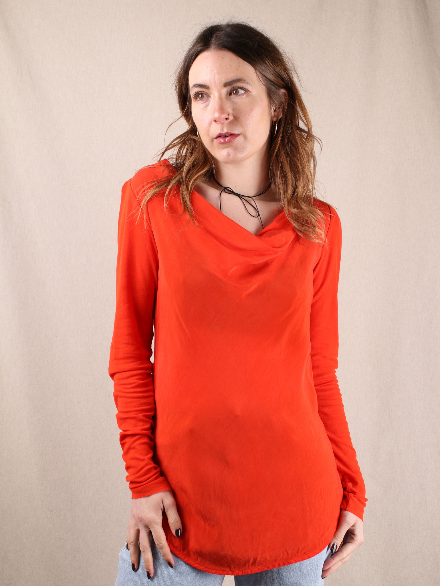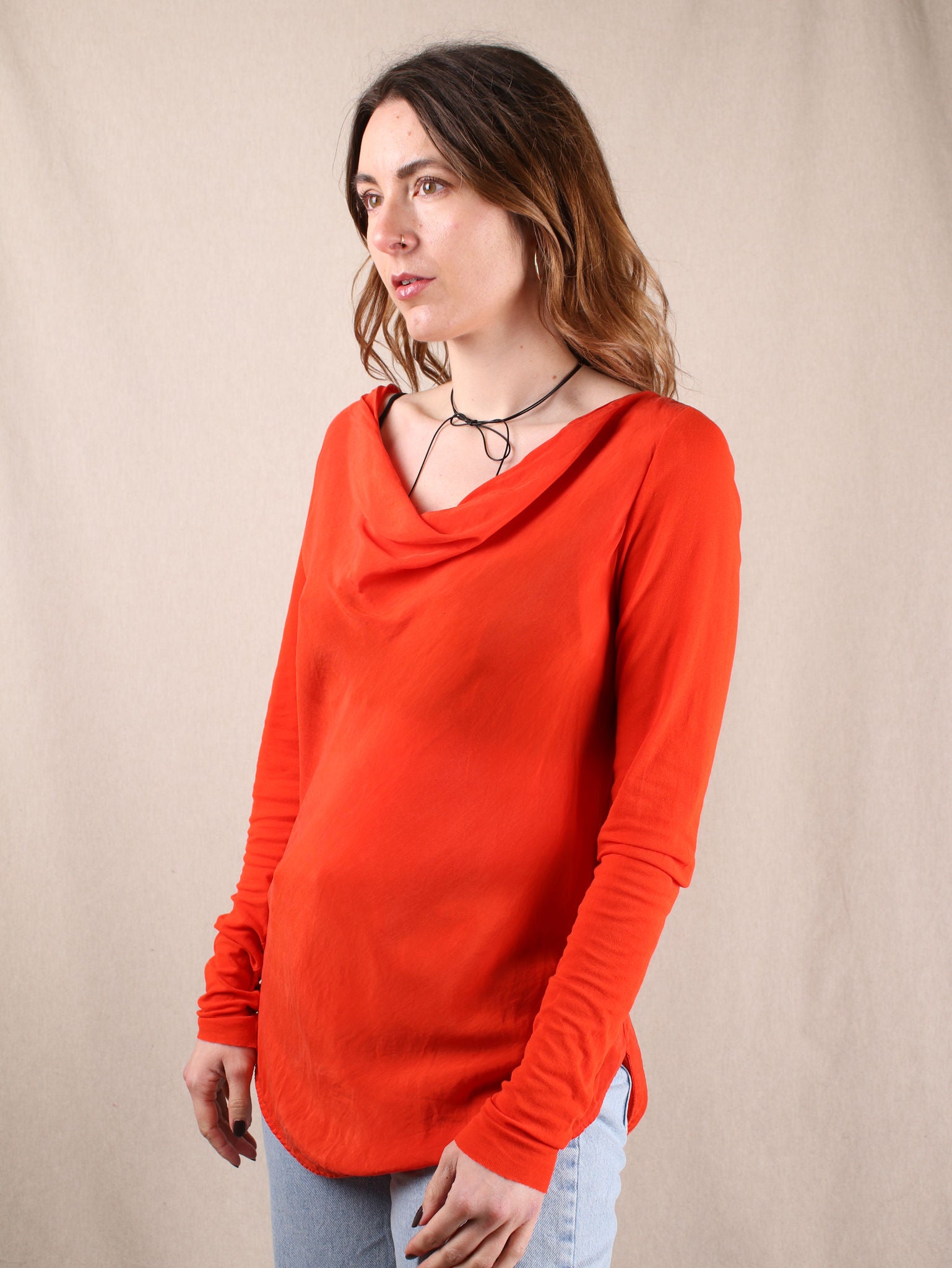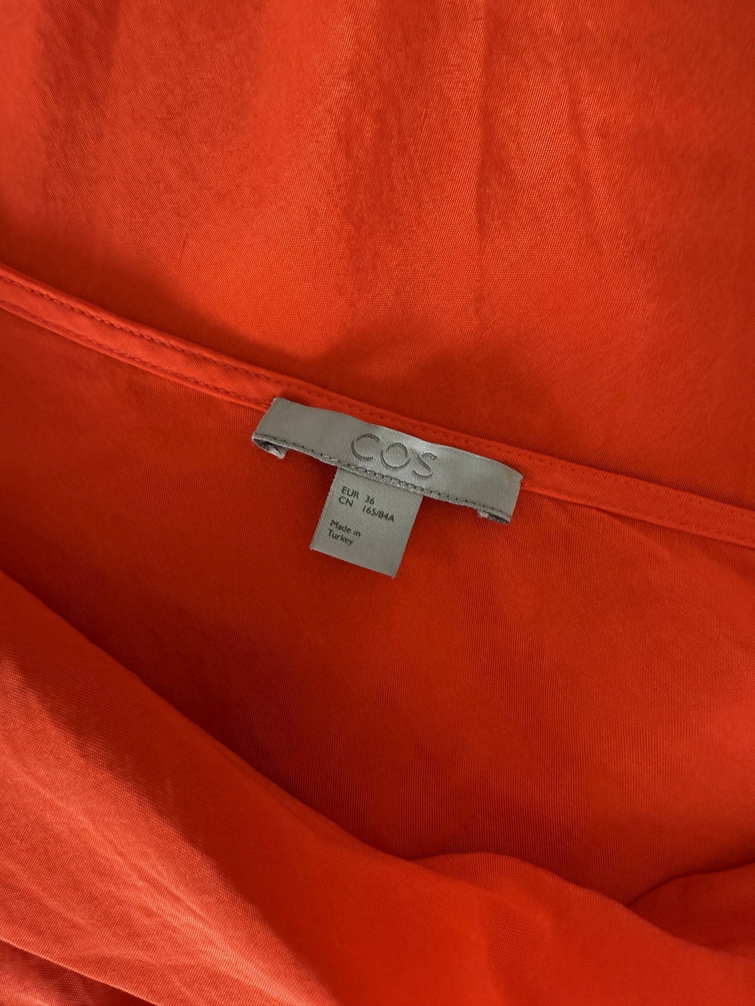 Secondhand Longsleeve von COS im Material-Mix mit Ärmeln aus Jersey und Wasserfall-Ausschnitt.