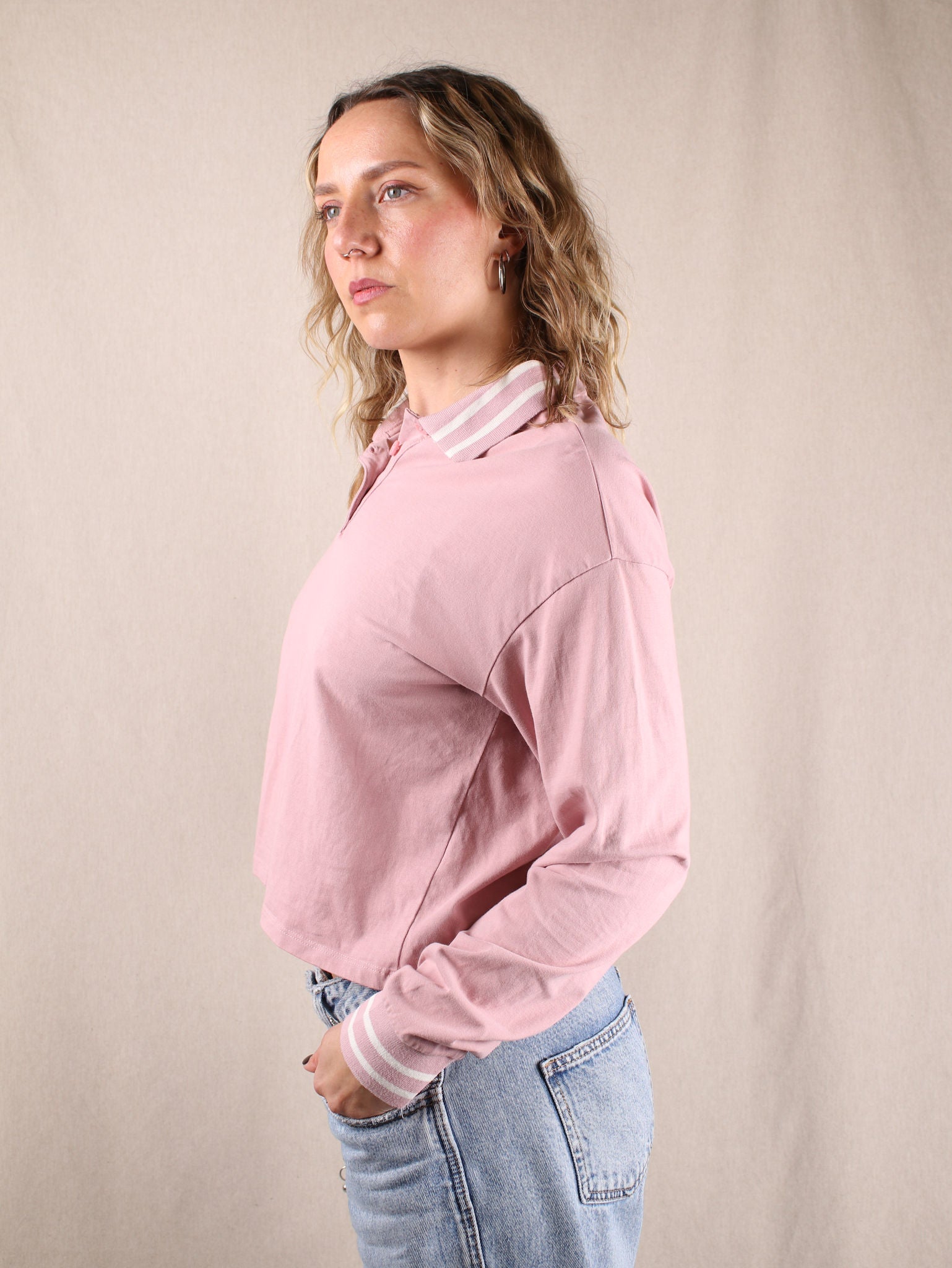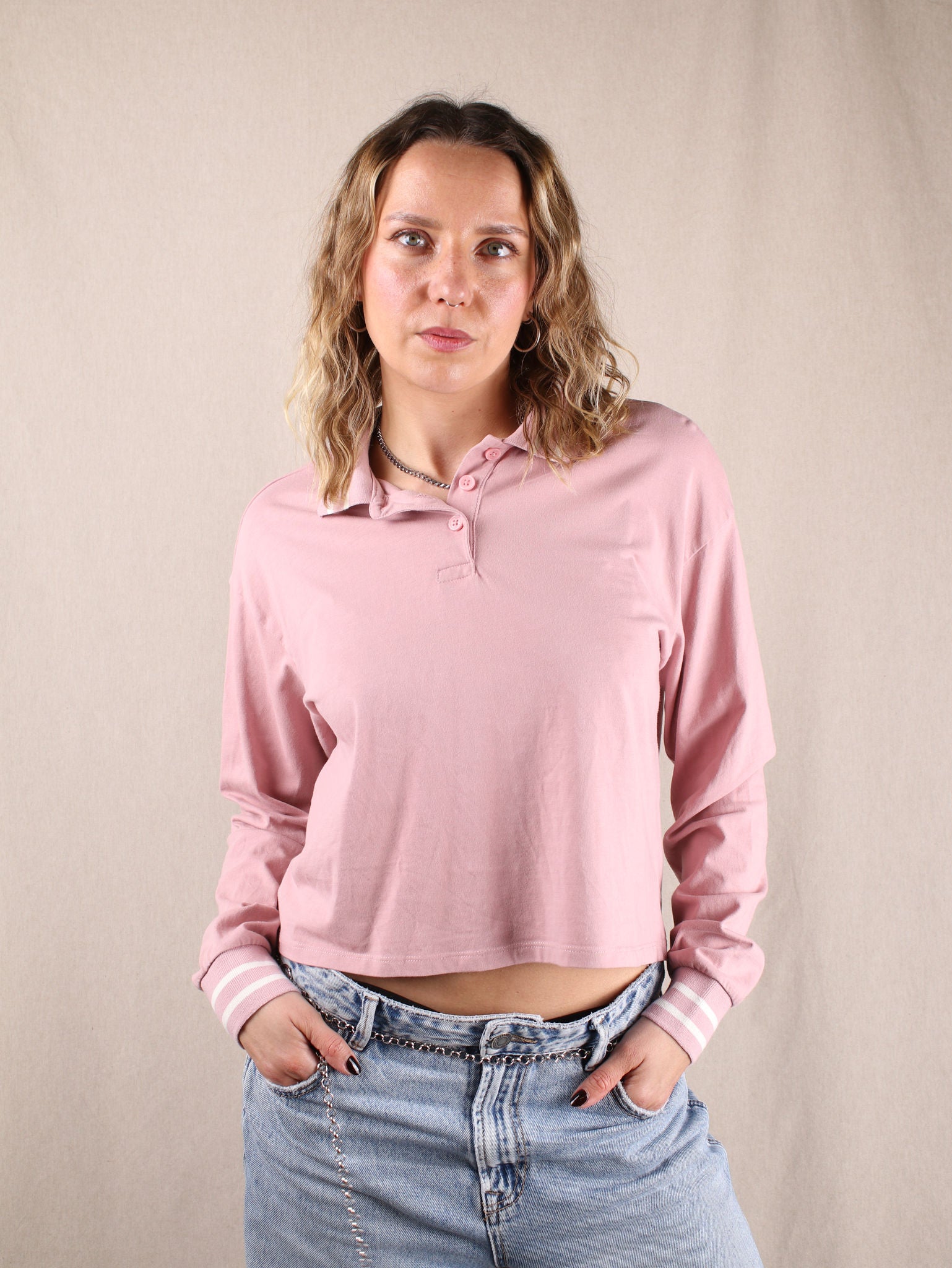 Secondhand Polo-Longsleeve von Monki mit Streifen am Kragen.