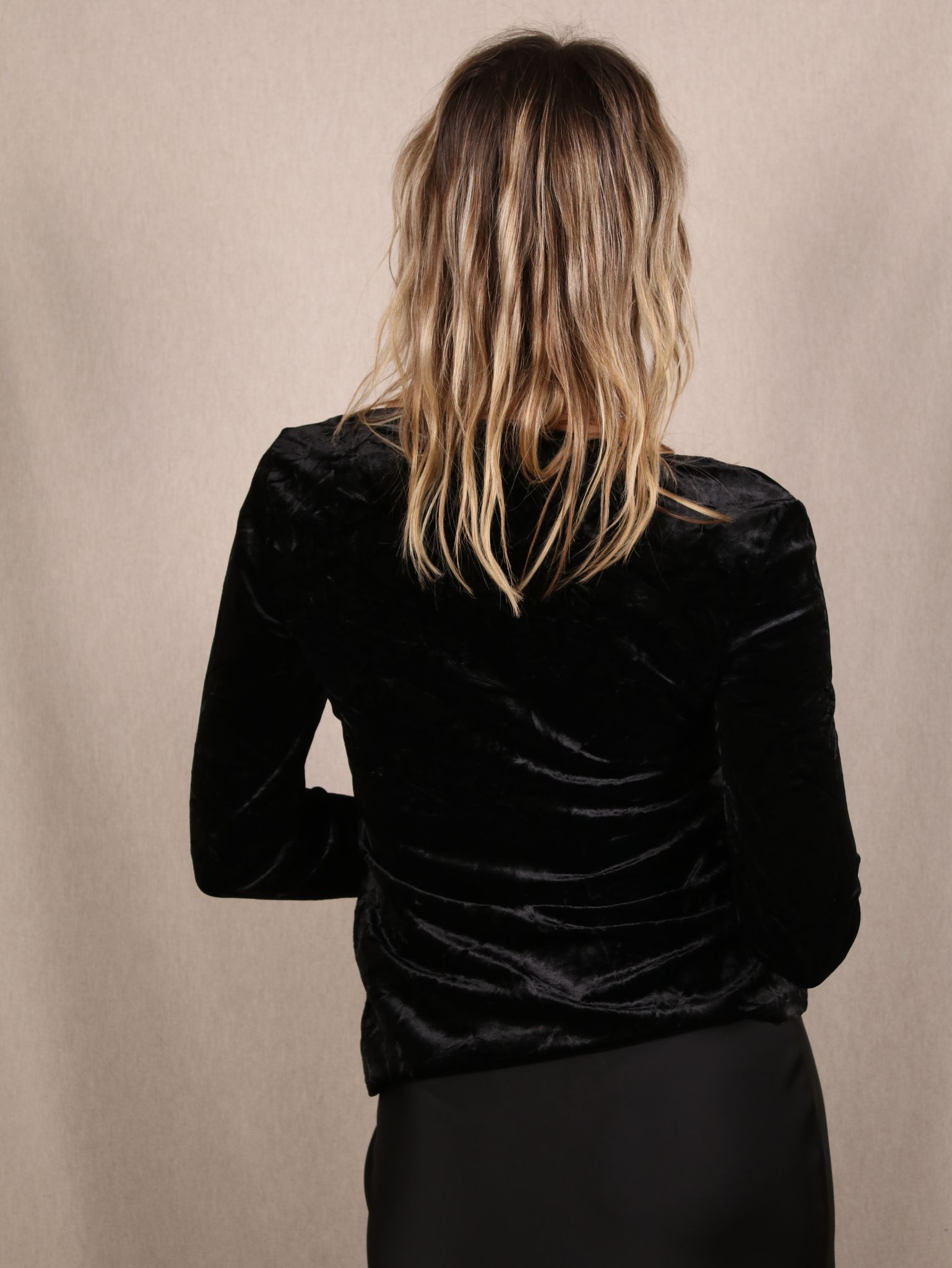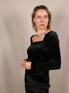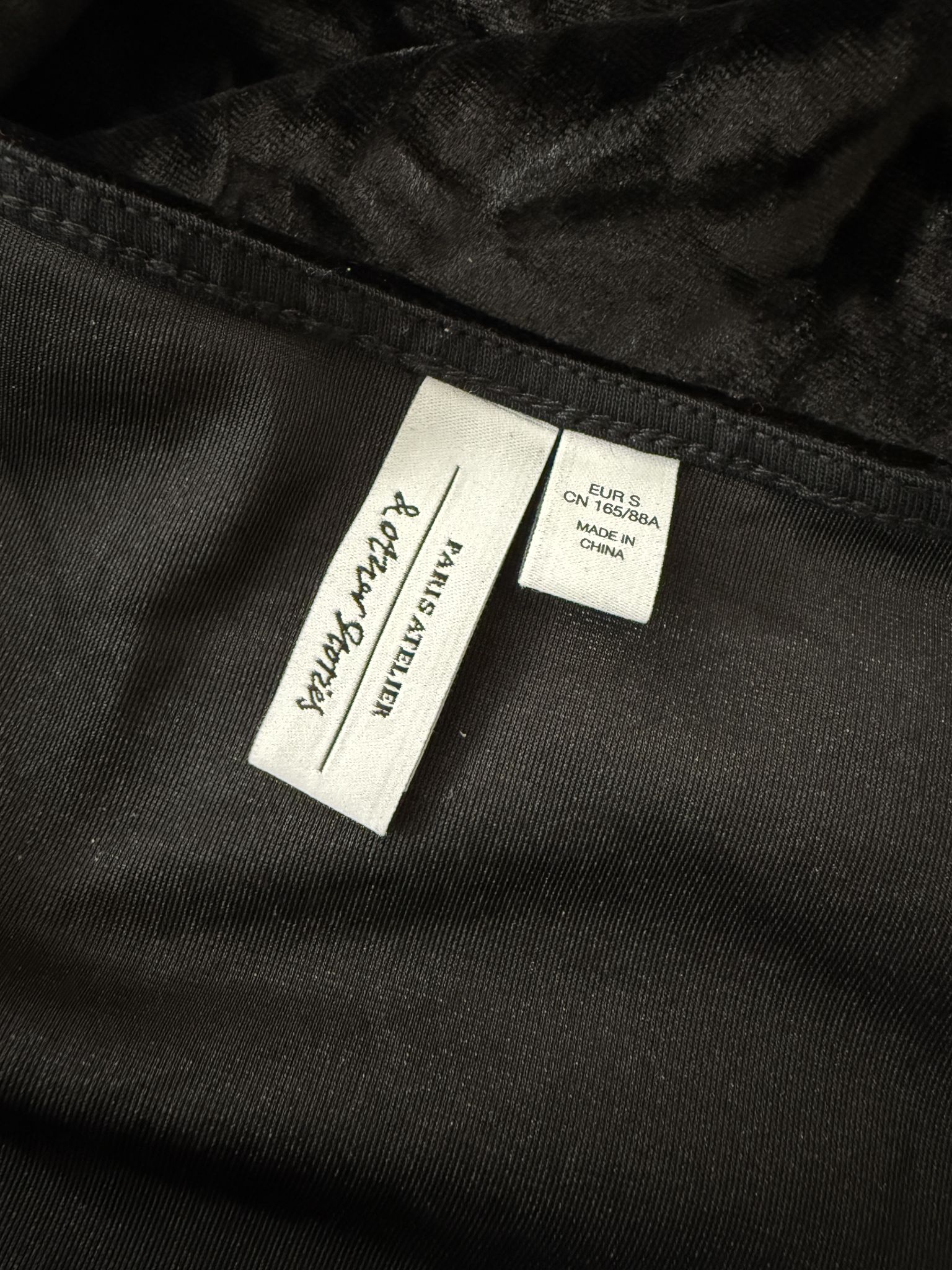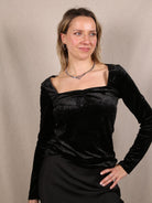 Dieses Secondhand Longsleeve von & Other Stories bringt eleganten Xmas Glow in seiner smoothesten Form. Der schwarze Samt wirkt edel und soft, während der kantige Ausschnitt und die eng anliegende Passform deinen Look modern und feminin machen. Perfekt für Abende, an denen du minimalistisch auftreten willst – aber trotzdem unforgettable.