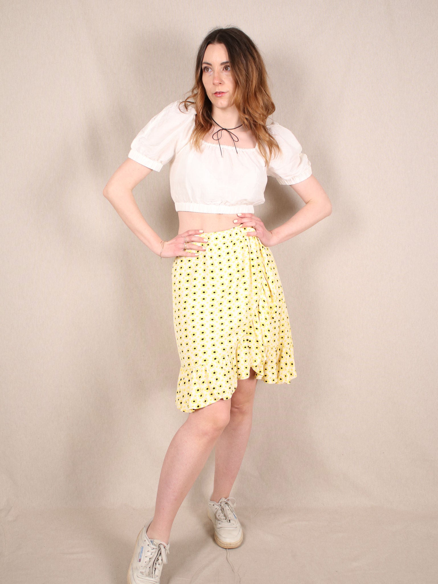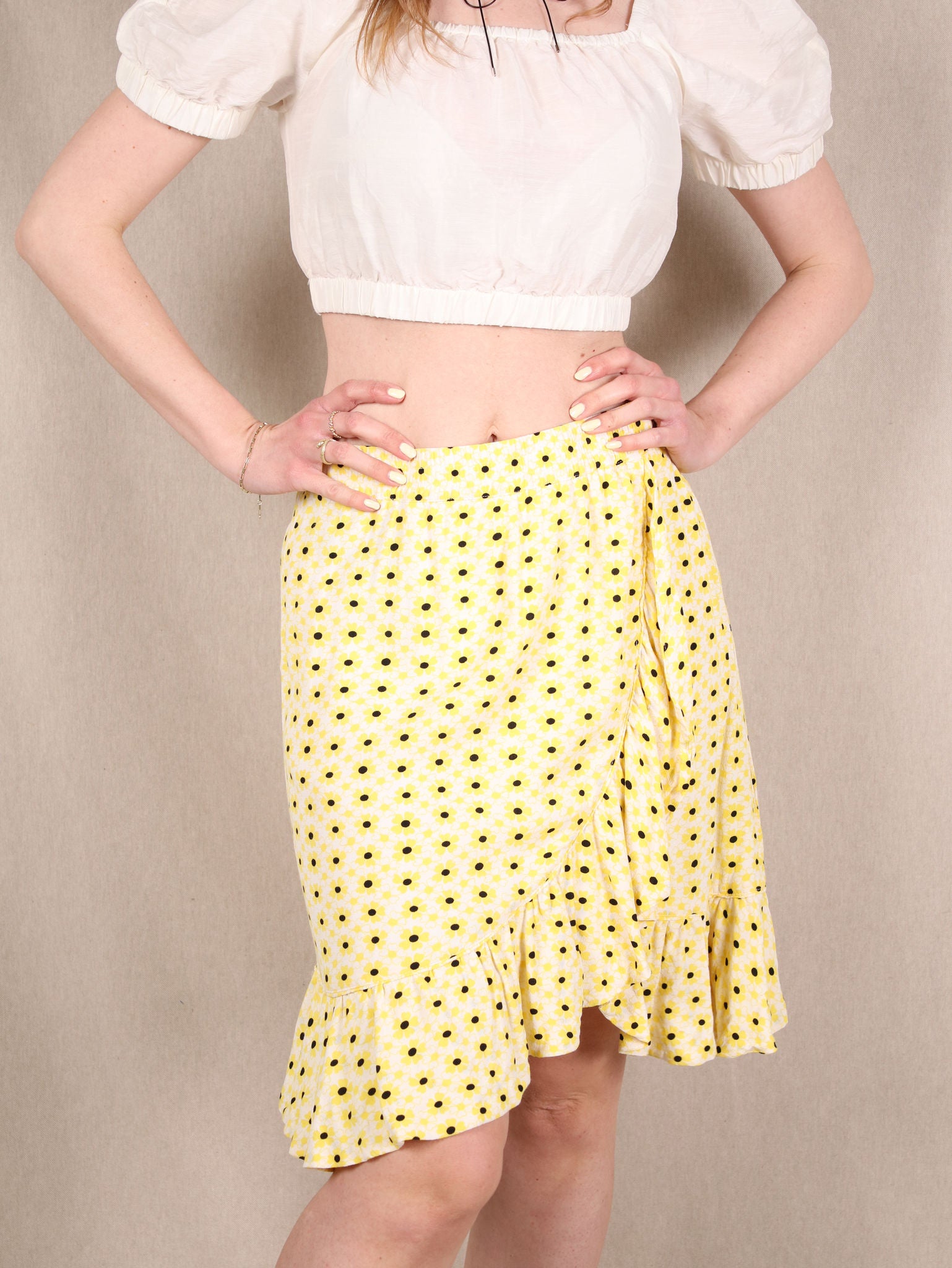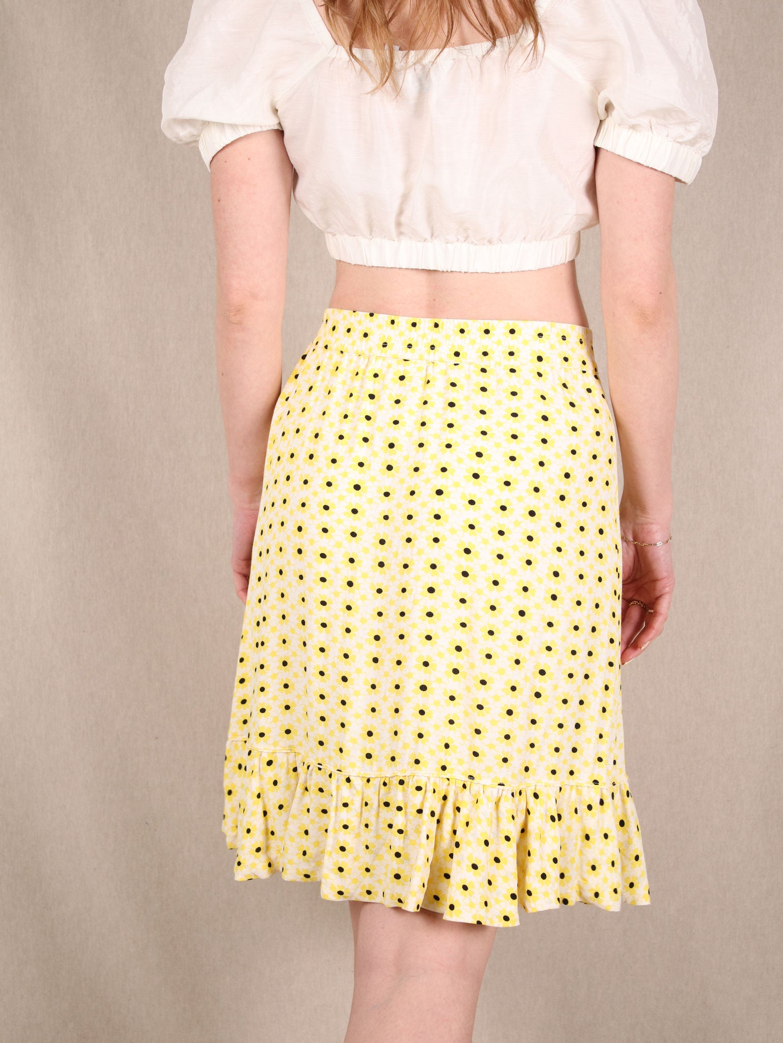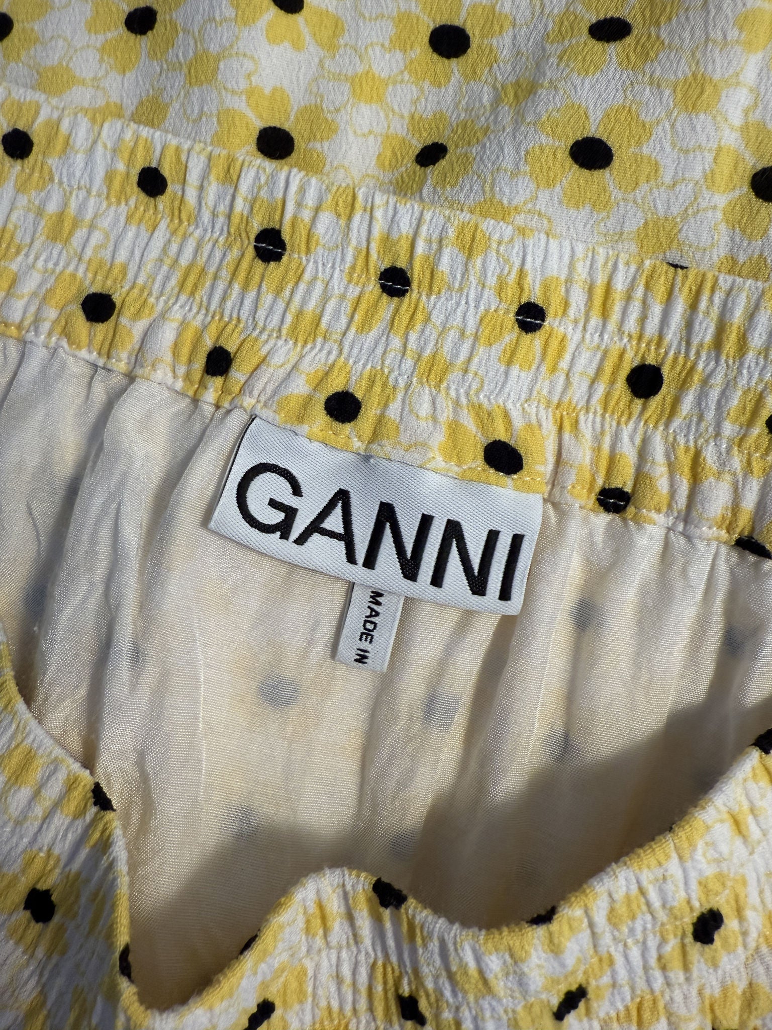 Dieser Secondhand Ganni Rock aus luftigem Crêpe bringt sommerliche Leichtigkeit in deinen Look. Das verspielte Blumenmuster und die Volants machen ihn zum perfekten Hingucker - ideal für feminine Outfits mit Sneakern oder Sandalen!