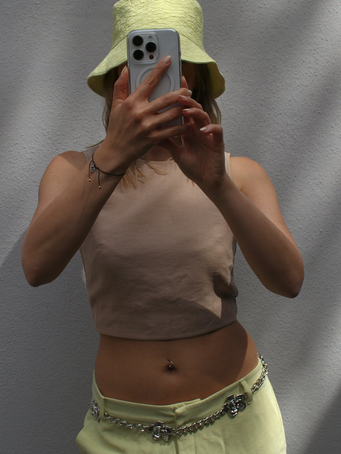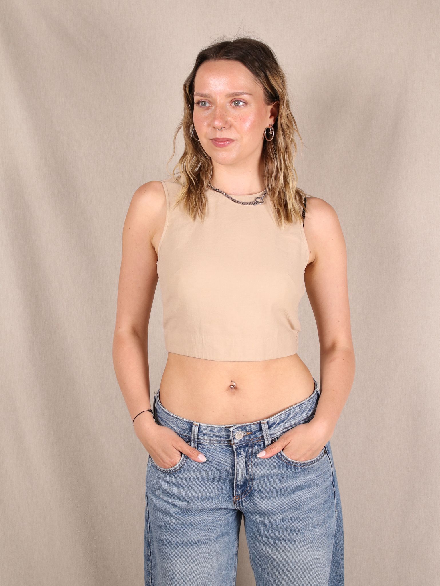 Dieses cropped Top von & Other Stories bringt minimalistischen Chic auf den Punkt. In softem Beige und cleanem Design wird es zur Leinwand für deine coolsten Accessoires. Der strukturierte Webstoff und der taillierte Fit machen es perfekt für Layer-Looks oder solo zu High-Waist-Jeans. Ob Coffee-Date oder Summer-Stroll – dein Essential für Frühling & Sommer.