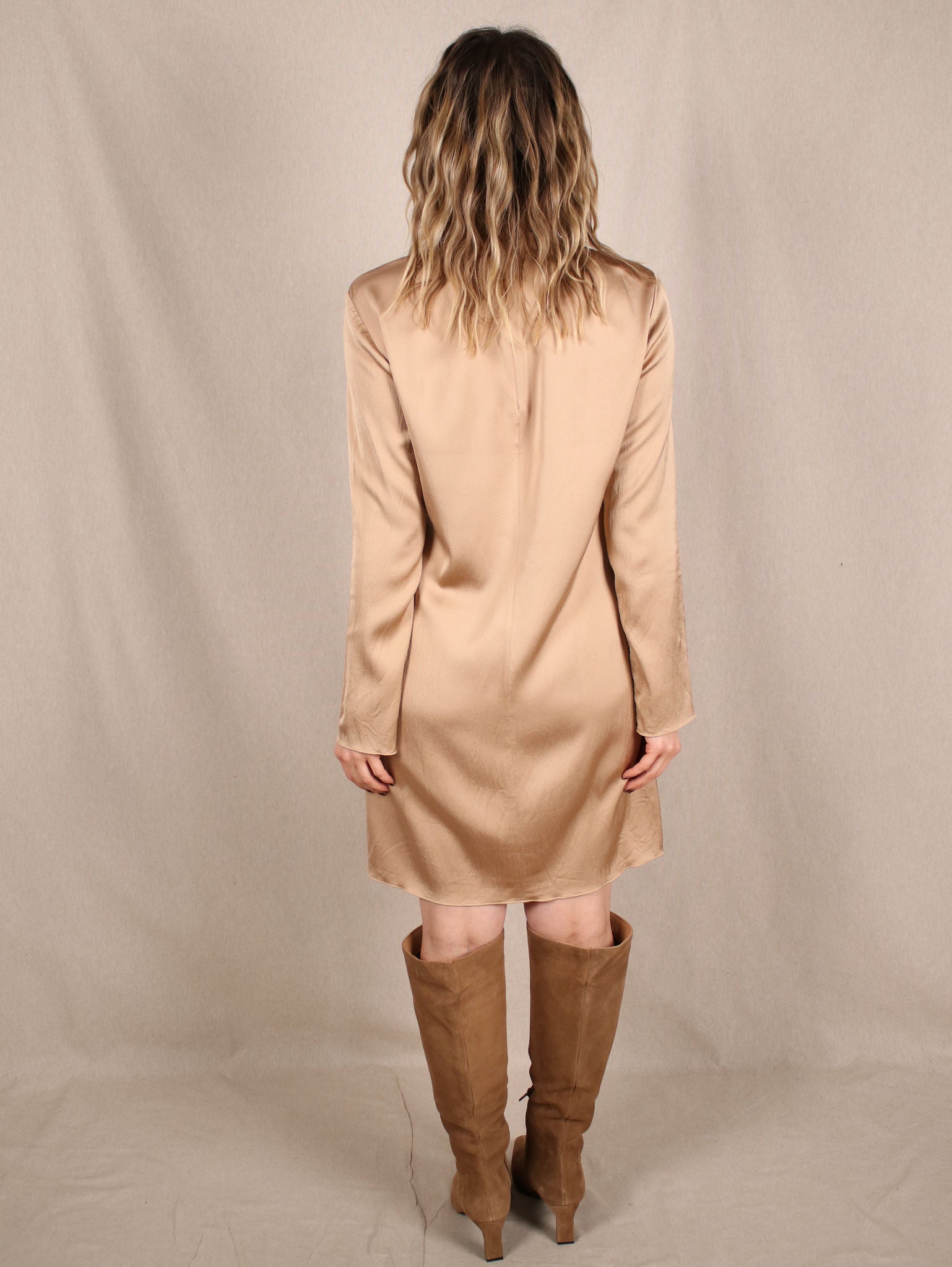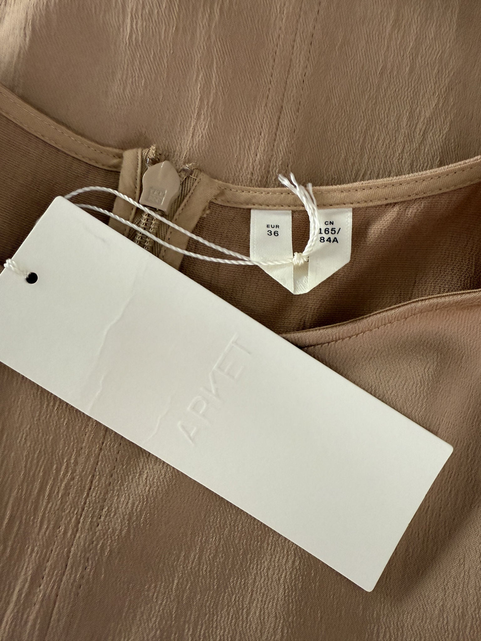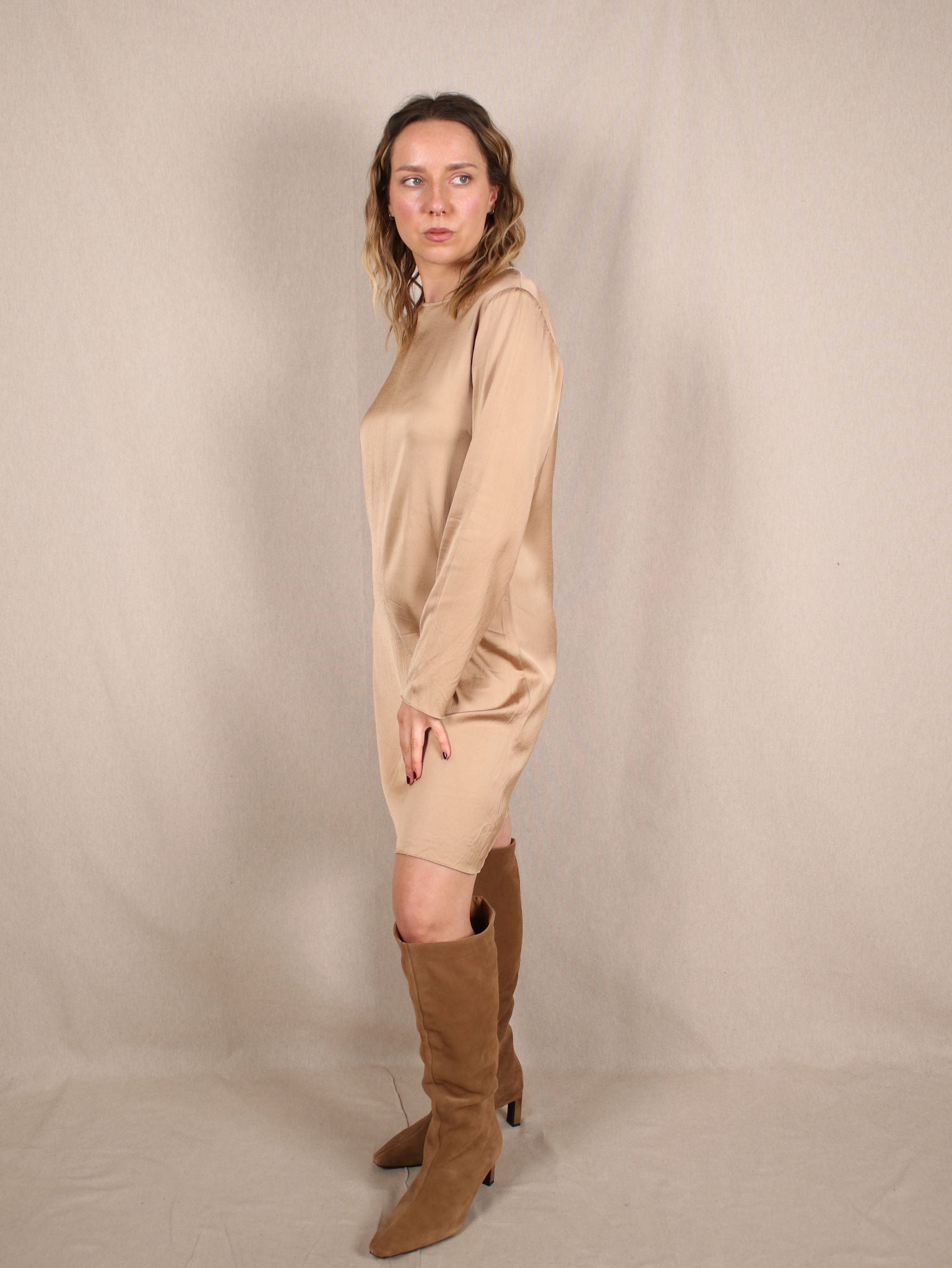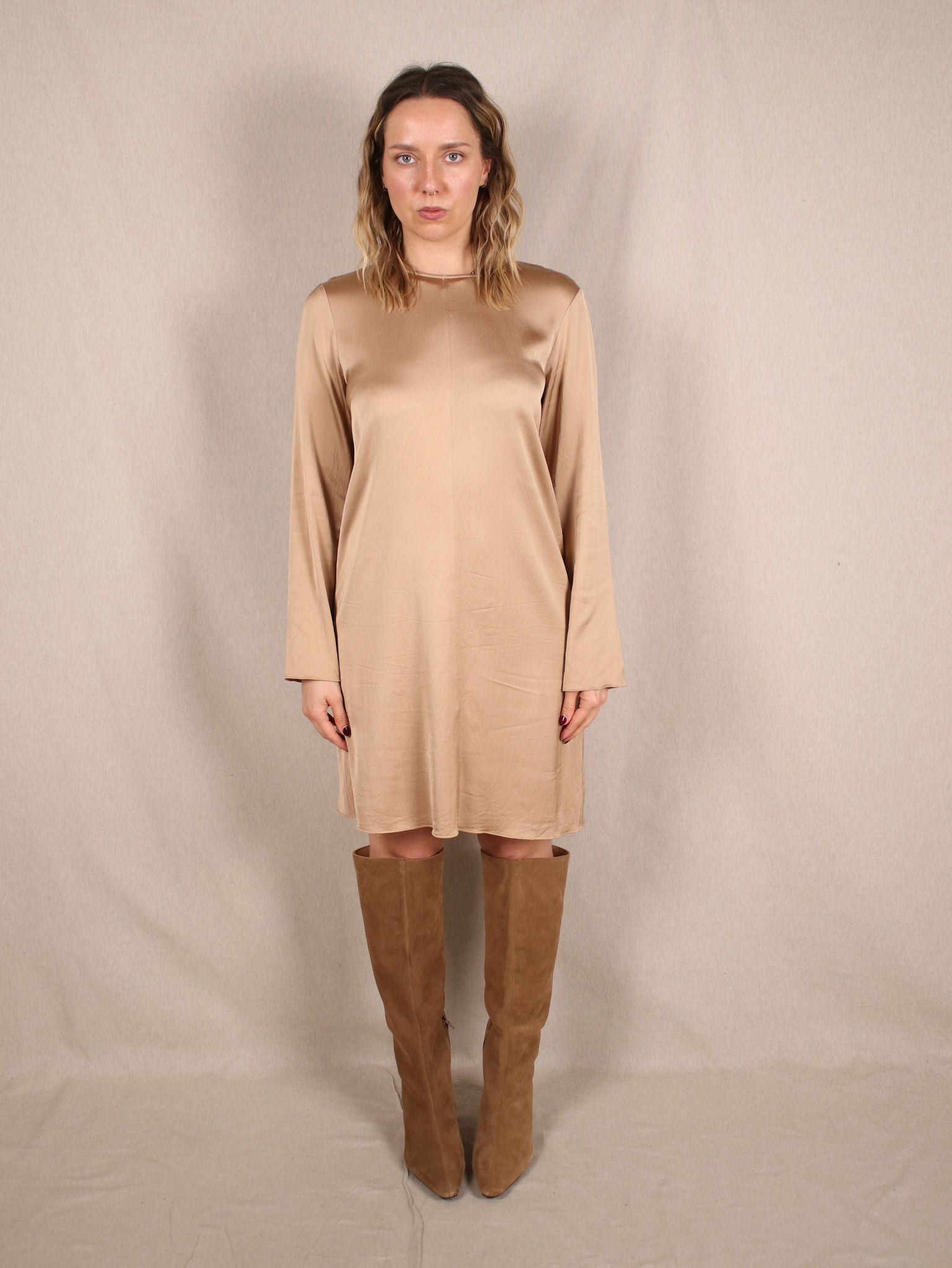 Dieses Secondhand-Satin-Kleid von Arket bringt Minimalismus auf ein neues Level. Der fließende Viskose-Elasthan-Stoff in edlem Mocca Mousse sorgt für einen eleganten Look mit maximalem Komfort. Ob mit Boots oder Heels - dieses Teil ist dein Go-To für mühelose Coolness.