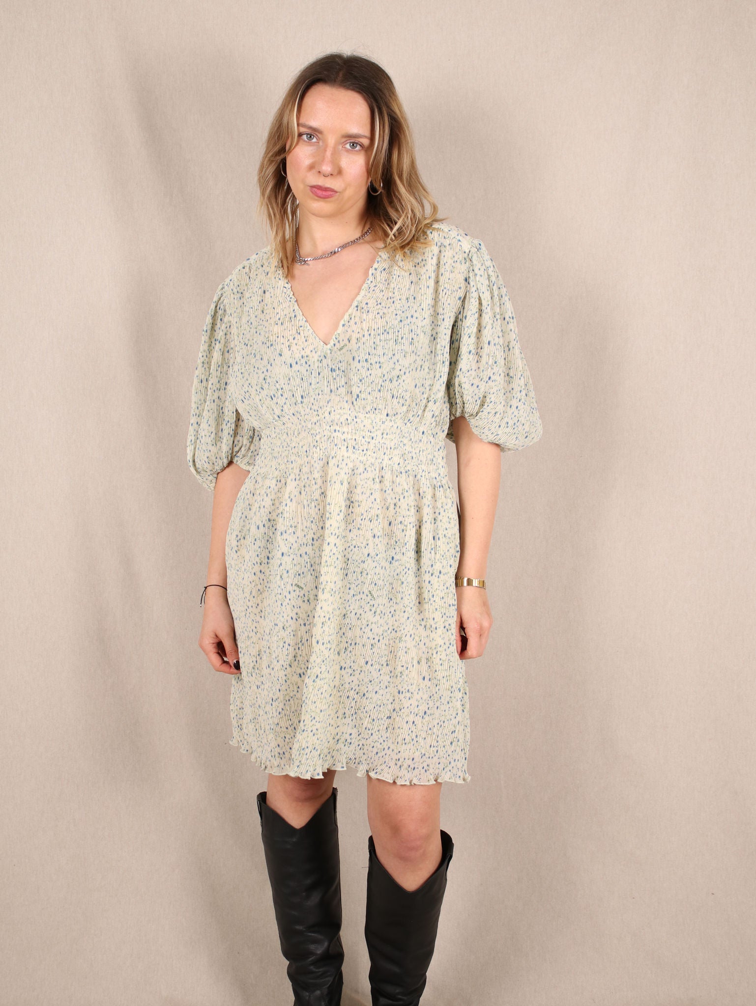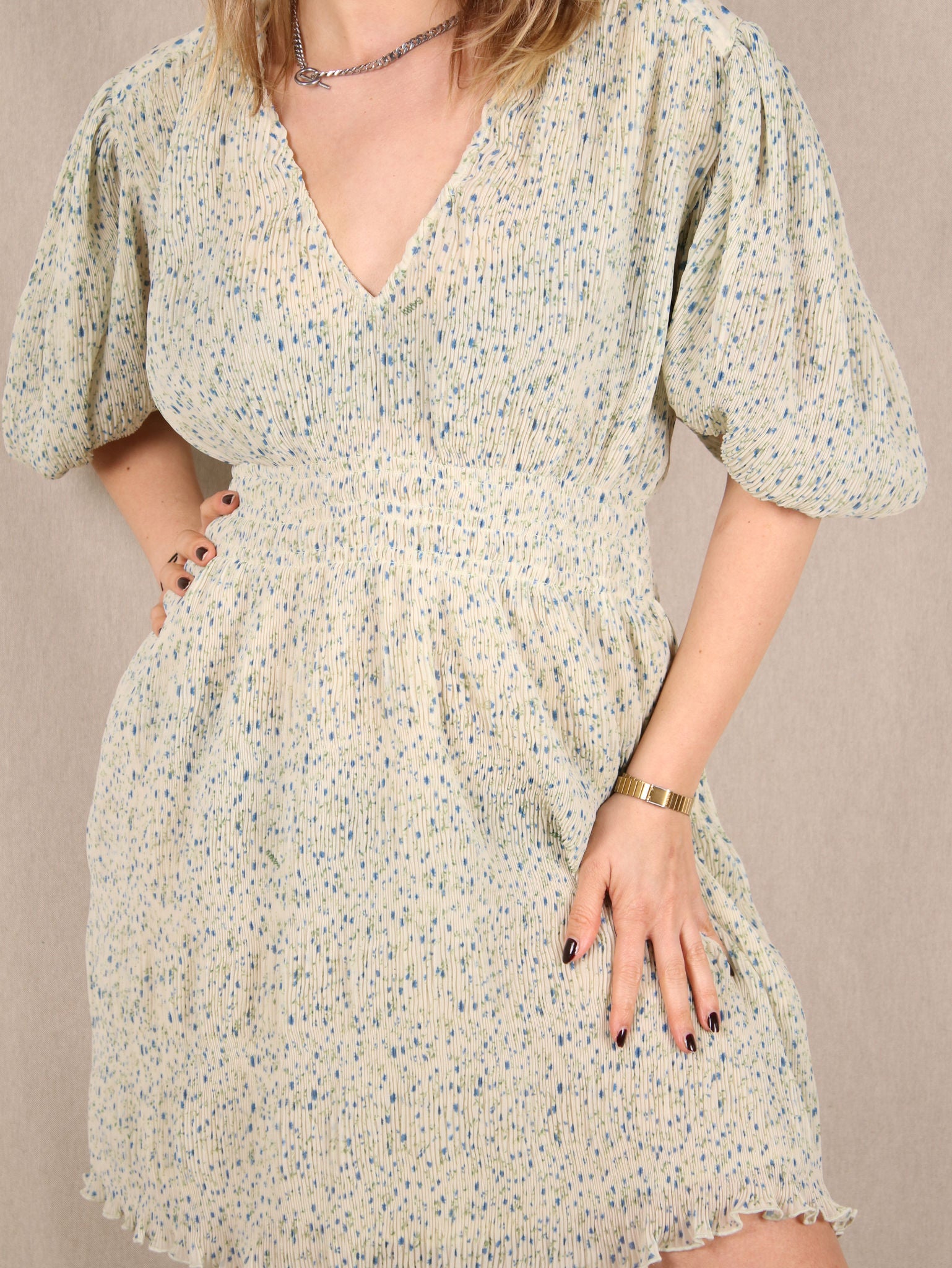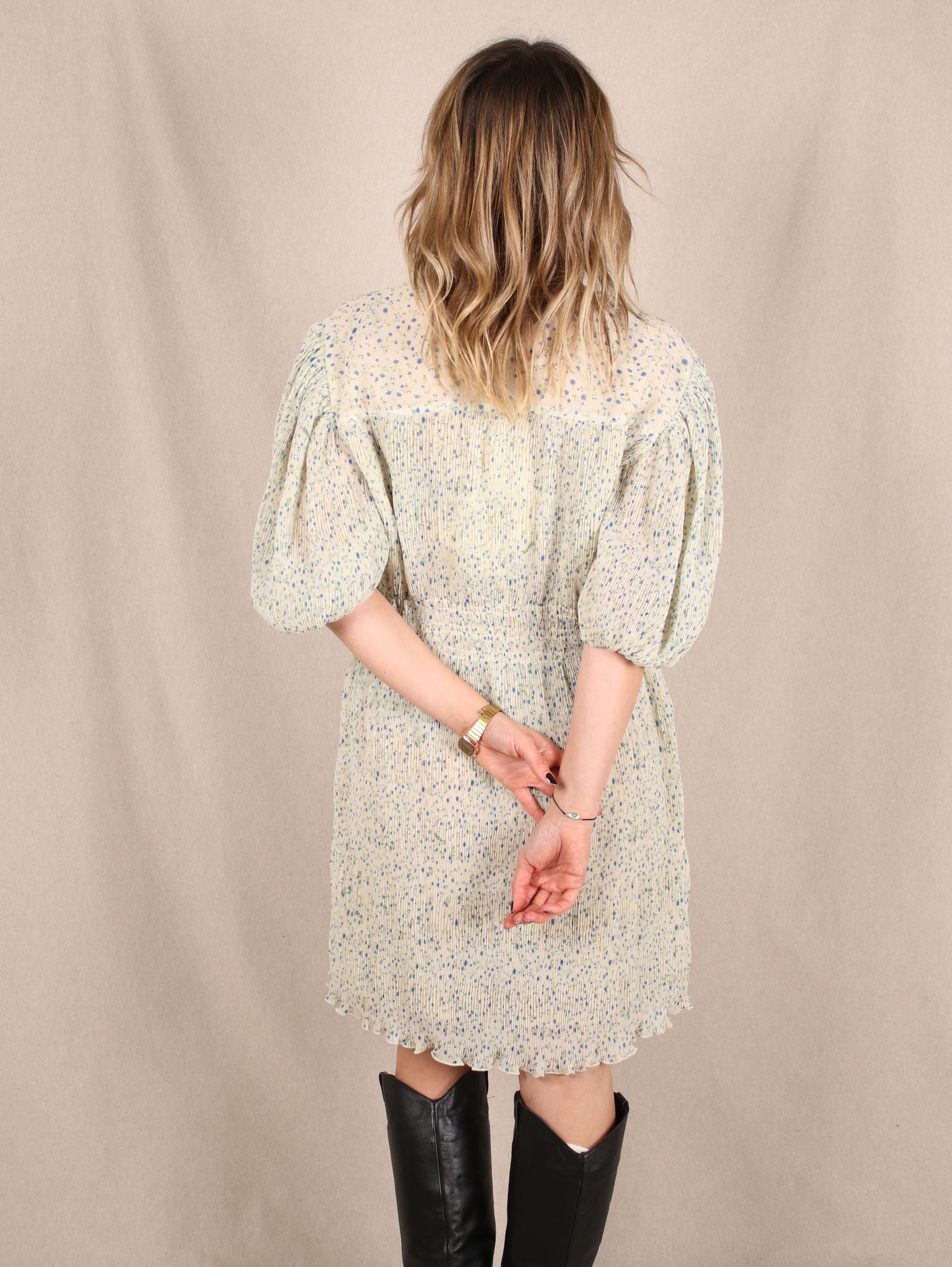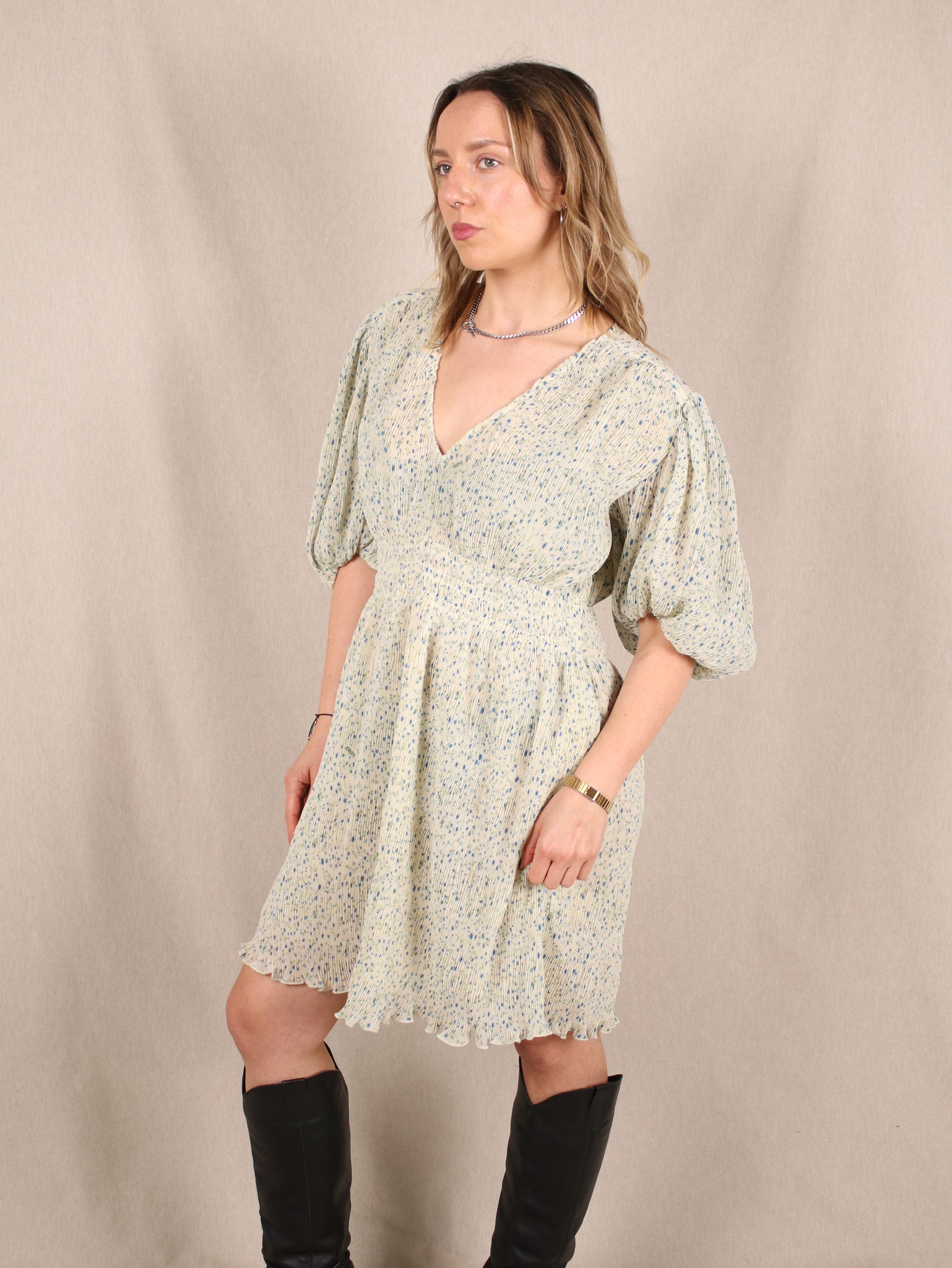 Plissee-Kleid mit Puffärmeln