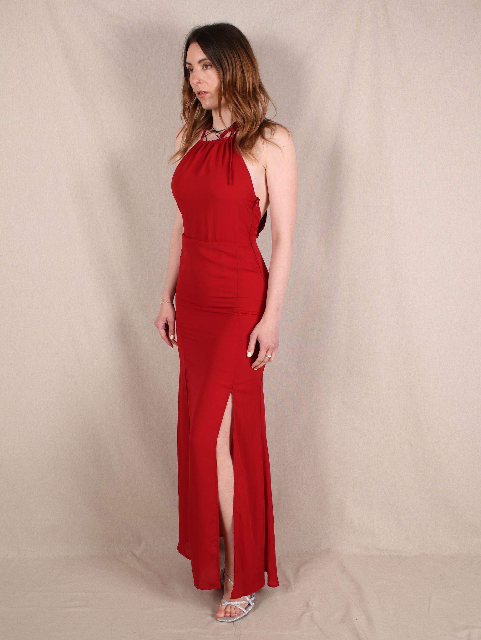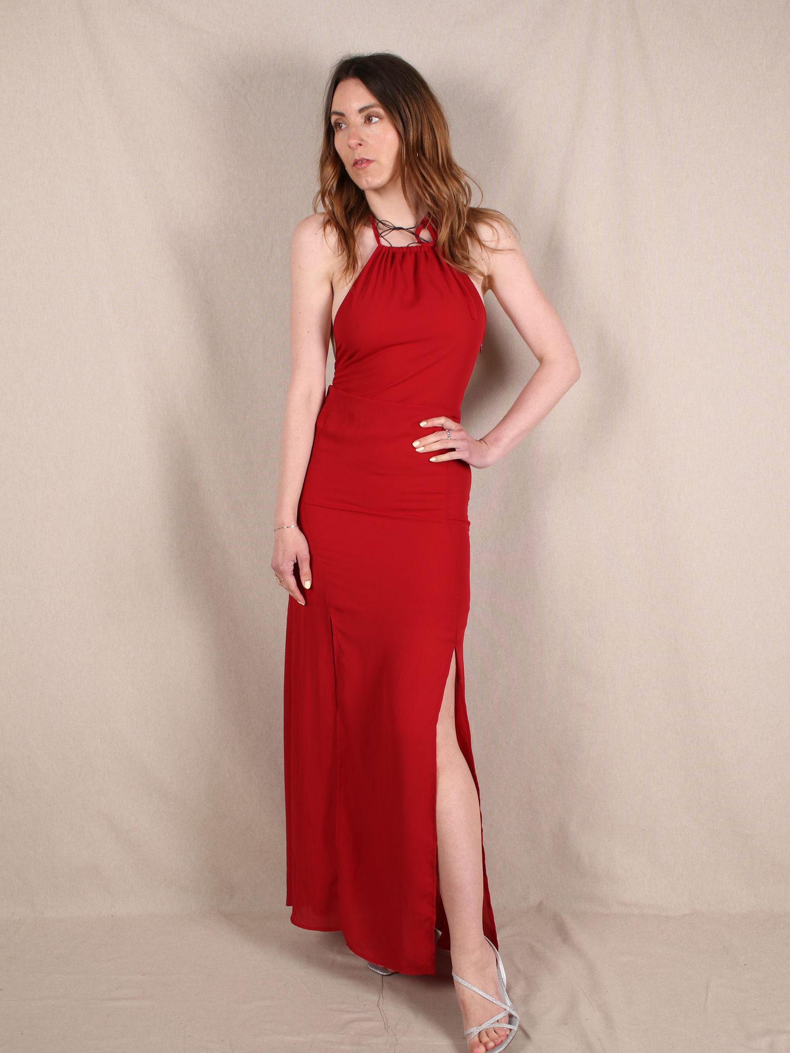 Dieses bordeauxrote Neckholder-Dress von Lioness ist pure Eleganz mit einem Hauch Beach-Drama. Der fließende Crêpe-Stoff, der seitliche Schlitz und der Cut im Rücken machen es zum Go-to für laue Nächte und schicke Sommerdinner. Ob mit silbernen Heels oder barfuß im Sand - du wirst alle Blicke auf dich ziehen.