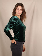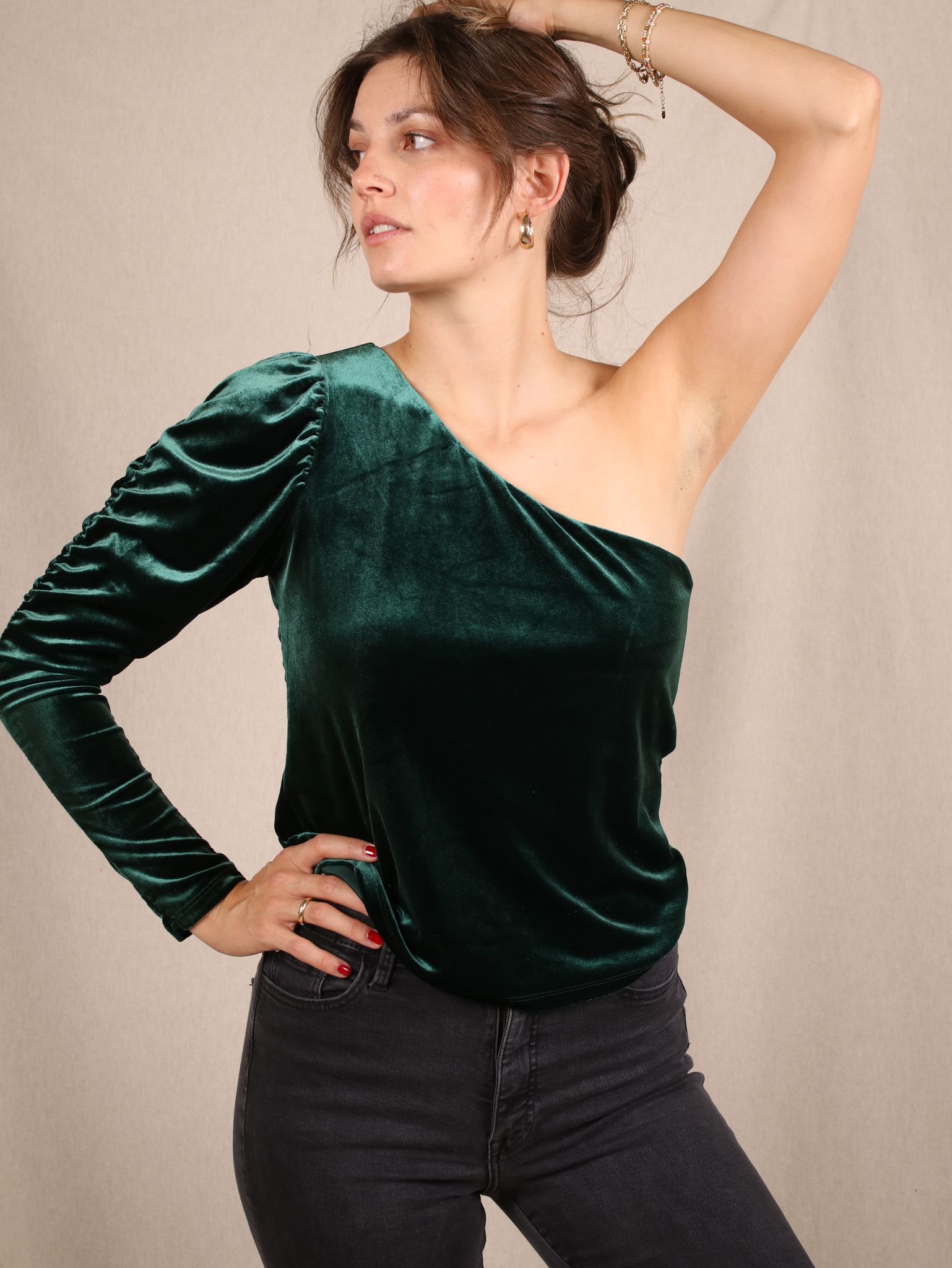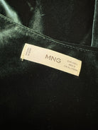 Dieses tiefgrüne Secondhand One Shoulder Longsleeve von Mango ist pure Eleganz – aus softem Samt, figurnah geschnitten und wie gemacht für deine nächsten Festlichkeiten. Der dramatische Schnitt trifft auf edles Material und bringt Weihnachtsmarkt-Glanz oder Partynächte auf ein neues Level.