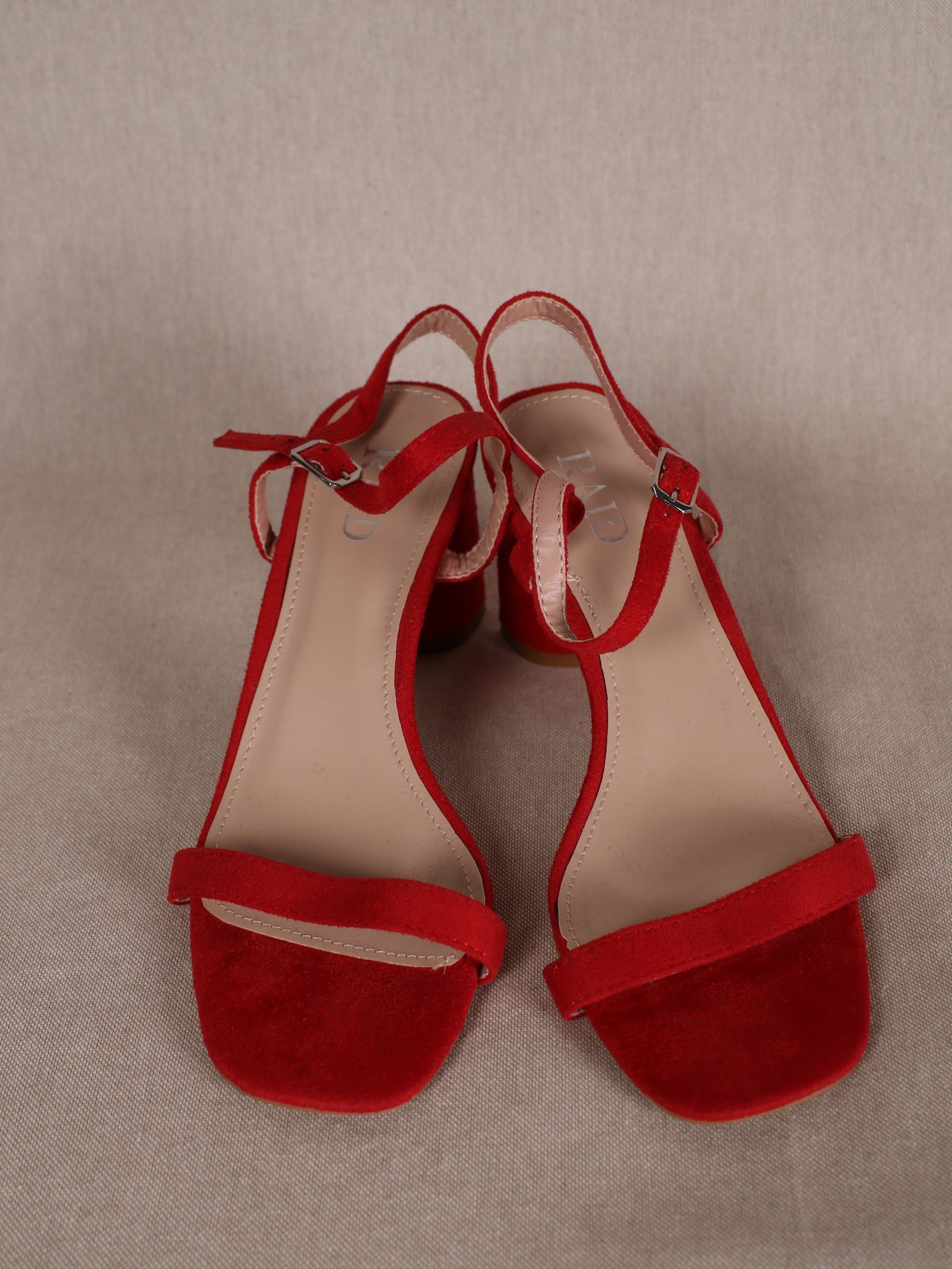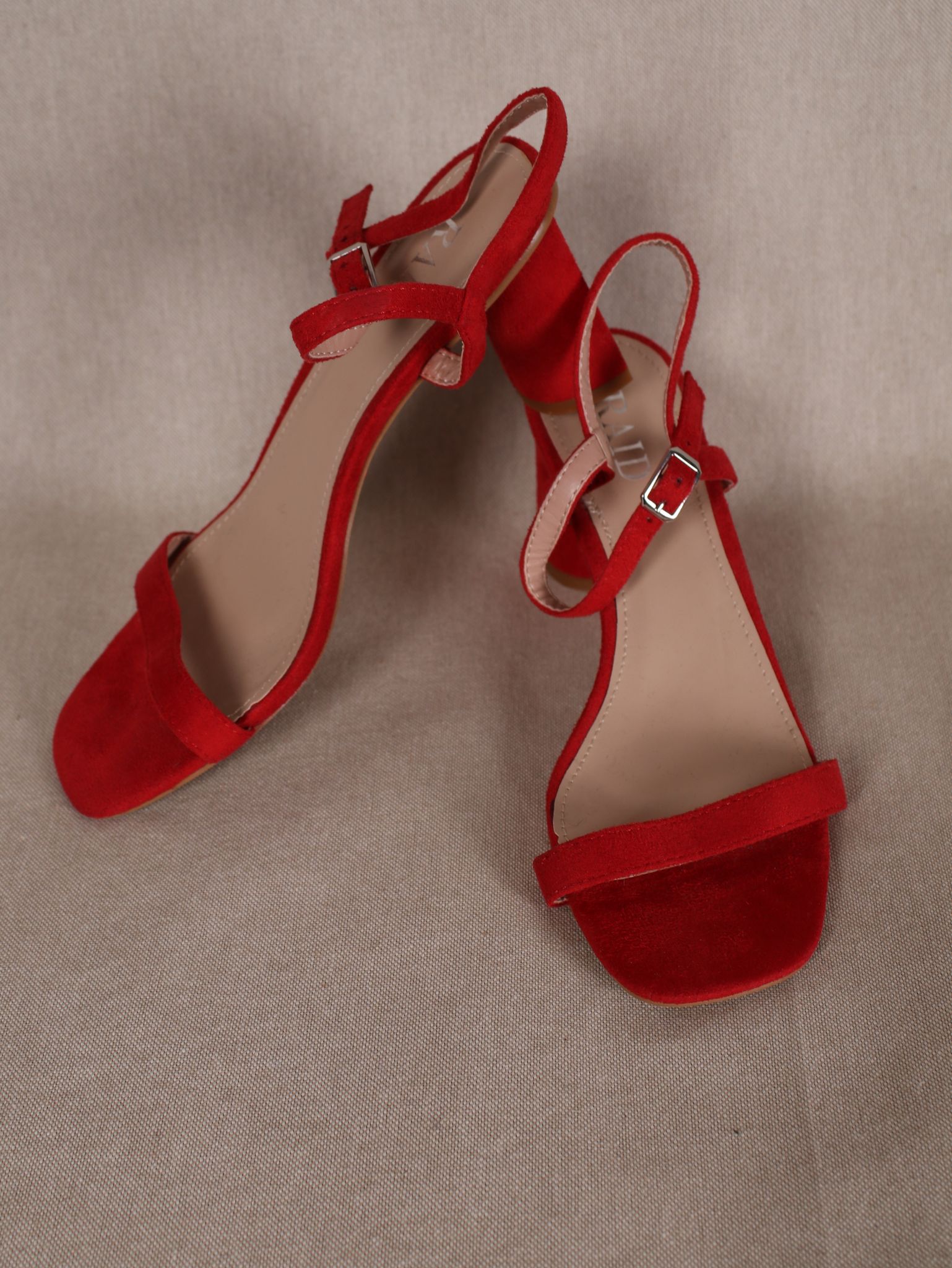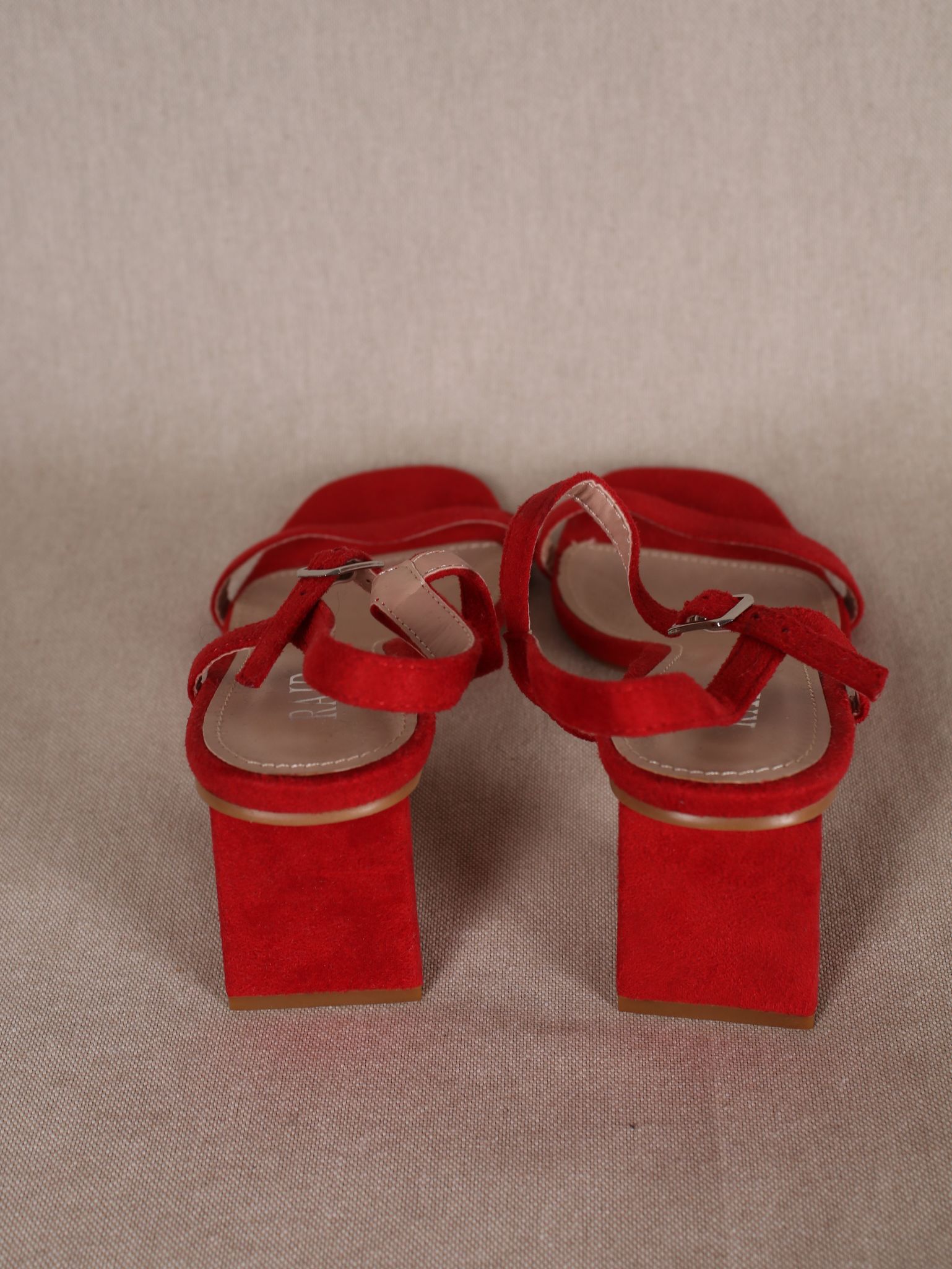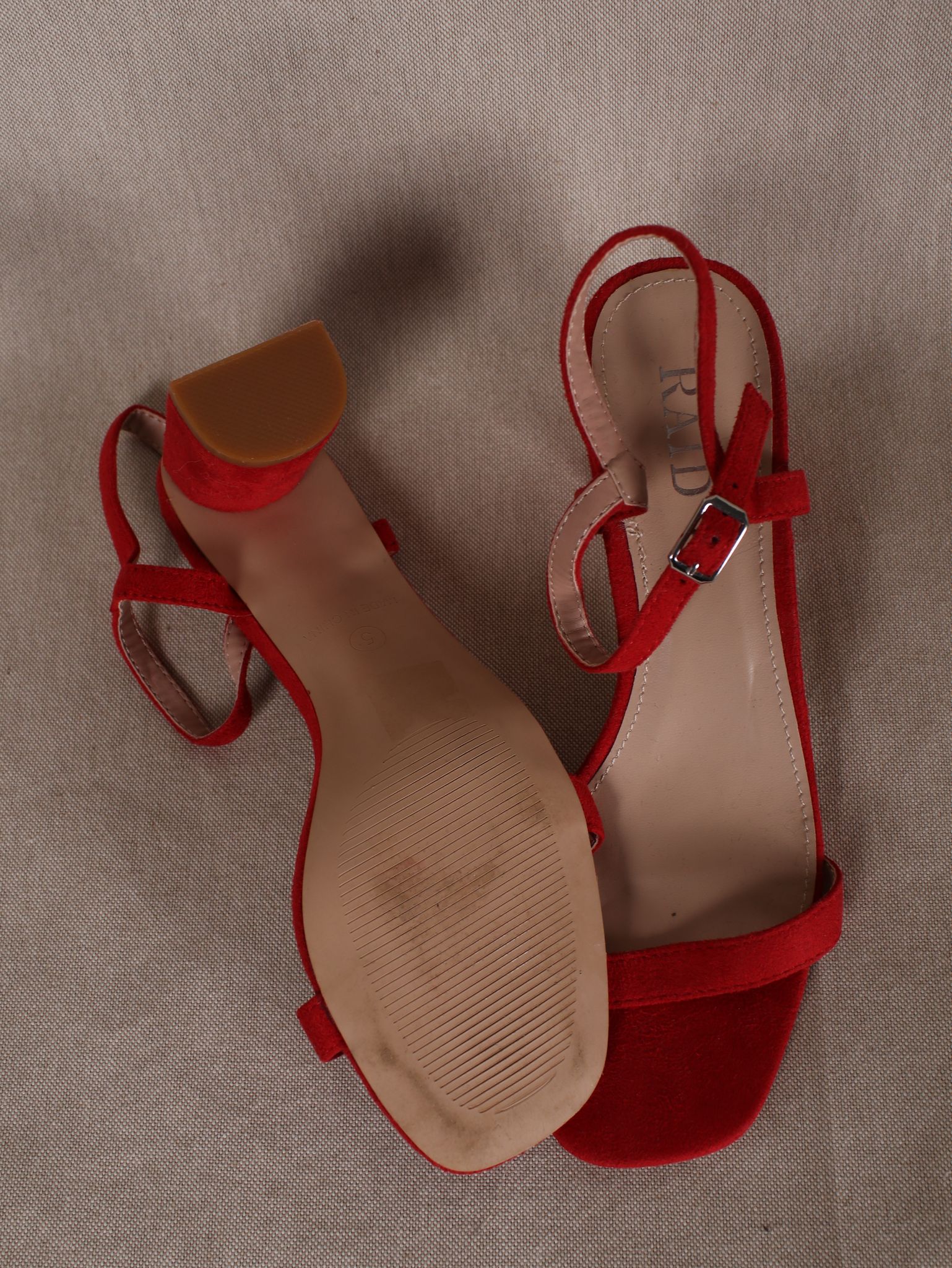 Diese Secondhand Sandalen von RAID sind ein echter Hingucker – leuchtend rot, mit zartem Velours-Finish und filigranem Riemchendesign. Der feminine Look bekommt durch den mittelhohen Blockabsatz eine bequeme Note – perfekt für Sommernächte, Gartenpartys oder einfach einen stylishen Alltagsmoment.