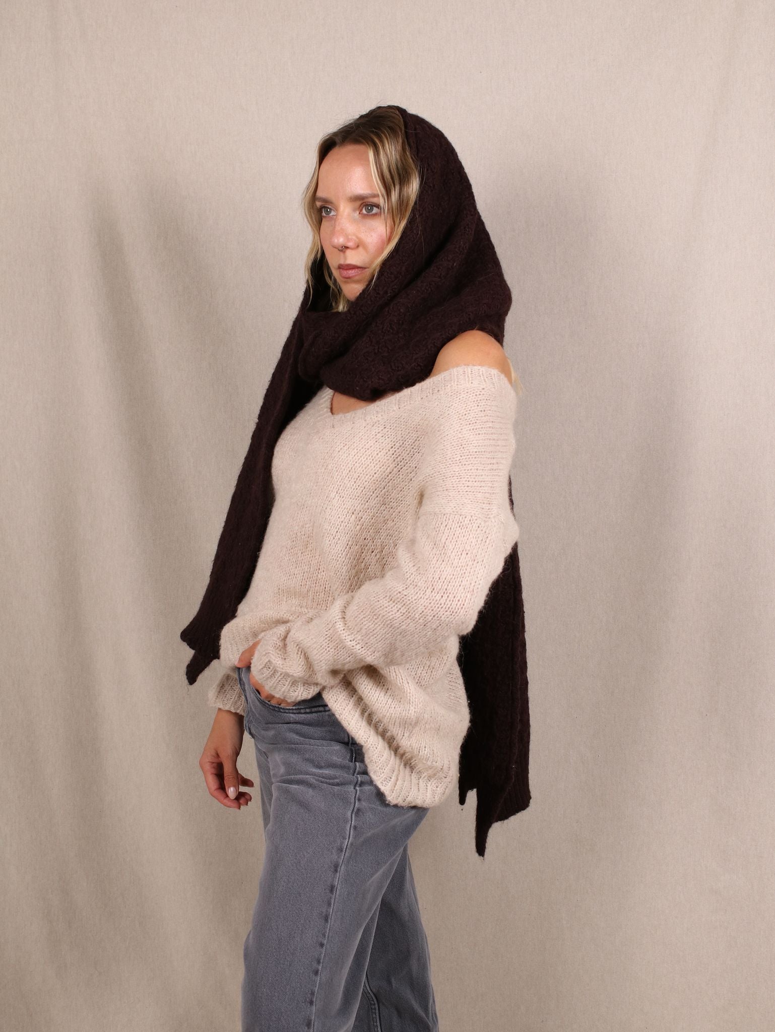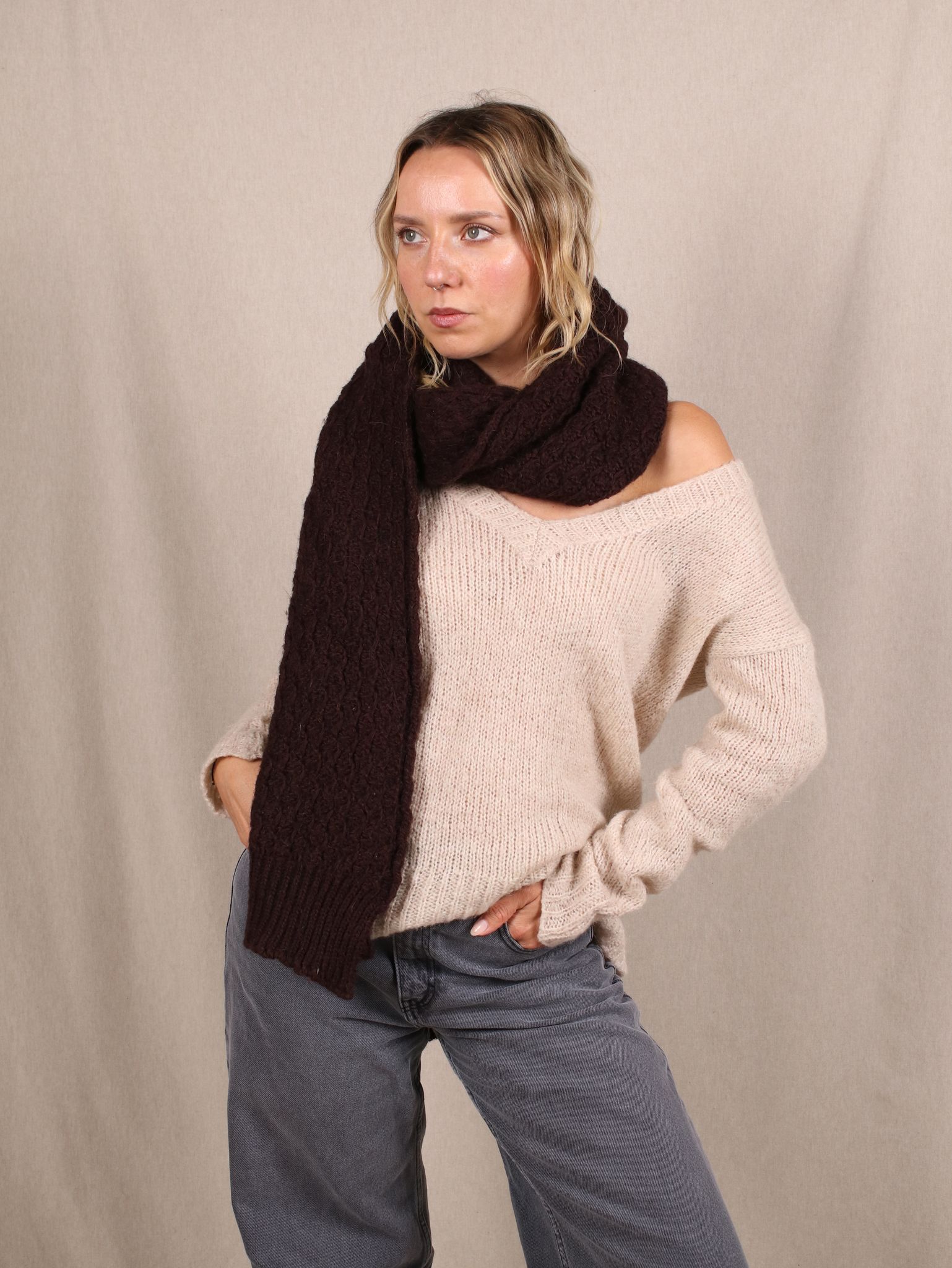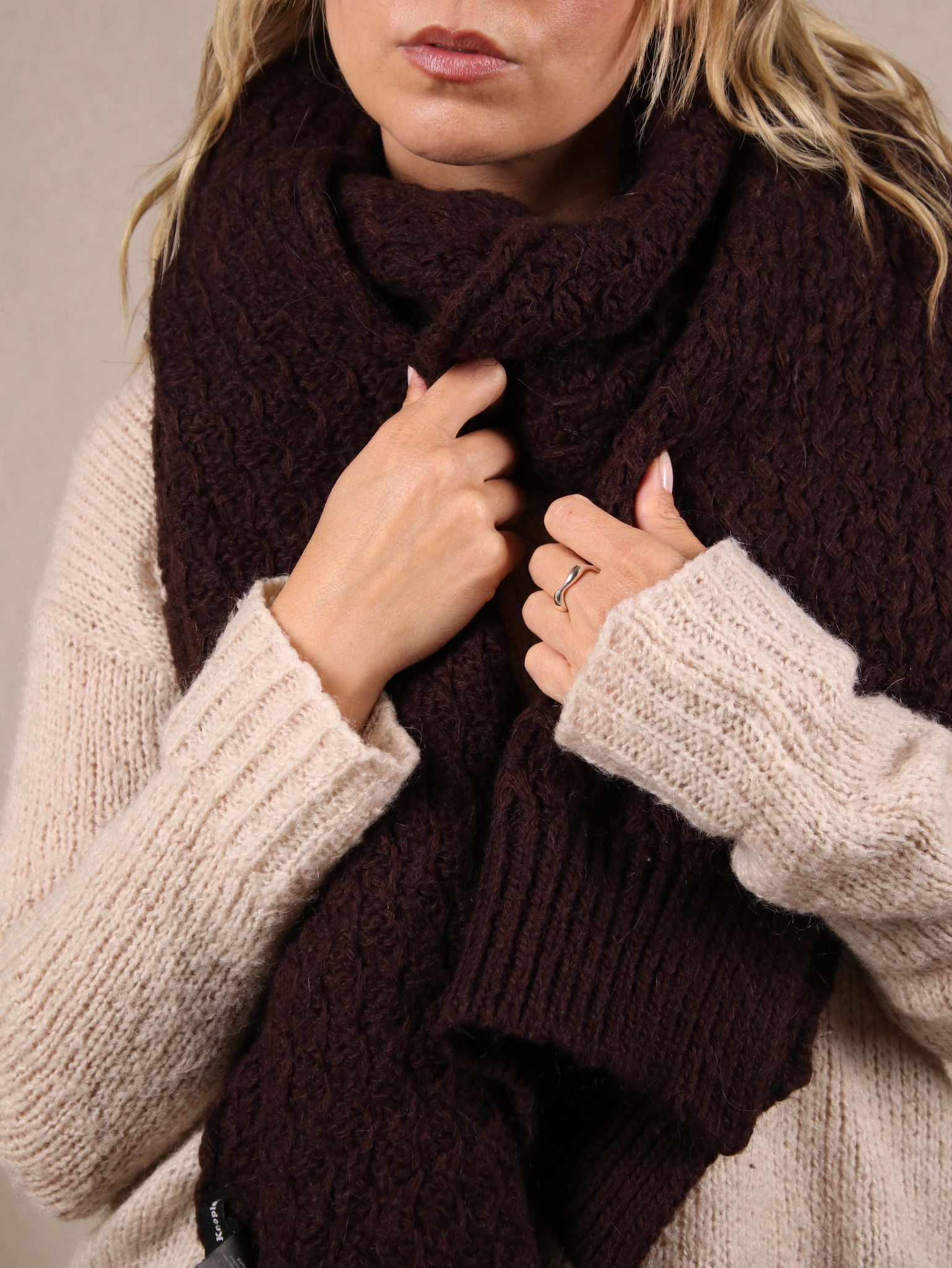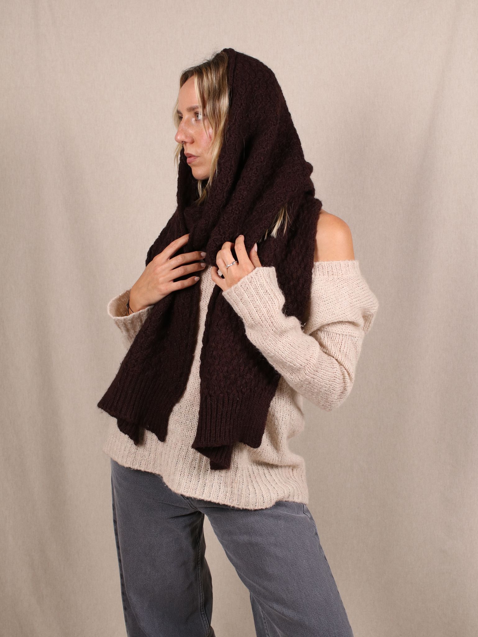 Dieser Secondhand Schal von The Kooples macht jedes Winter-Outfit ein bisschen dramatischer. In sattem Bordeaux und chunky Strick bist du nicht nur warm eingepackt, sondern auch maximal cool unterwegs.
