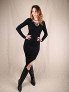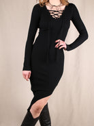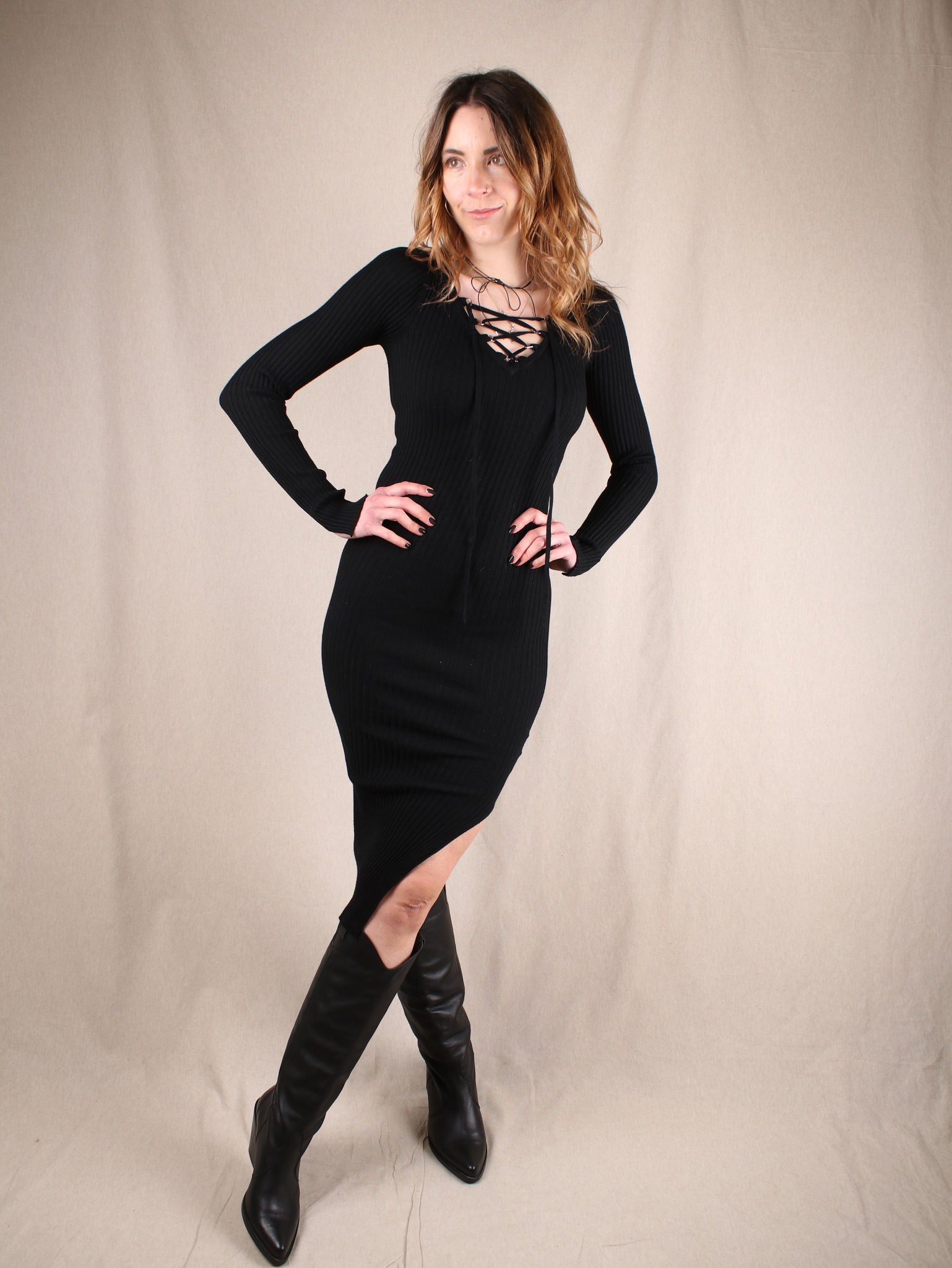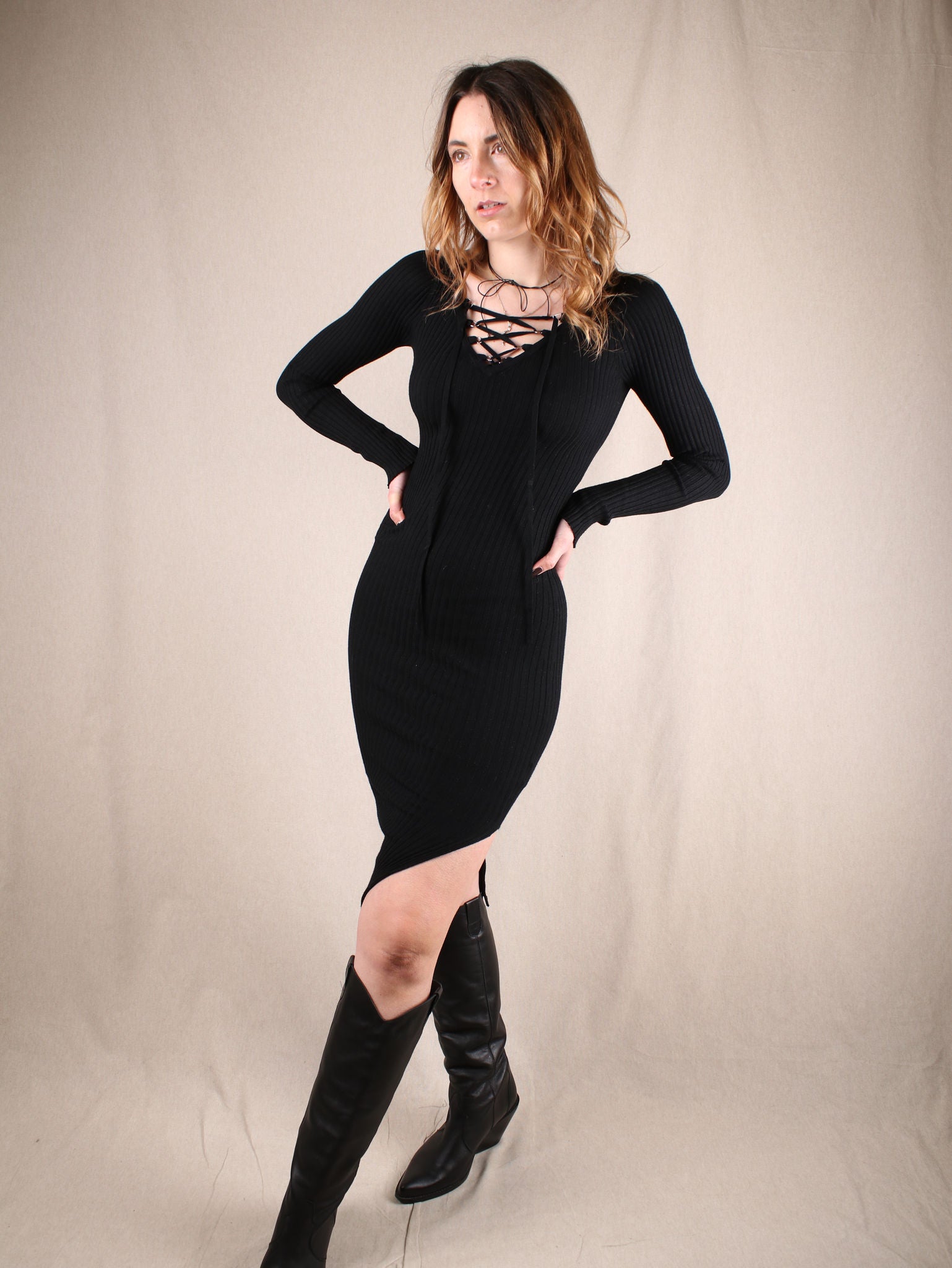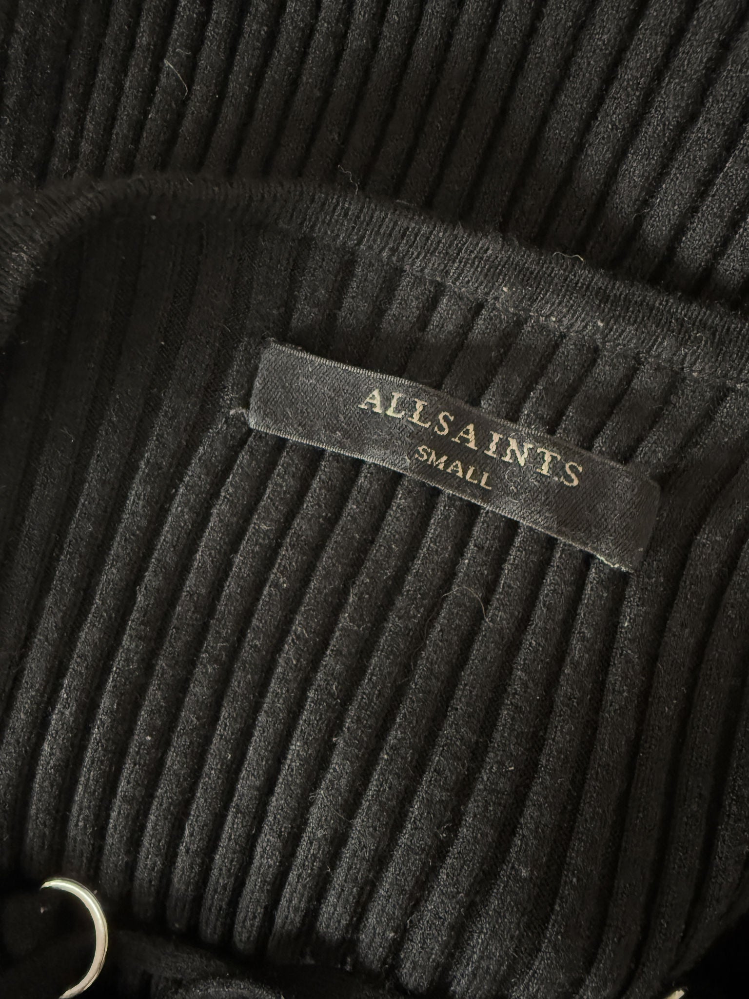 Asymmetrisches Secondhand Strickkleid von AllSaints aus breitem Rippstrick mit Schnürung