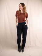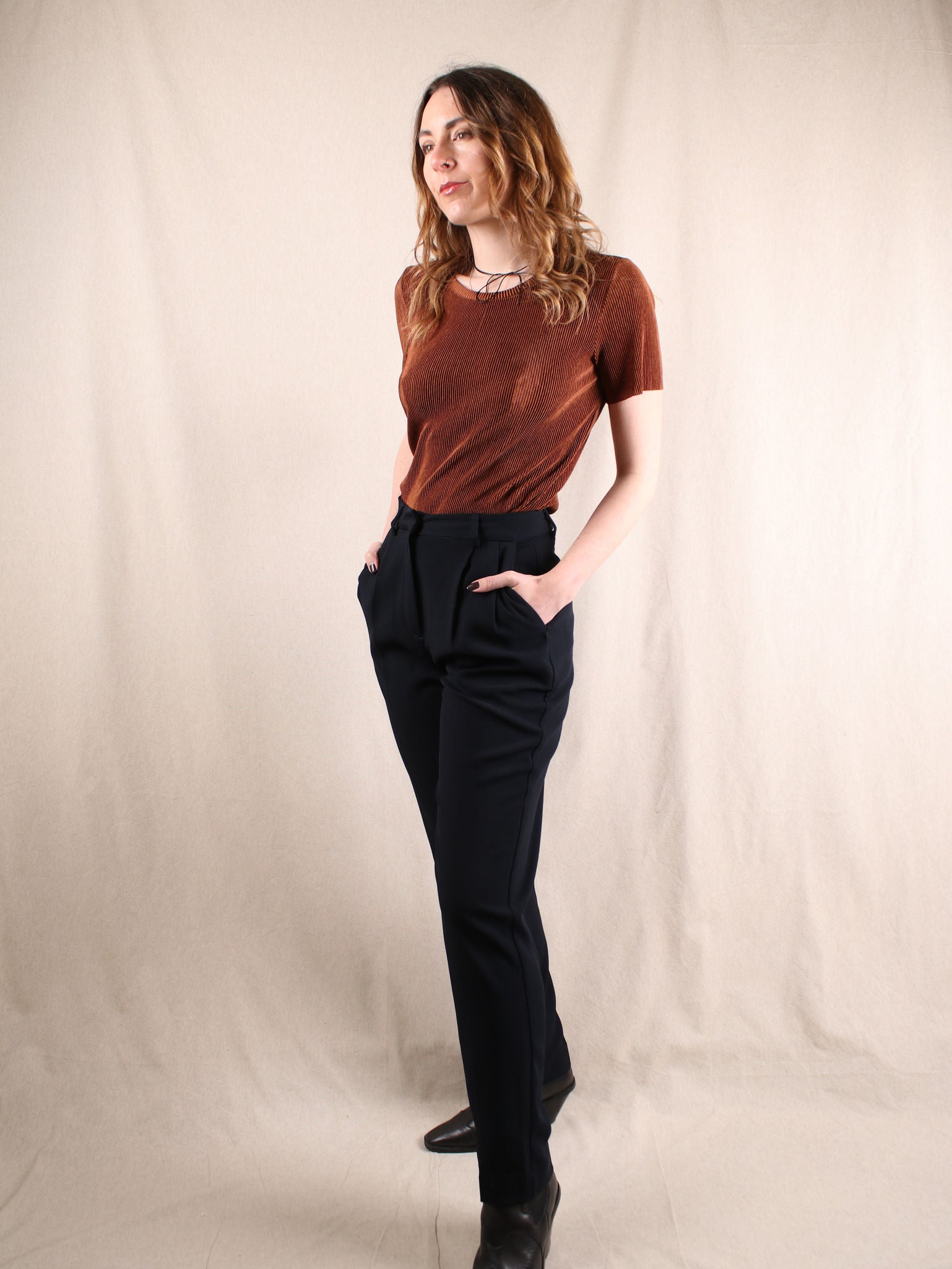 Dieses dunkelblaue American Vintage Piece ist dein neuer Preloved-Favorit für einen modernen, lässigen Look. Der Regular Fit sorgt für eine entspannte Silhouette, die wunderbar vielseitig zu stylen ist – ob casual mit Sneakern oder chic mit eleganten Ankle Boots. Lass dich von der unifarbenen Eleganz verzaubern und gib deinem Kleiderschrank einen coolen, zeitlosen Touch.