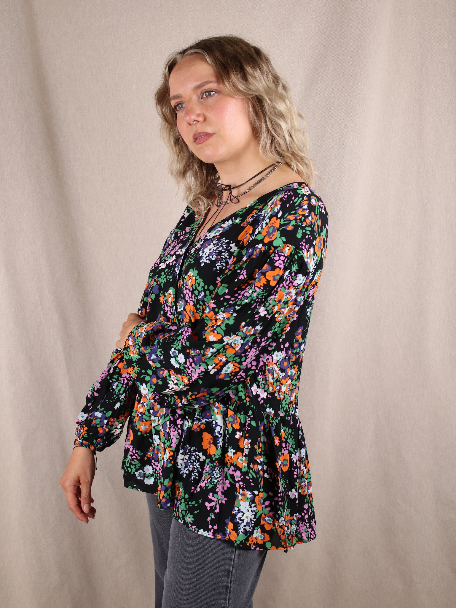 Volant-Bluse mit Flower-Print