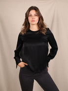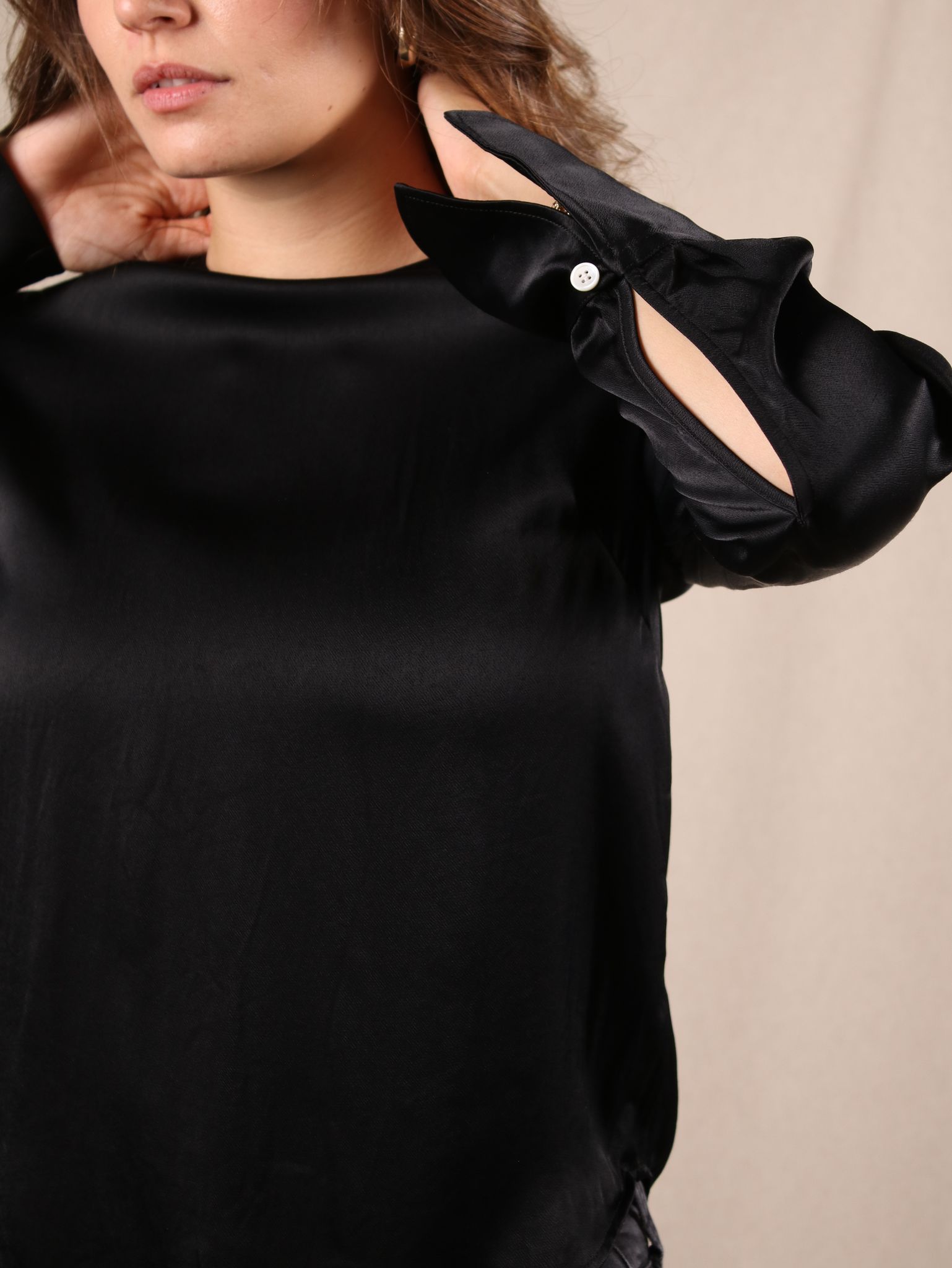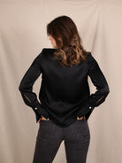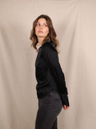 Eleganter geht’s kaum: Diese schwarze Satinbluse von Arket ist ein echter Klassiker mit modernem Twist. Der fließende Stoff in edlem Glanz sorgt für ein luxuriöses Tragegefühl, während die schlichte Silhouette zu allem passt – von Office bis After-Hour. Besonders schön: der minimalistische Look mit leicht ausgestellten Manschetten.