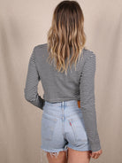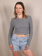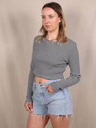 Dieses gestreifte Longsleeve von Arket vereint nordische Coolness mit lässiger Alltagsästhetik. Mit dunkelblau-weißen Rippstreifen, figurnahem Cropped Fit und softem Baumwollmaterial ist es ein moderner Klassiker für jeden Tag. Ob mit Jeans, Shorts oder Rock – der Fisherman-Vibe macht jedes Outfit effortlessly chic.