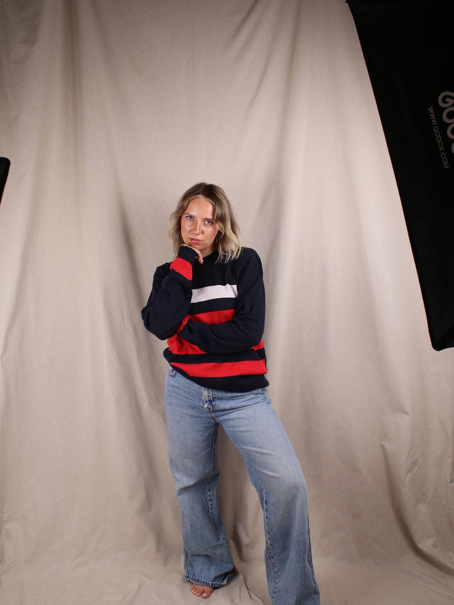 Der Artikel wurde gerne getragen, befindet sich aber weiterhin in gutem Zustand. Kleinere Gebrauchsspuren wie leichtes Pilling oder dezente Reparaturen können vorkommen, auffälligere Mängel listen wir selbstverständlich explizit auf.