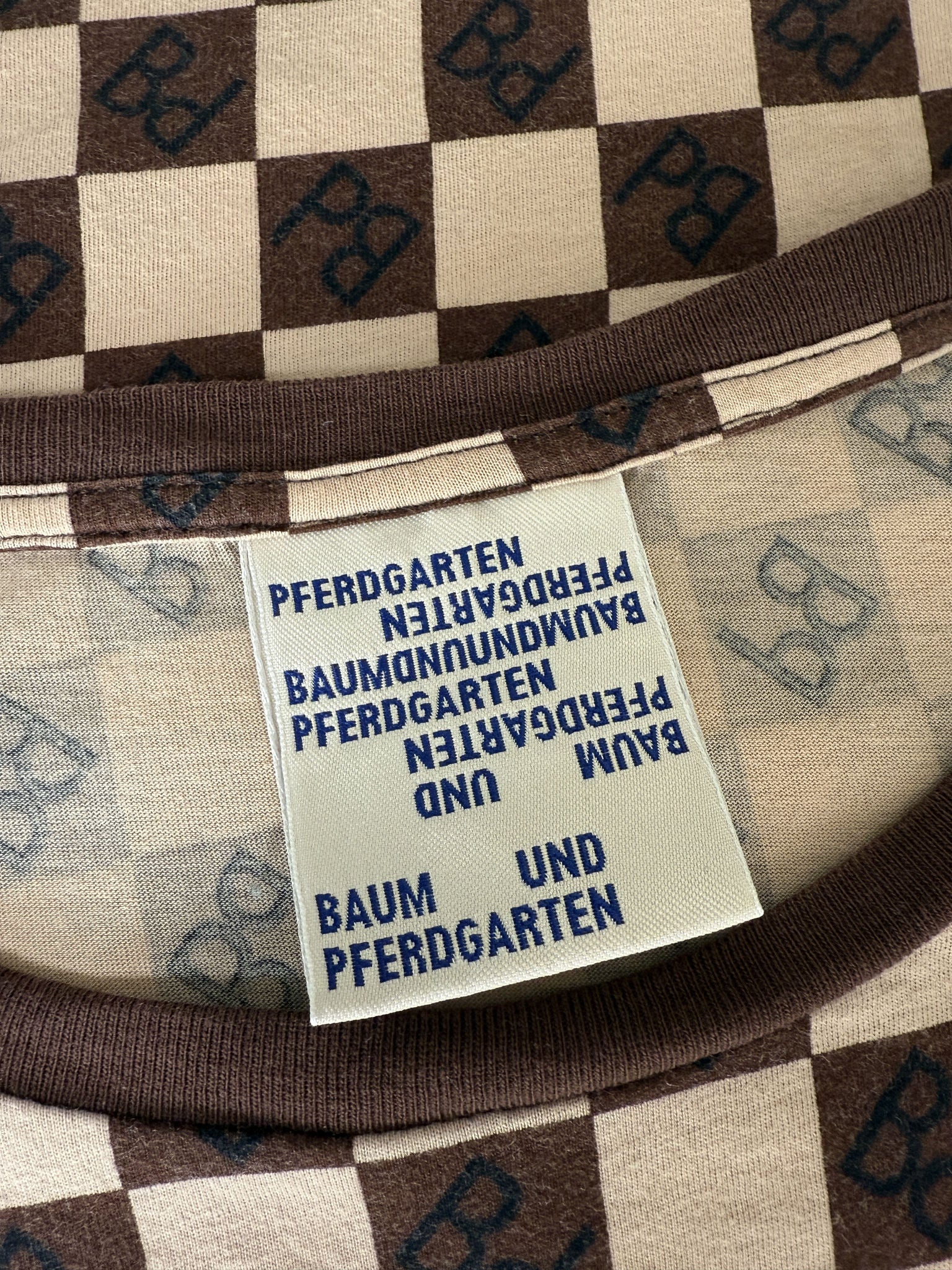 Secondhand T-Shirt von Bau und Pferdgarten mit Logo.