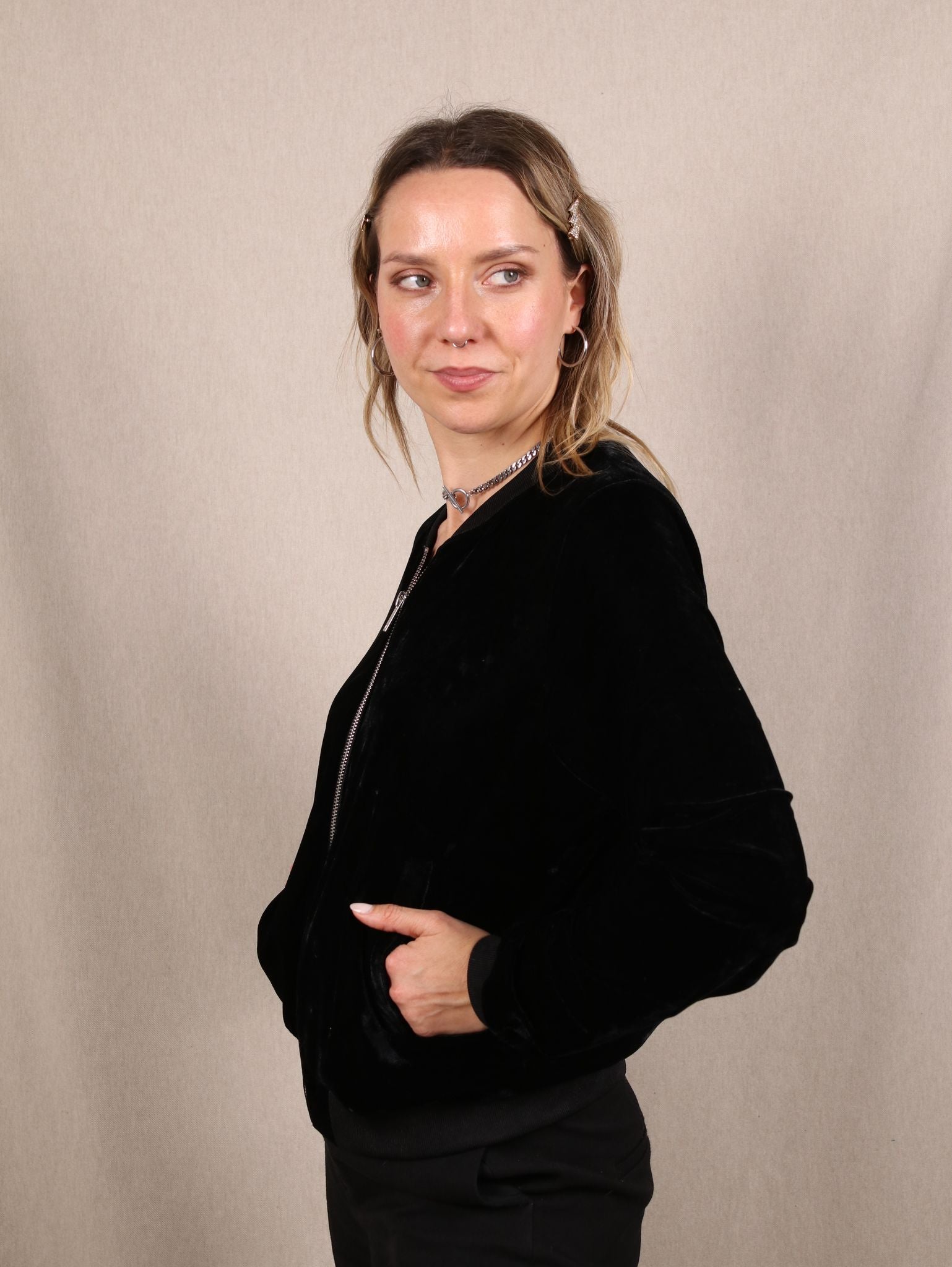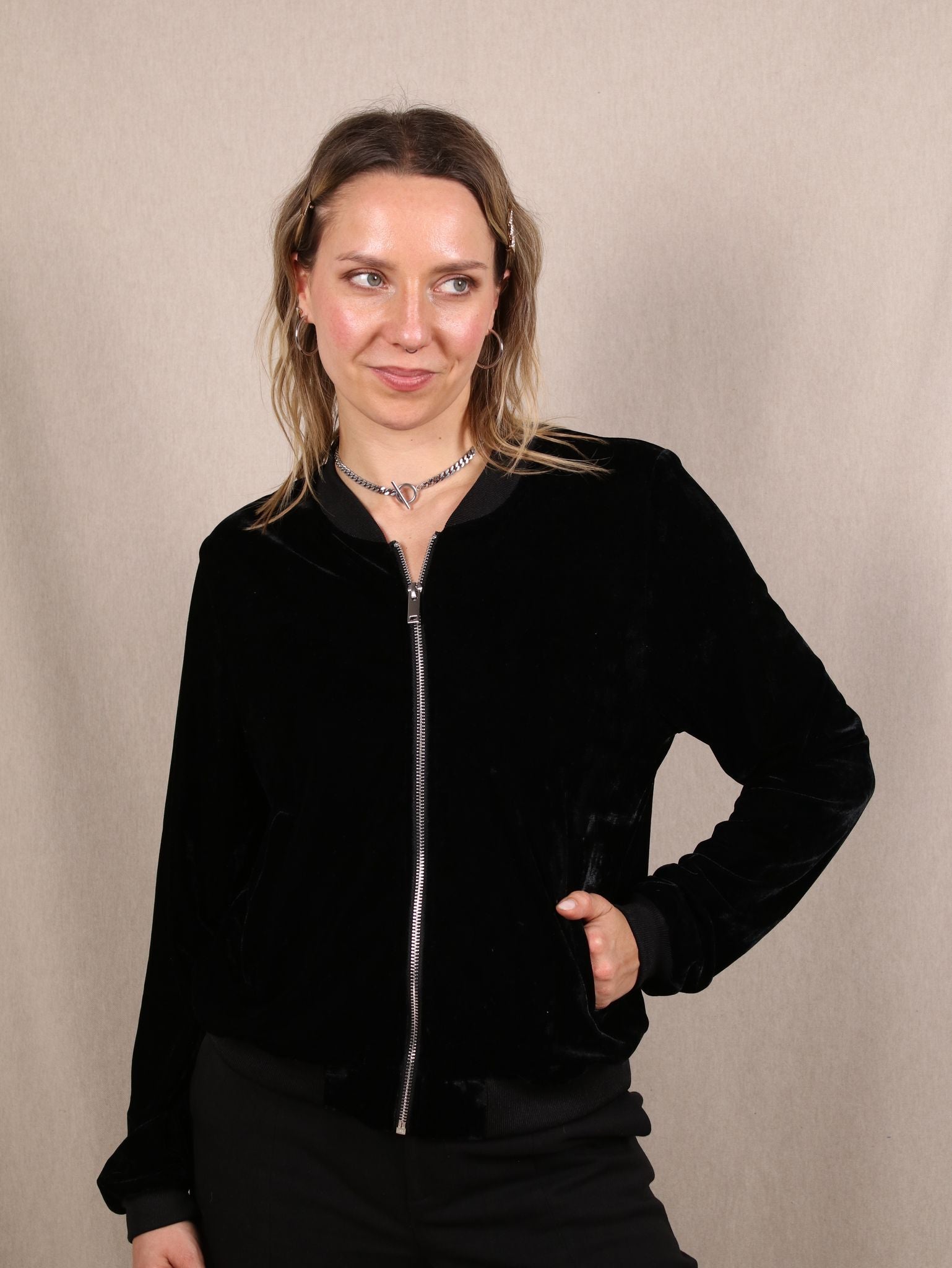 Samt-Jacke mit Zipper