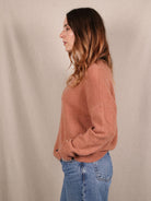 Dieser Pullover von Boii Studios ist wie ein Zimt-Latte in Strickform: weich, cozy und einfach zum Verlieben. Die warme Mauve-Nuance bringt sofort Glow in graue Tage, während das Alpaka-Material dich flauschig umhüllt – no itch, just vibes. Ein Basic, das alles andere als basic ist. Natürlich Secondhand – für nachhaltige Wärme mit Stil.