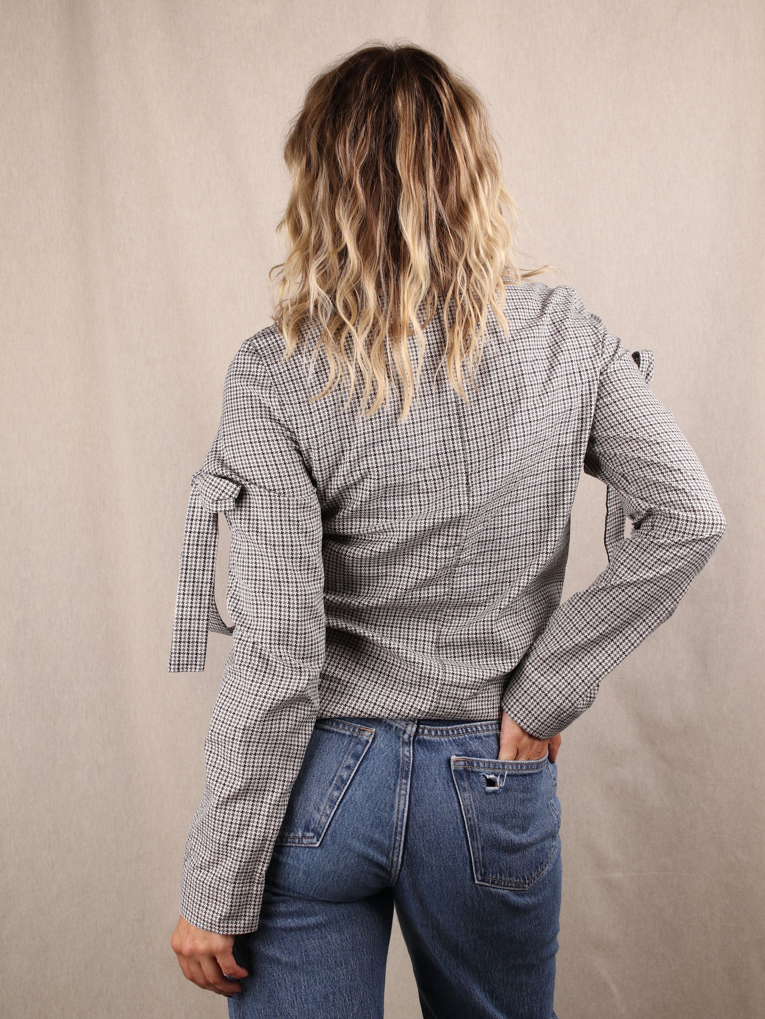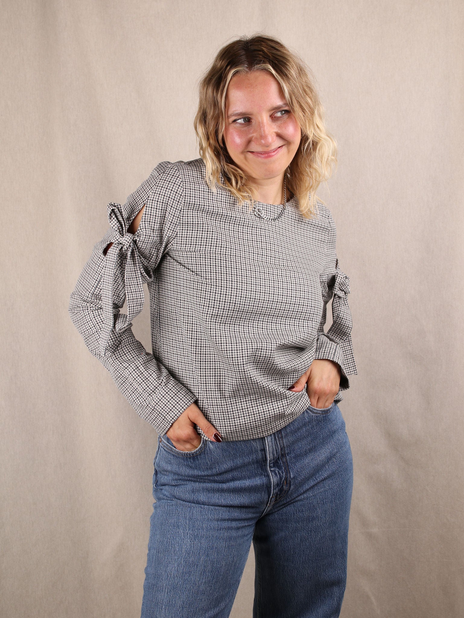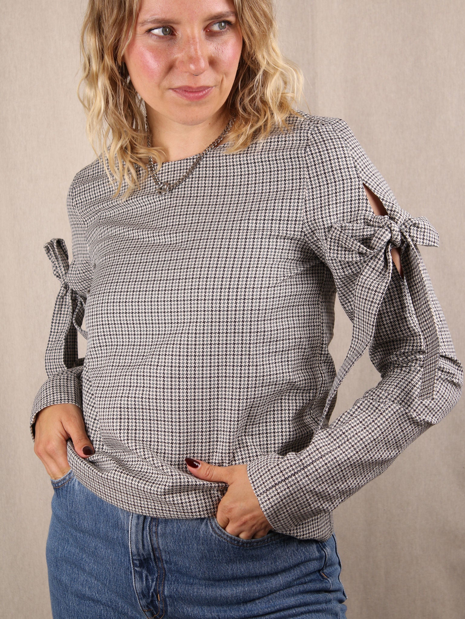 Hahnentritt-Bluse mit Schleifen