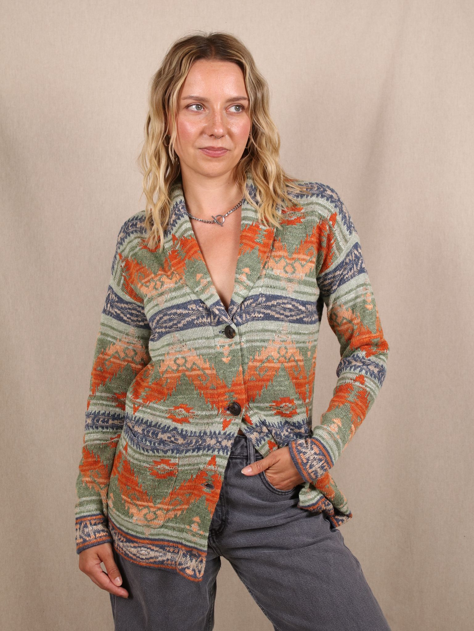 Dieser Cardigan von Denim & Supply Ralph Lauren bringt Farbe ins Spiel – und zwar richtig. Das Jacquard-Muster schreit nach Festival-Feeling, während der Fit easy und cozy bleibt.