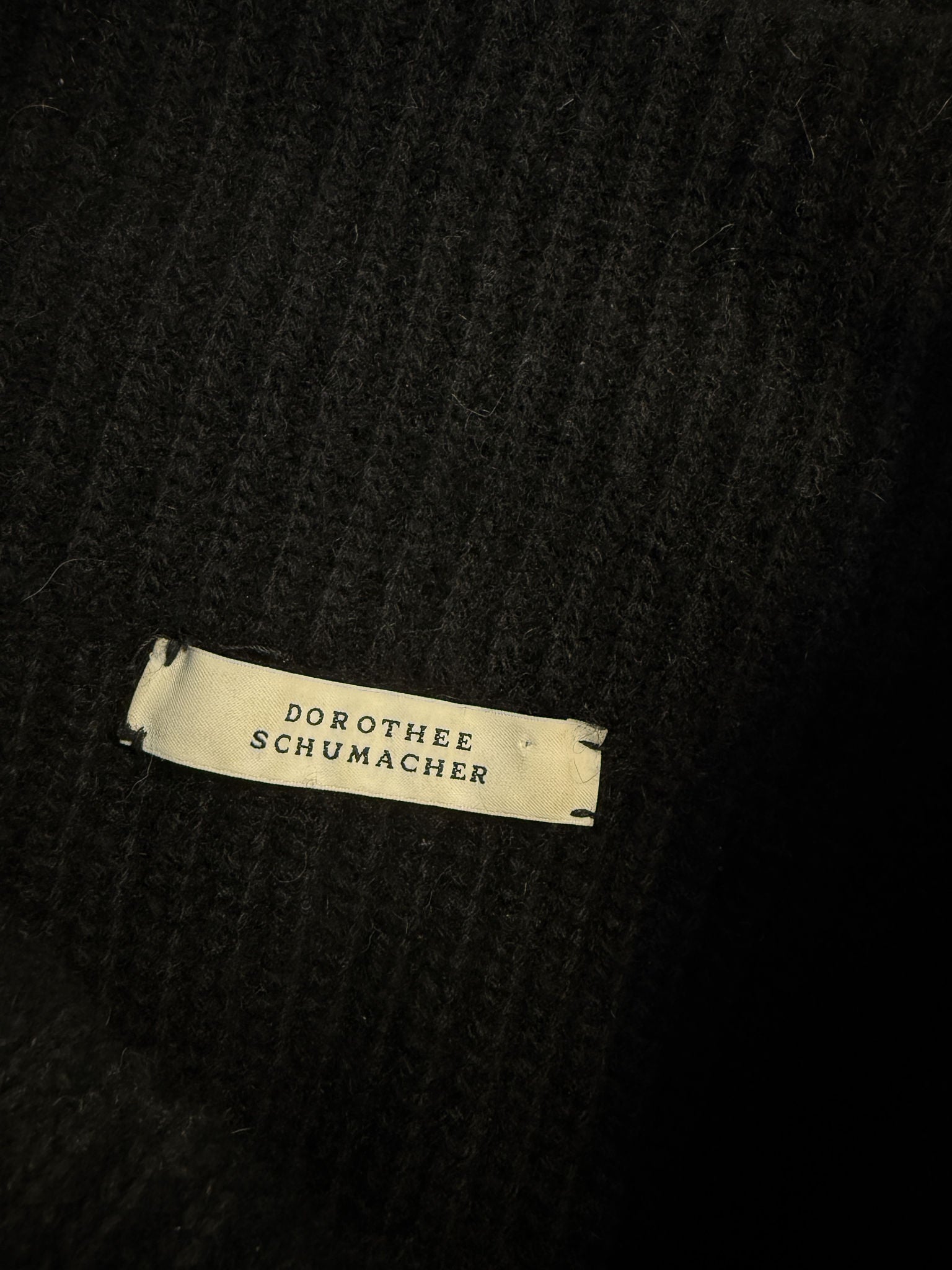 Dieser luxuriöse Preloved Pullover aus 100% super softem Kaschmir von Dorothee Schumacher ist mehr als nur ein Basic - er ist ein Statement. Die Cut Outs auf den Schultern verleihen dem klassischen Rollkragen-Look einen edgy Twist, perfekt für stilbewusste Layering-Queens. Ob mit Jeans für einen lässigen Streetstyle oder über einem Slip-Dress für den ultimativen Scandi-Chic - dieses Piece ist der perfekte Mix aus cozy und cool.