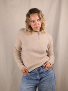 Der Artikel wurde gerne getragen, befindet sich aber weiterhin in gutem Zustand. Kleinere Gebrauchsspuren wie leichtes Pilling oder dezente Reparaturen können vorkommen, auffälligere Mängel listen wir selbstverständlich explizit auf.