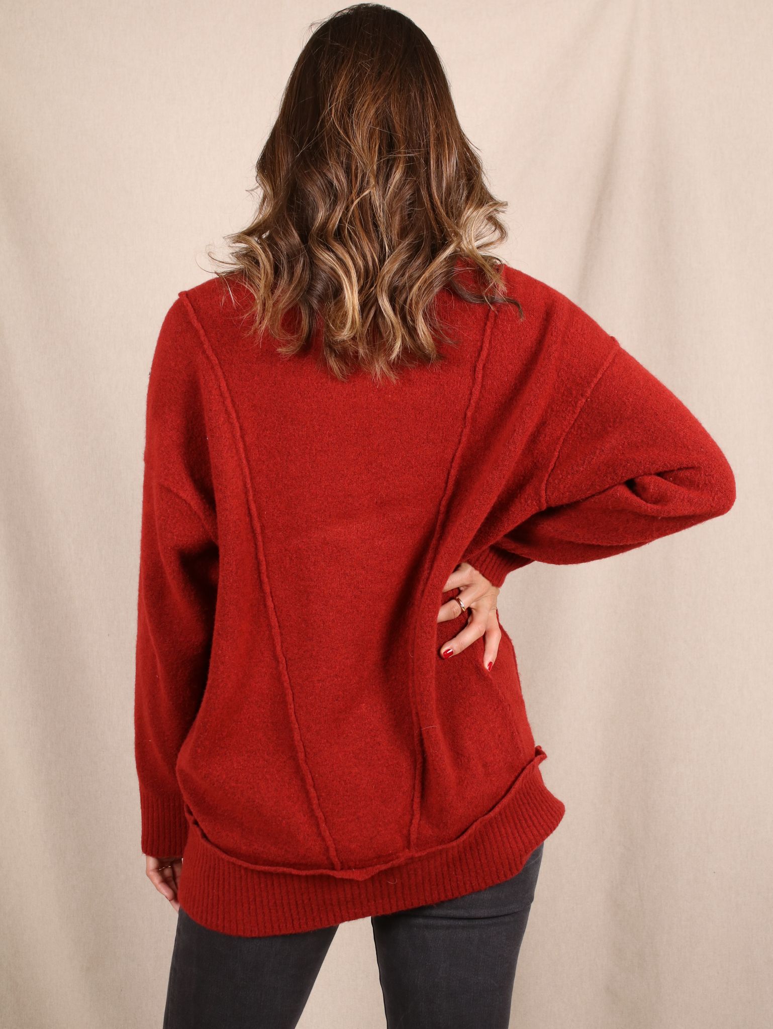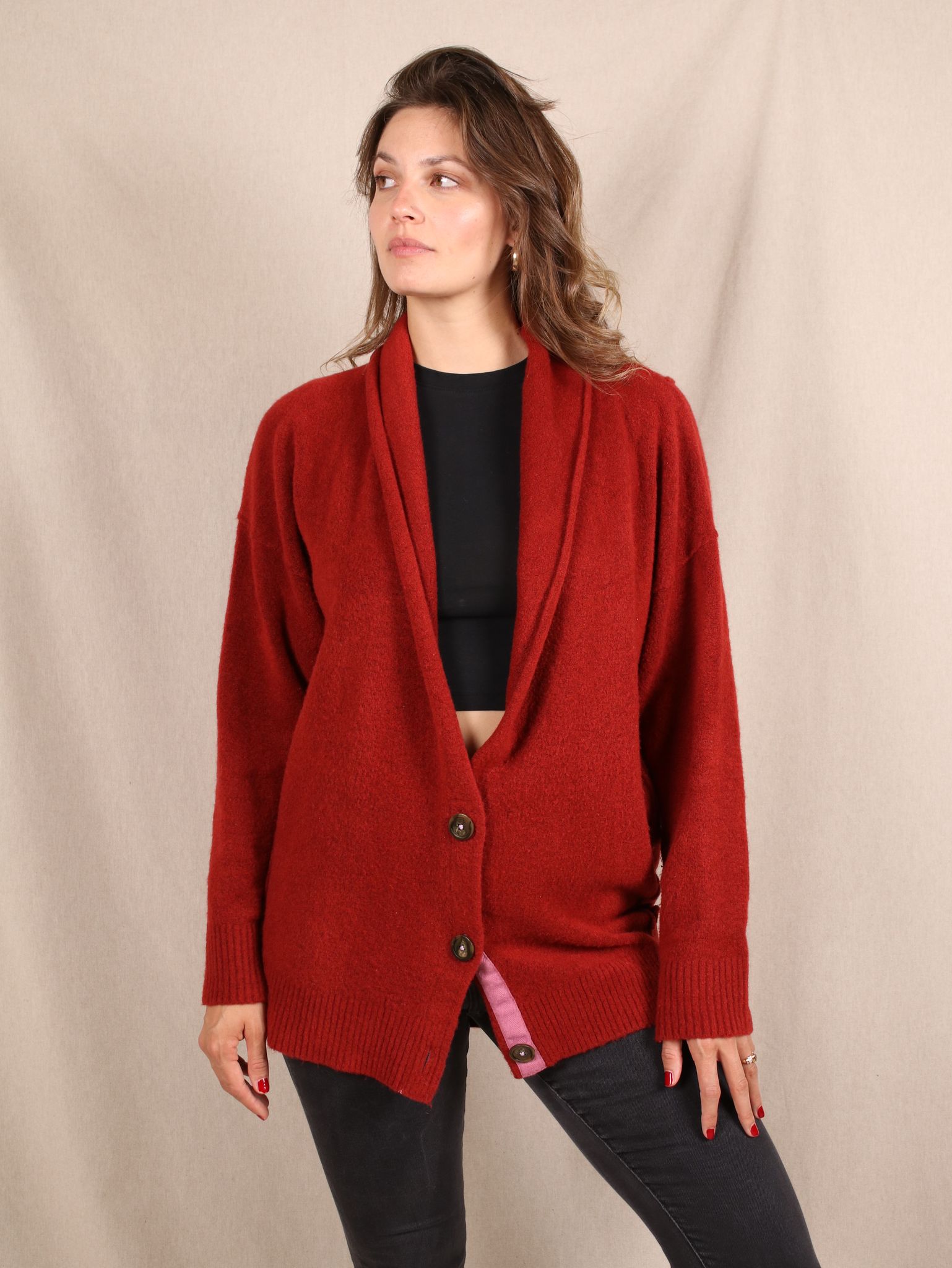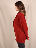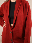 Dieser oversized Cardigan von Free People ist wie gemacht für Tage, an denen du dich einkuscheln, aber trotzdem stilvoll unterwegs sein willst. Die satte Bordeauxfarbe bringt Wärme in jedes Outfit, während die lockere Passform und die sichtbaren Nähte den lässigen Boho-Vibe perfekt machen.