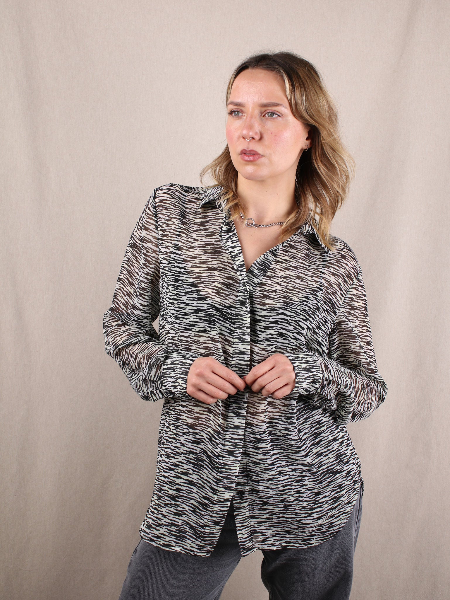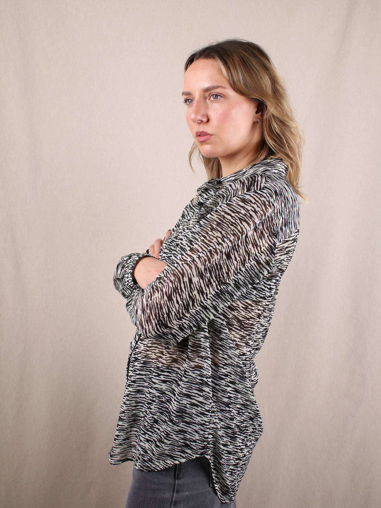 Oversize-Bluse aus Crêpe mit Zebra-Muster