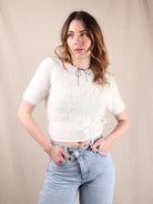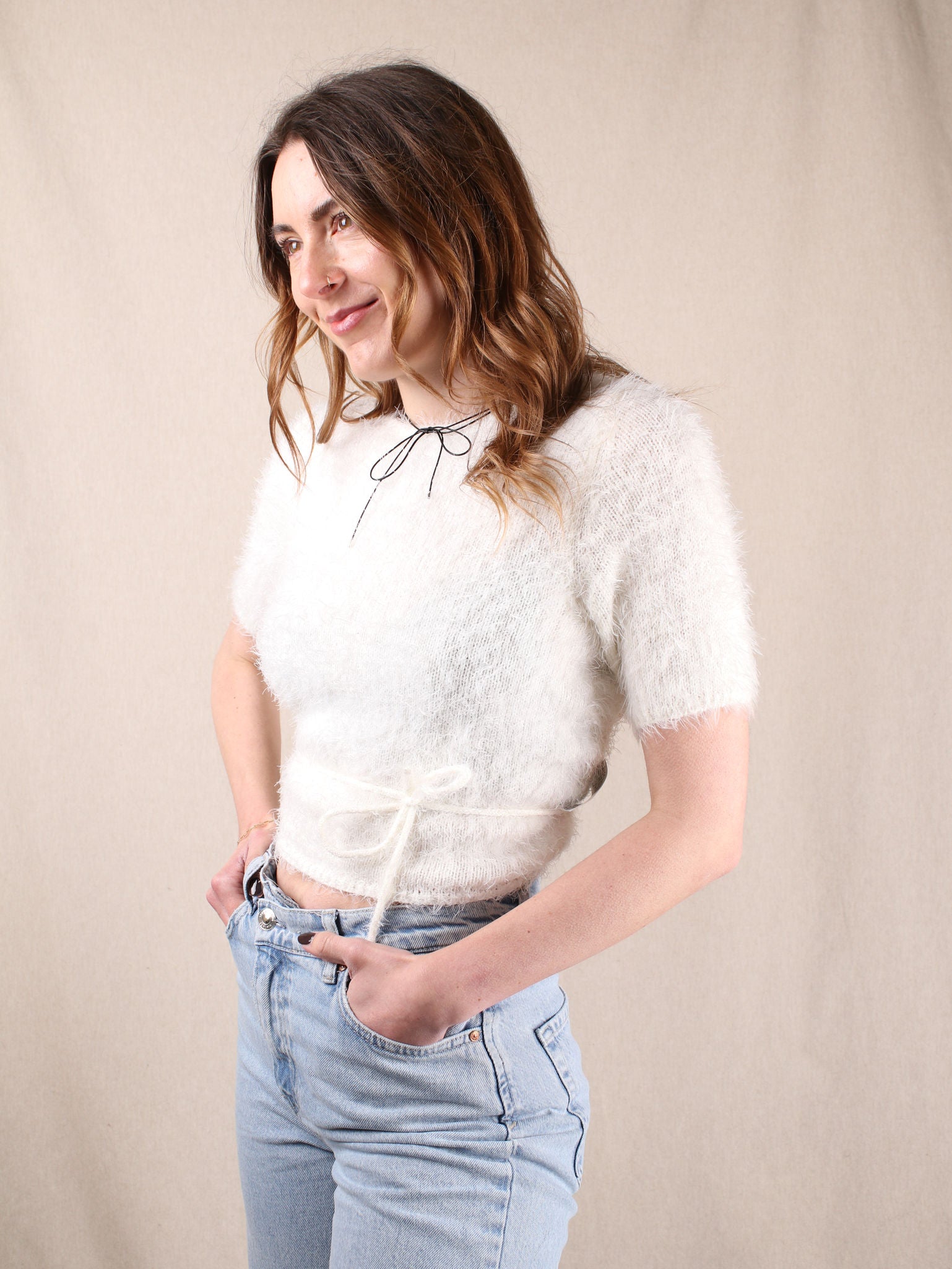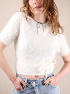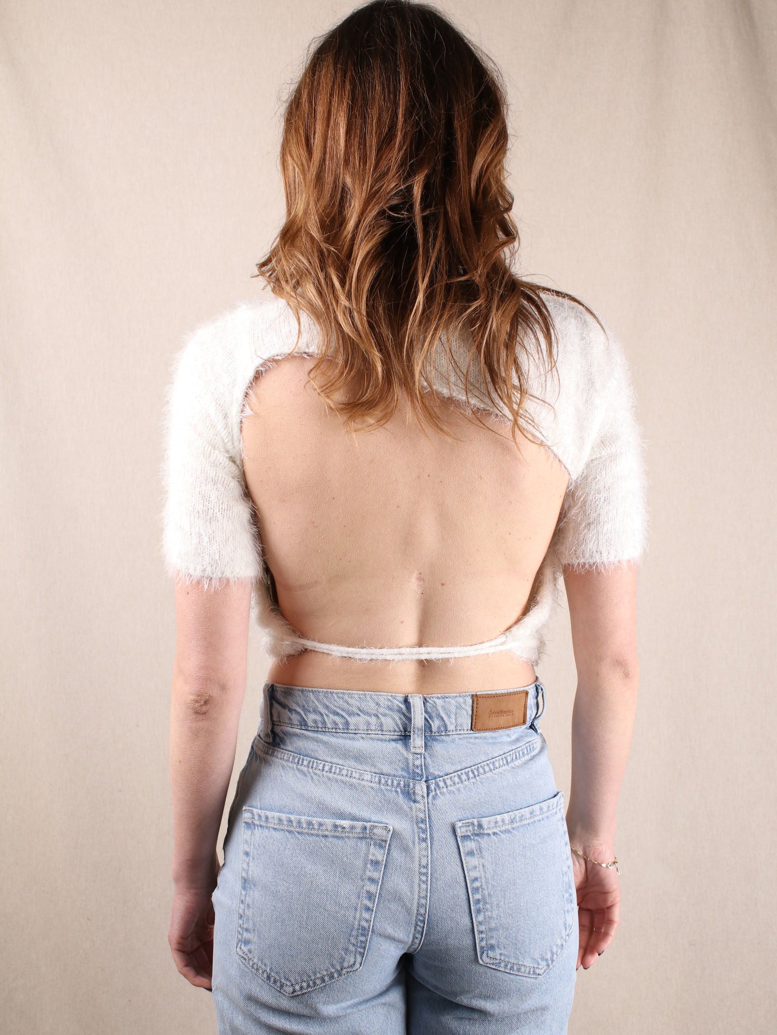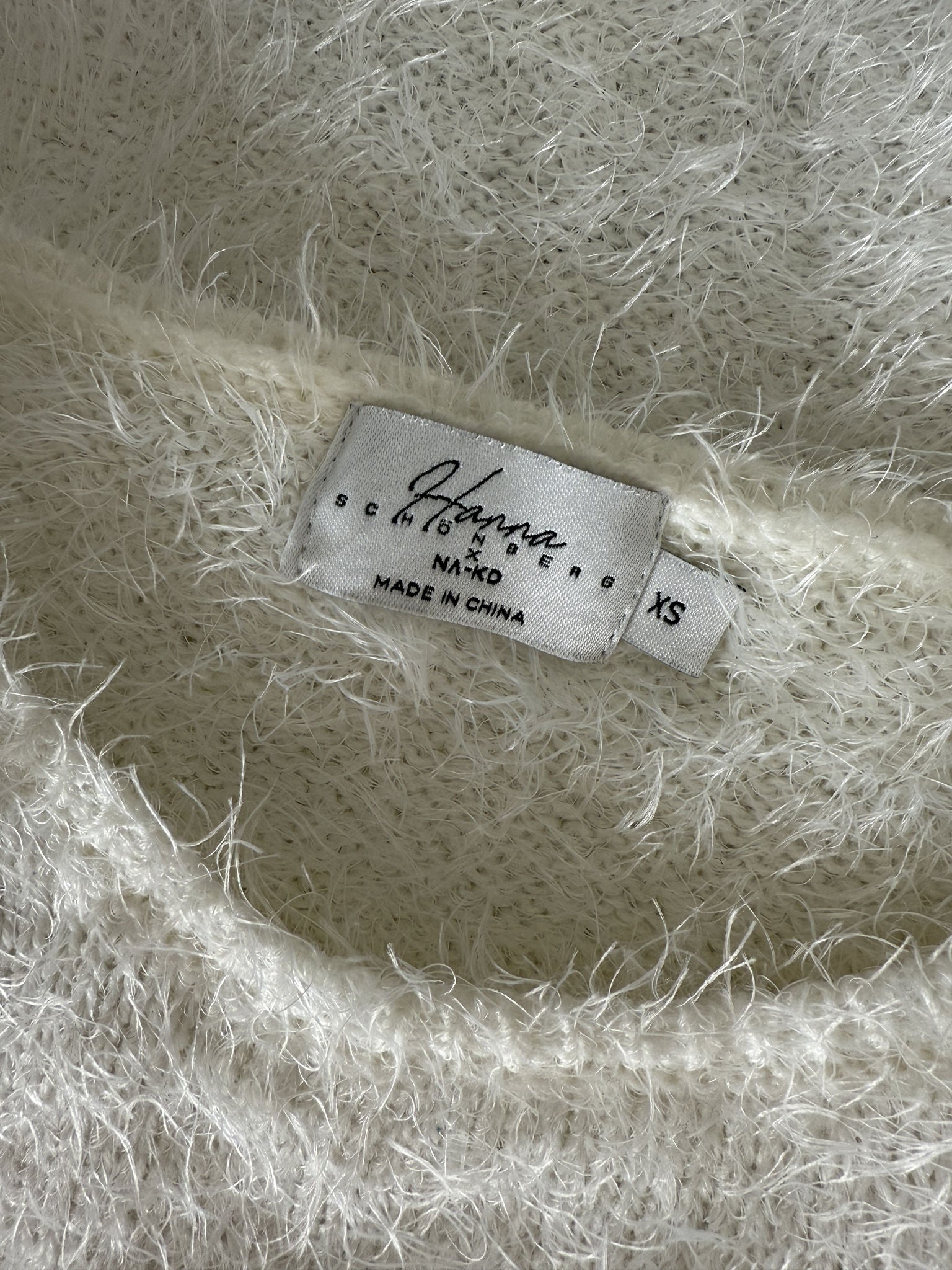 Flauschiges Secondhand Strick-Shirt von NA-KD x Hanna Schönberg mit großem Cut Out am Rücken.