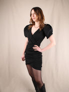 Süßes Secondhand Minikleid aus Crêpe von H&M mit großen Puffärmeln und charmanten Raffungen