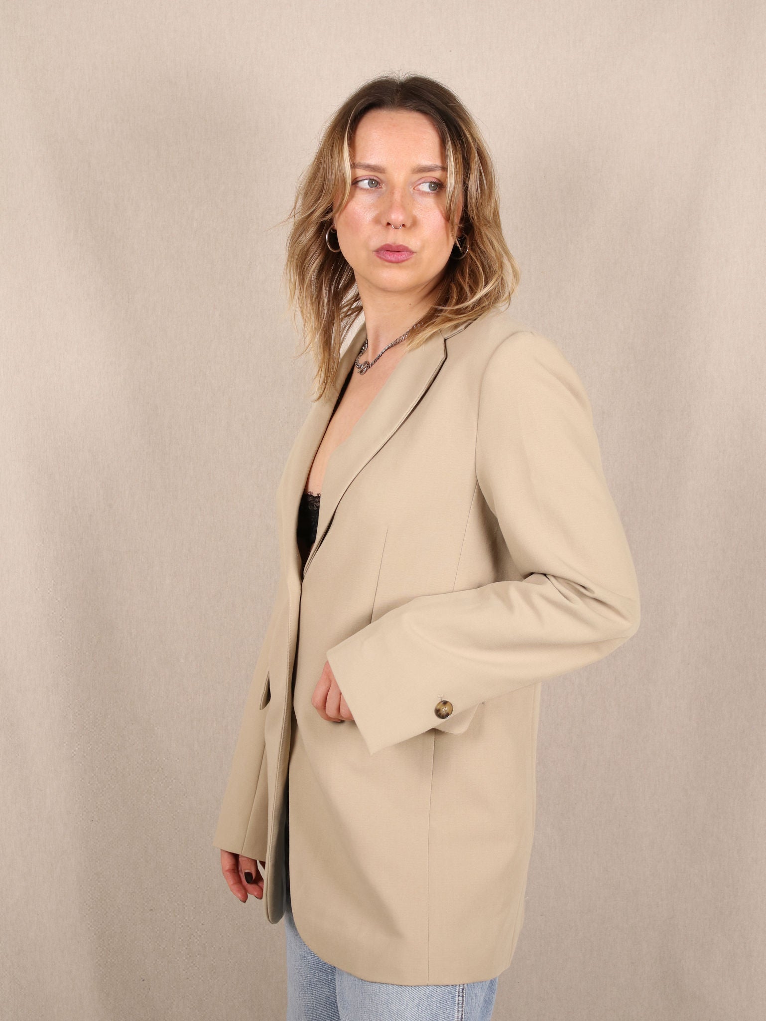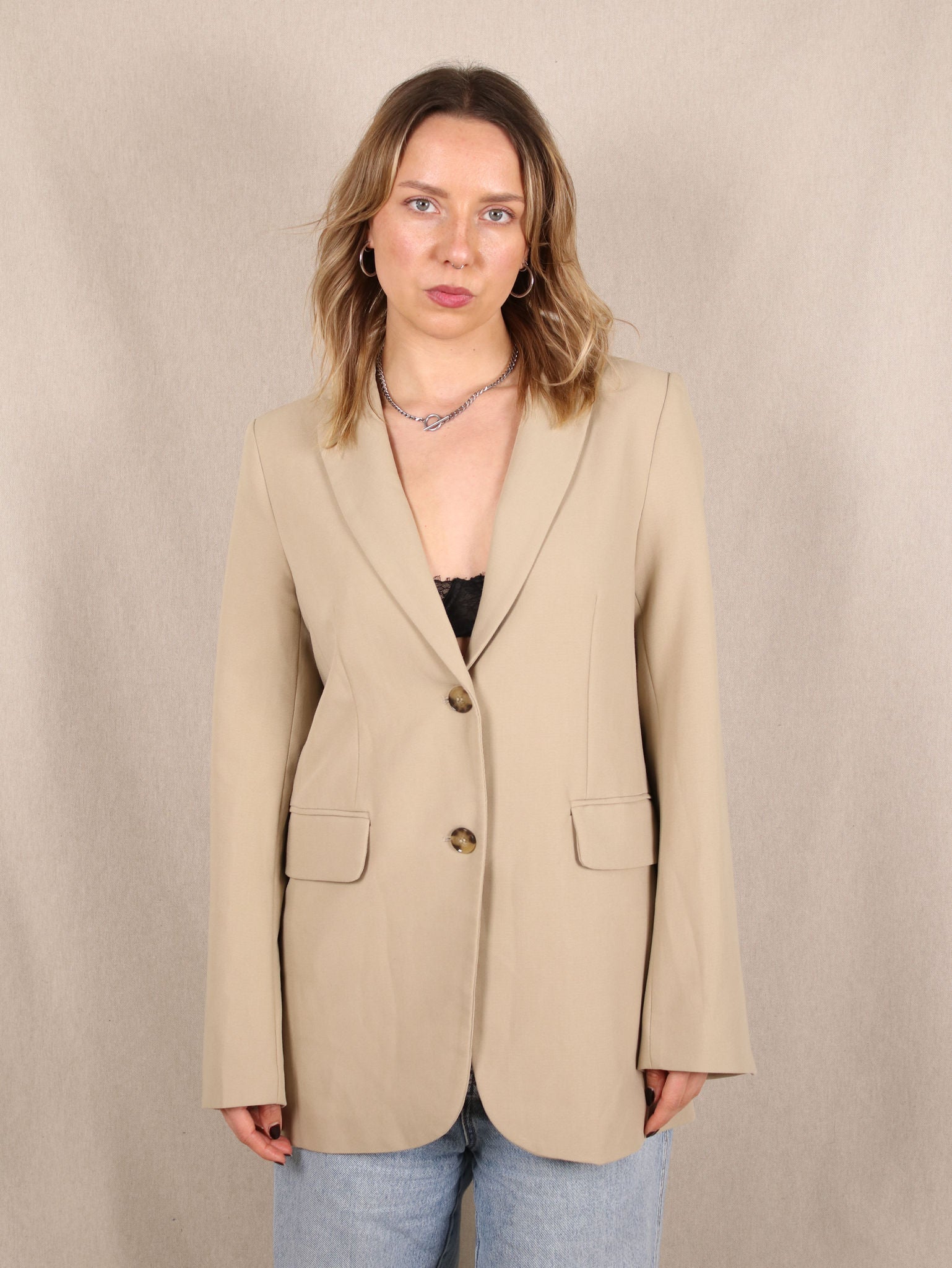 Dieser Preloved H&M Blazer in Beige ist der perfekte Oversize-Allrounder. Der weiche Webstoff aus Polyester, Viskose und Elasthan fällt lässig und bequem. Perfekt zur Jeans oder als smarter Look mit passenden Tailoring-Pieces!