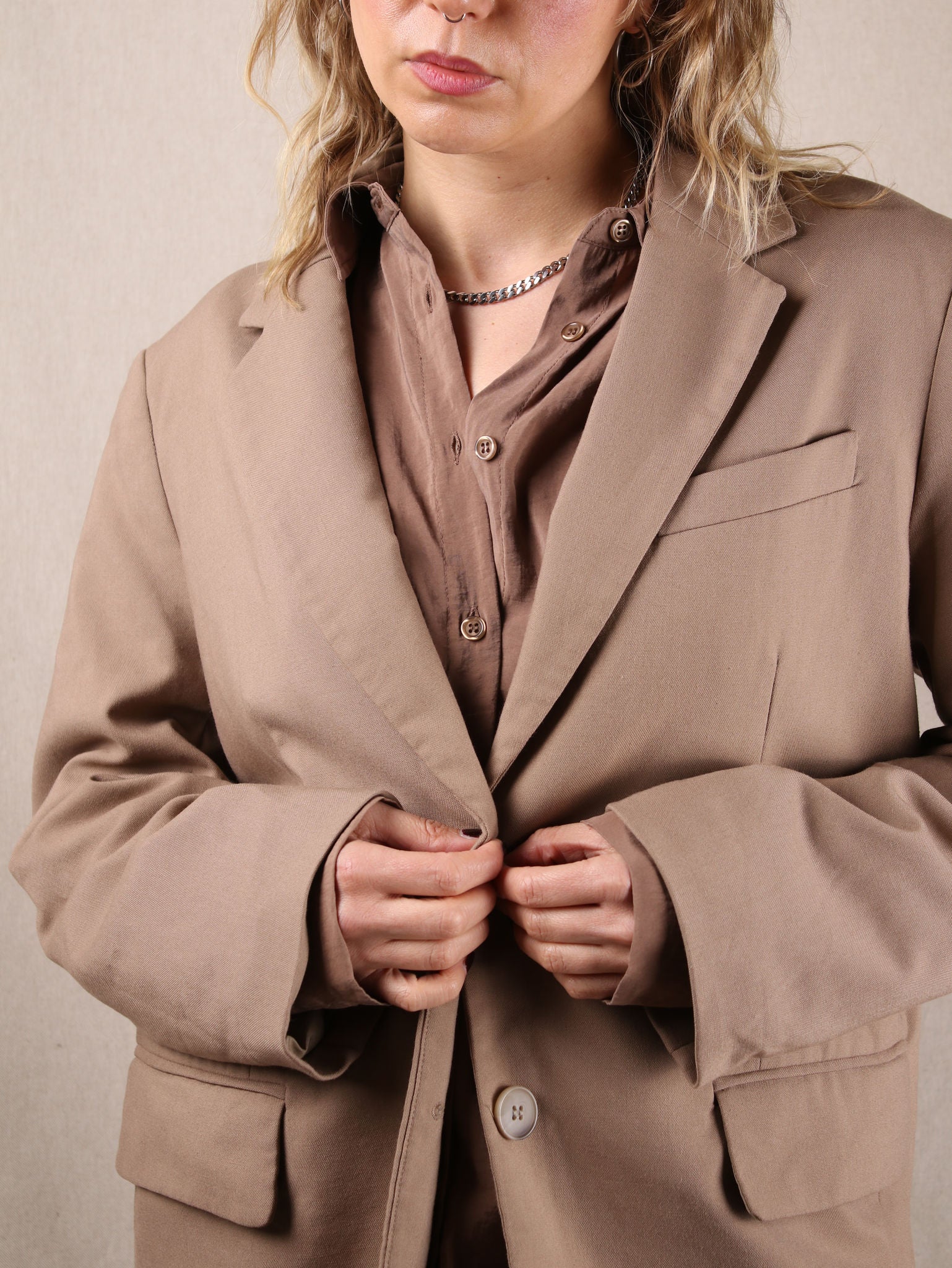 Blaze of Glory Dieser Secondhand H&M Blazer aus Gabardine in trendigem Mocha Mousse ist dein neuer Preloved-Liebling für den ultimativen Oversize-Look. Unifarben und vielseitig kombinierbar, verleiht er jedem Outfit einen Hauch von lässiger Eleganz. Perfekt für den Layering-Look über einem schlichten T-Shirt oder einem coolen Hemd - ein Must-have für jede trendbewusste Garderobe!