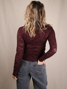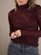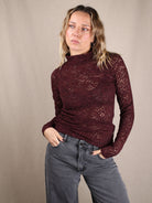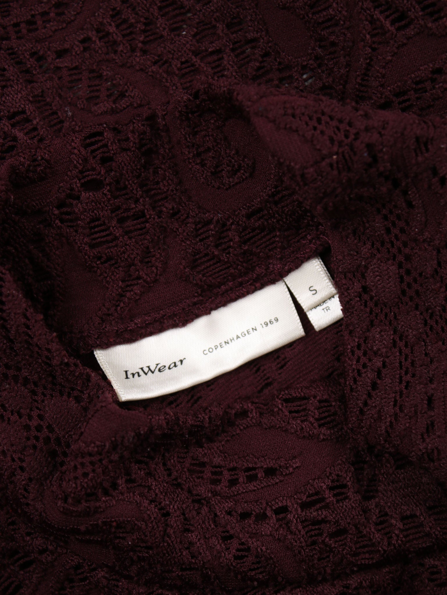 Secondhand Longsleeve aus Spitze von InWear in Burgundy mit kleinem Stehkragen.