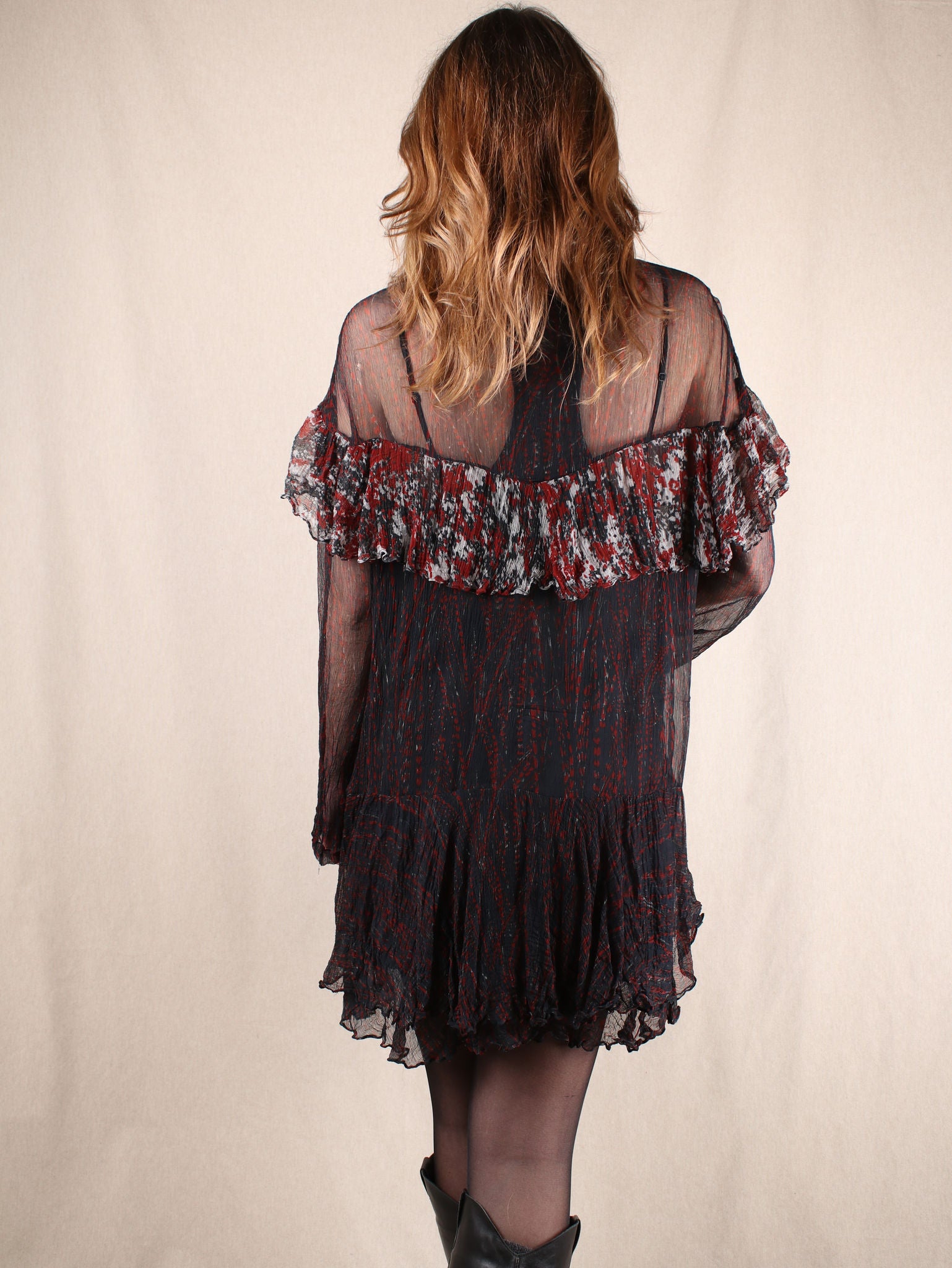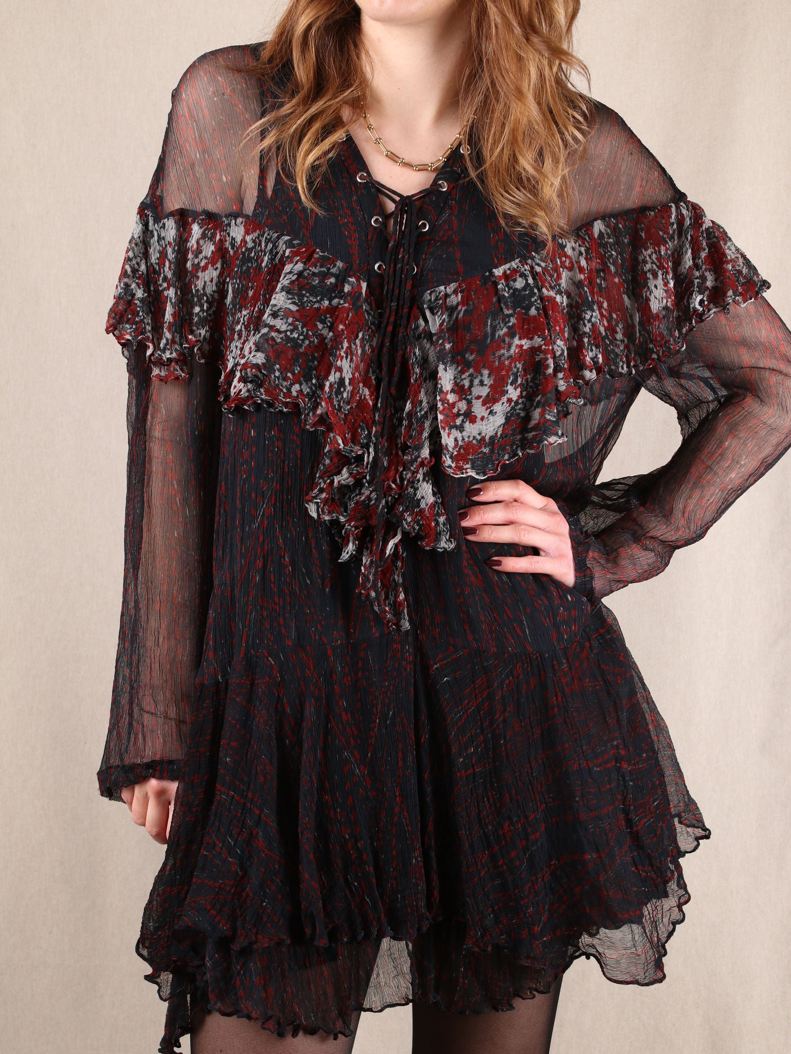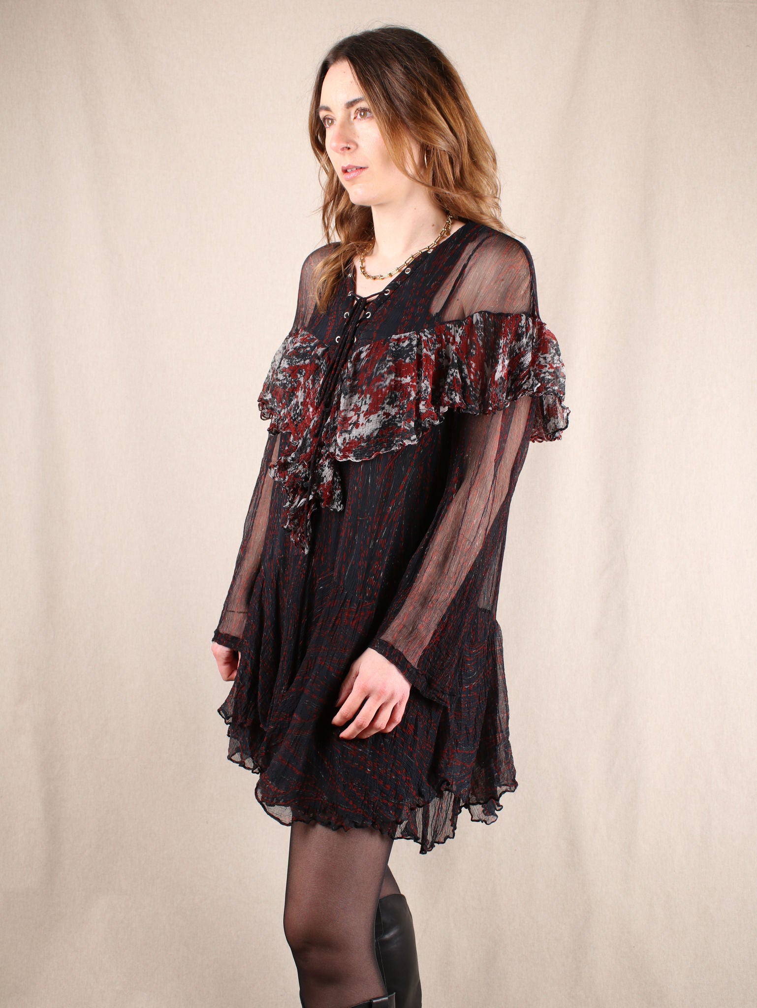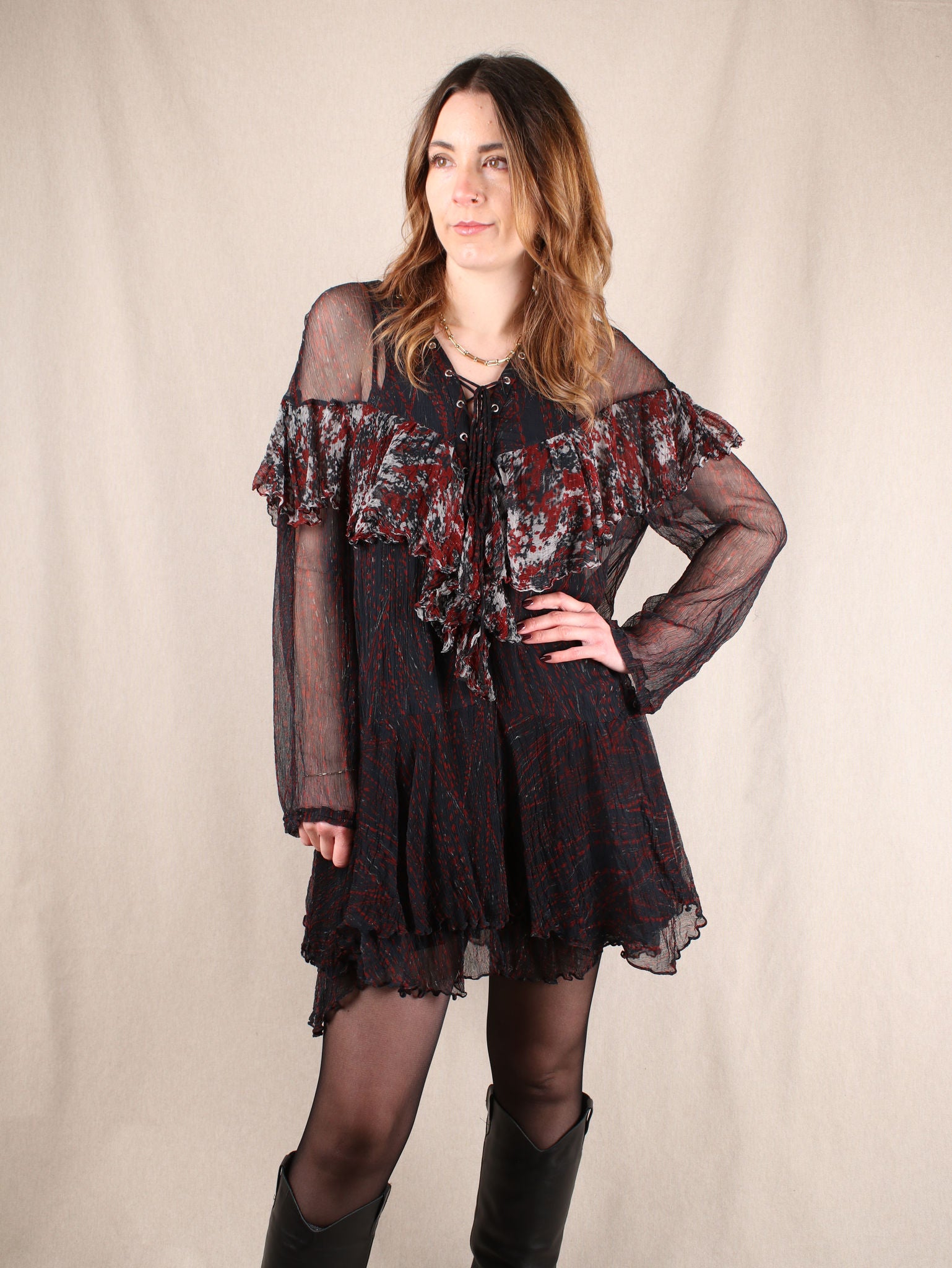 Secondhand Oversize Kleid von IRO aus Chiffon mit Volants und Schnürung