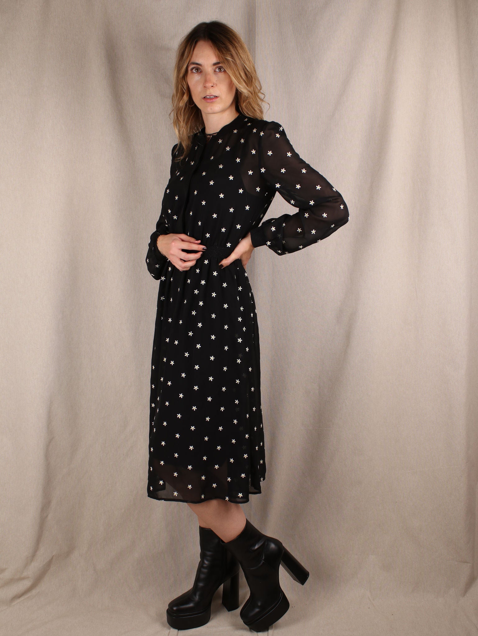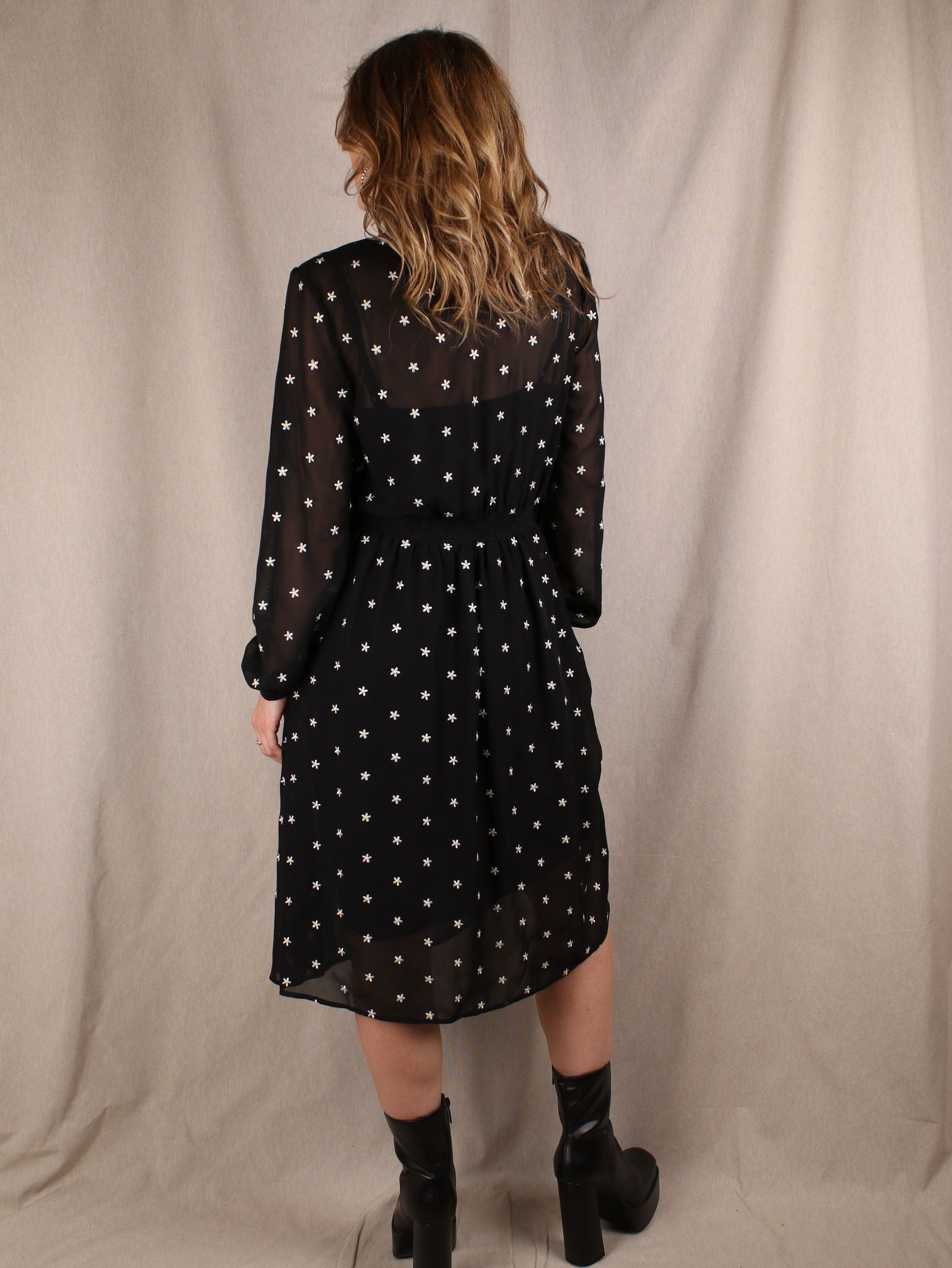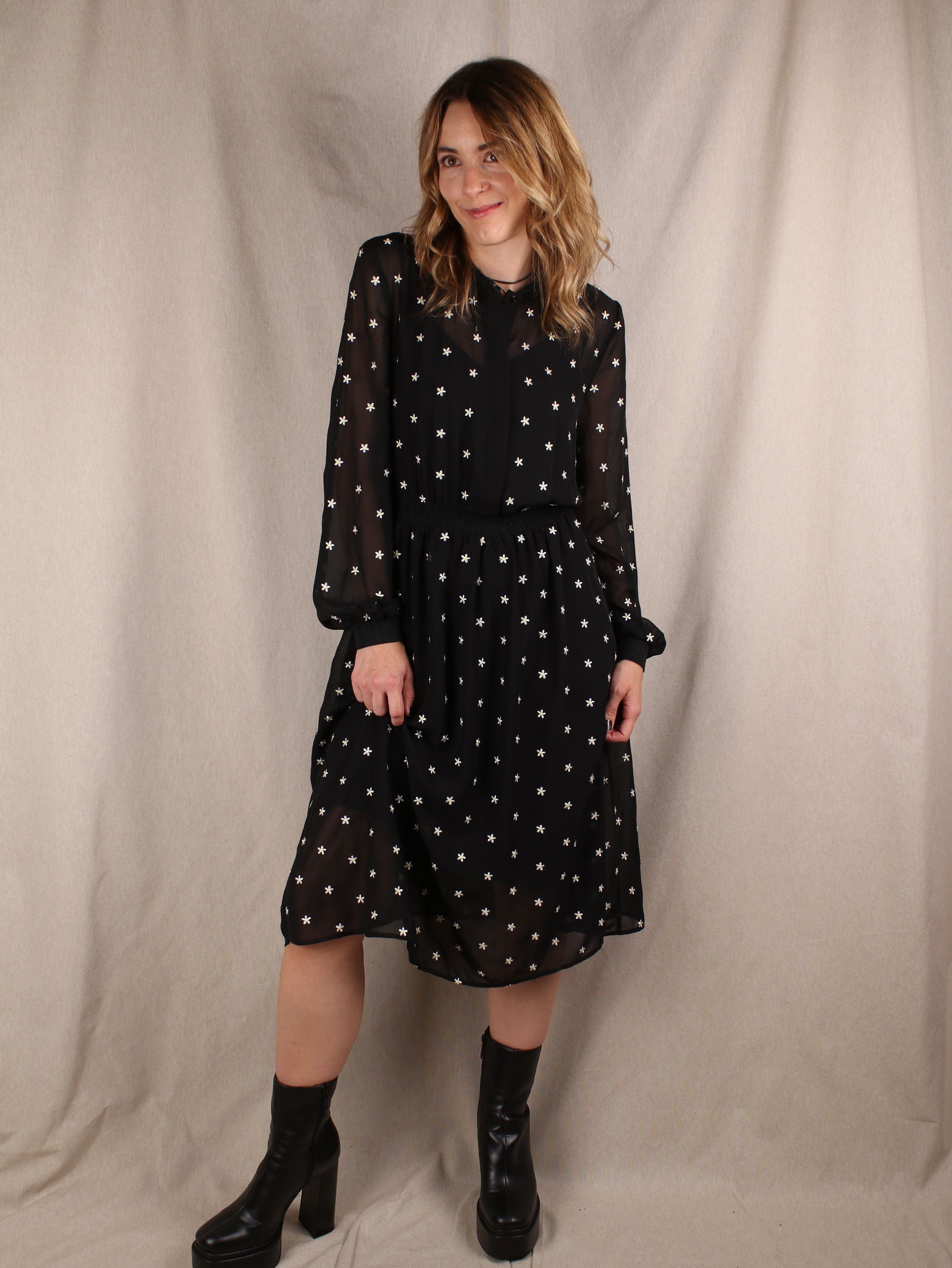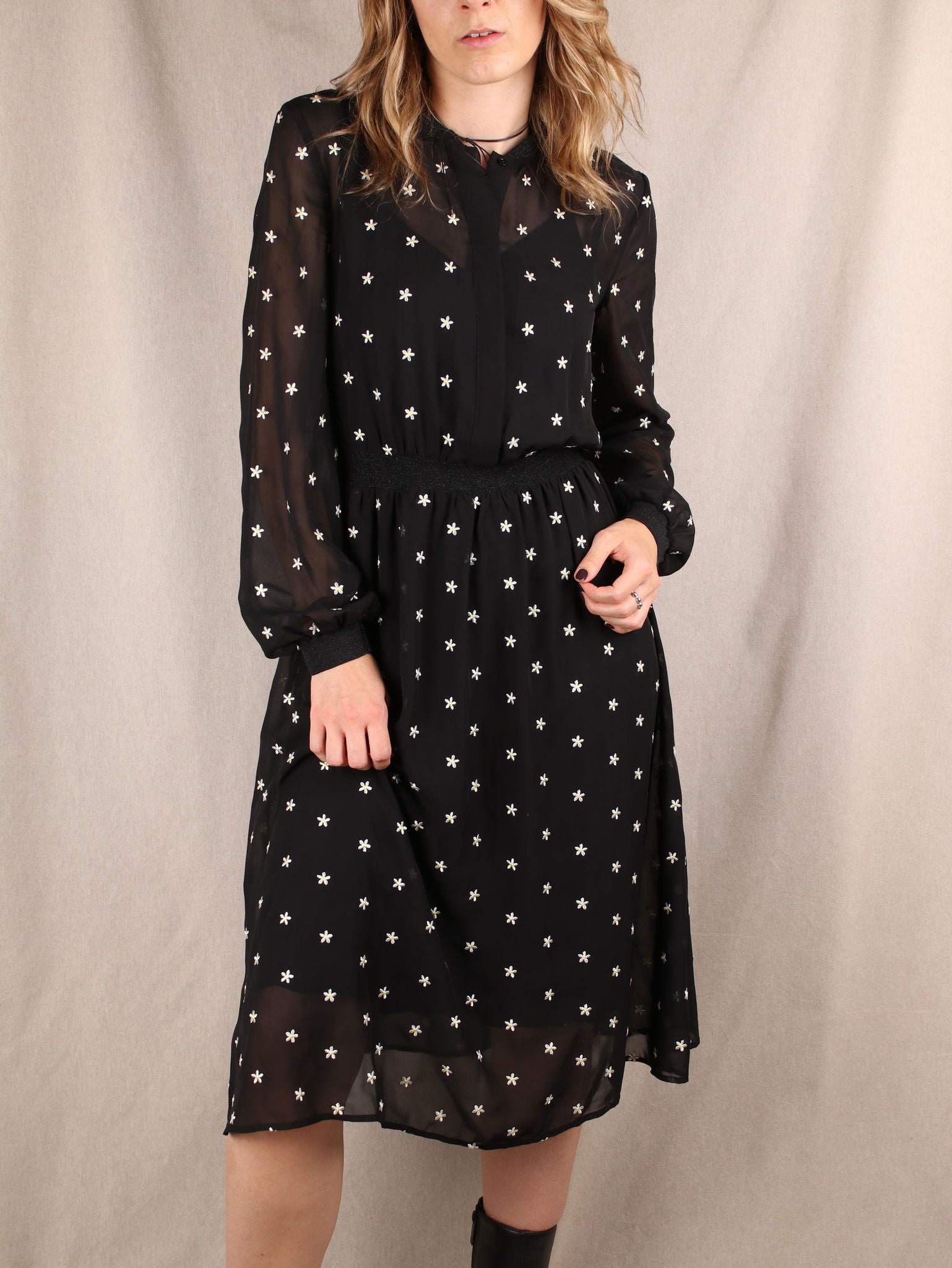 Midikleid mit Blümchen-Stickerei
