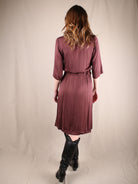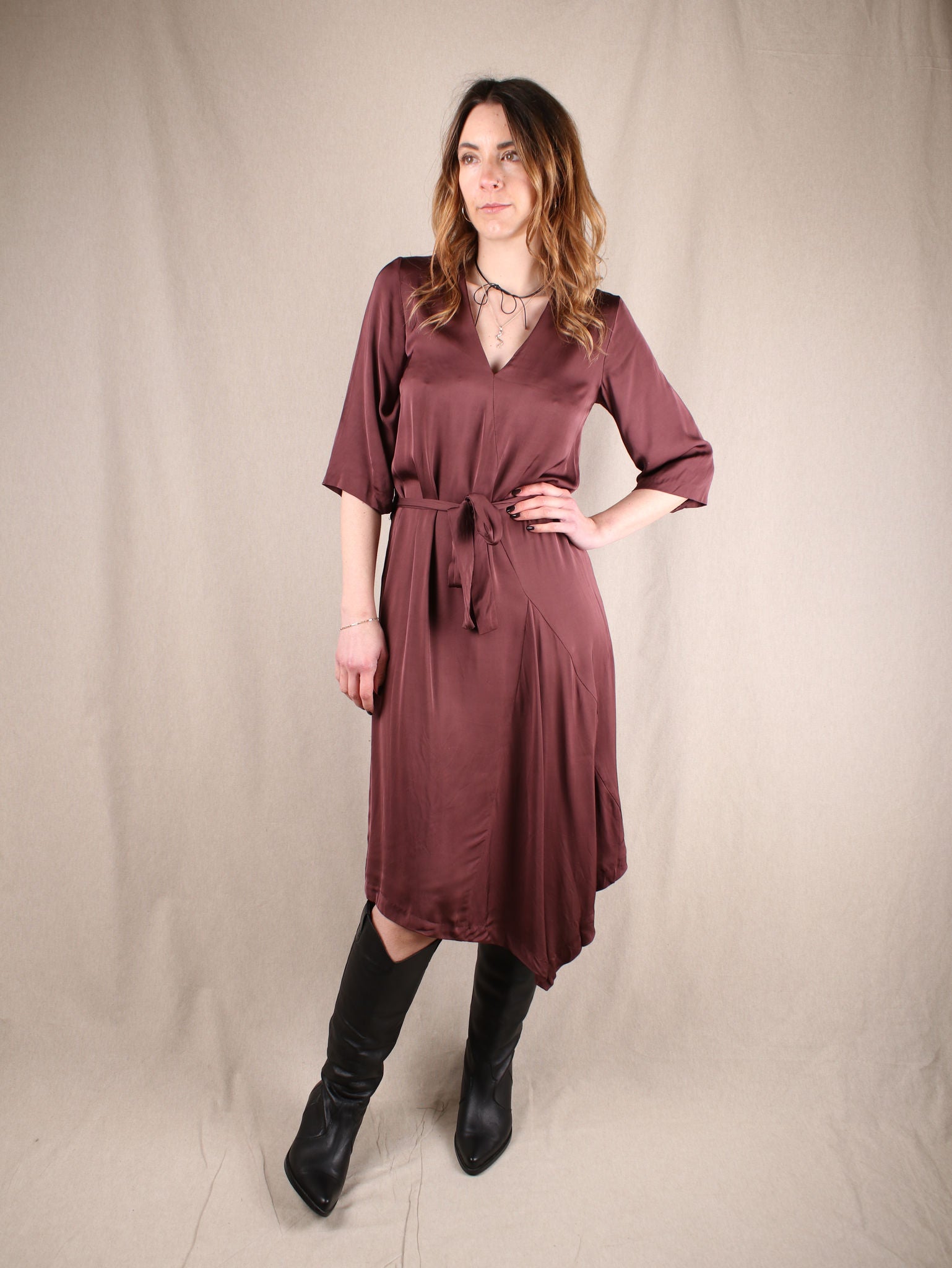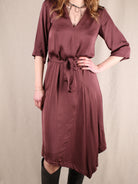 Elegantes Secondhand Midikleid von J.Lindeberg aus Satin mit Volant-Saum und Bindegürtel