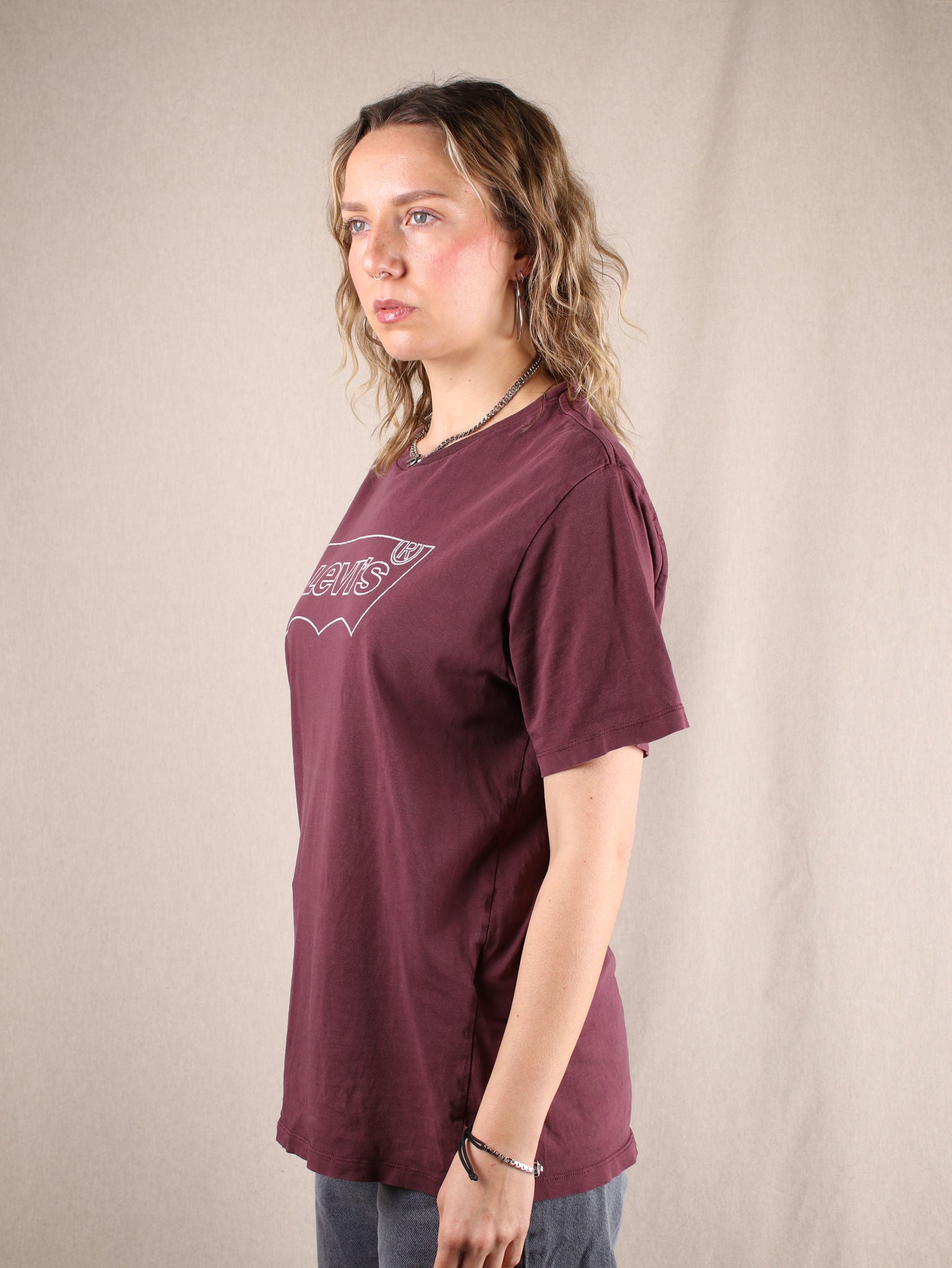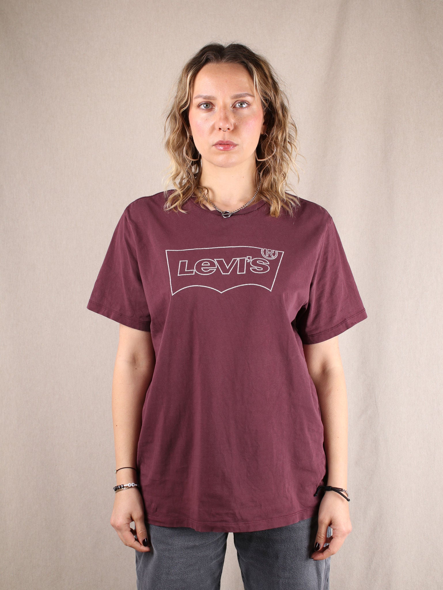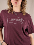 Cooles Secondhand T-Shirt von Levi's in Bordeaux mit Logo Print.