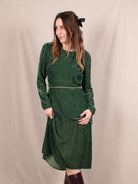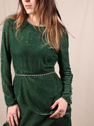 Dieses neuwertige Secondhand Kleid von Maje bringt mit seinem smaragdgrünen Samt und der taillierten Silhouette echten Festtags-Glam auf die Bühne. Die langen Ärmel und die dezenten Rüschen sorgen für einen eleganten Look, der perfekt für Xmas-Momente ist, in denen du classy erscheinen willst, aber trotzdem ein bisschen märchenhaft.