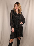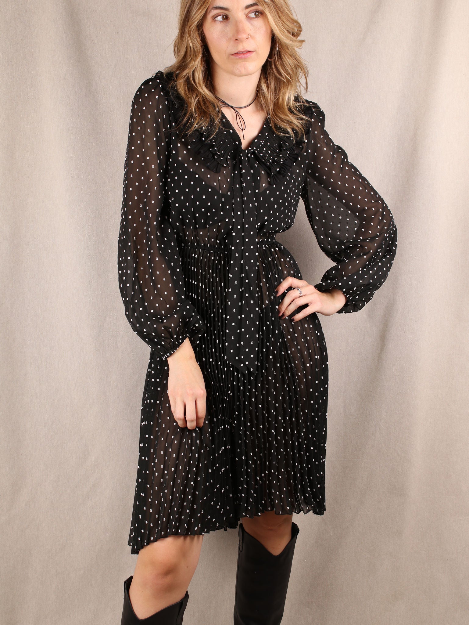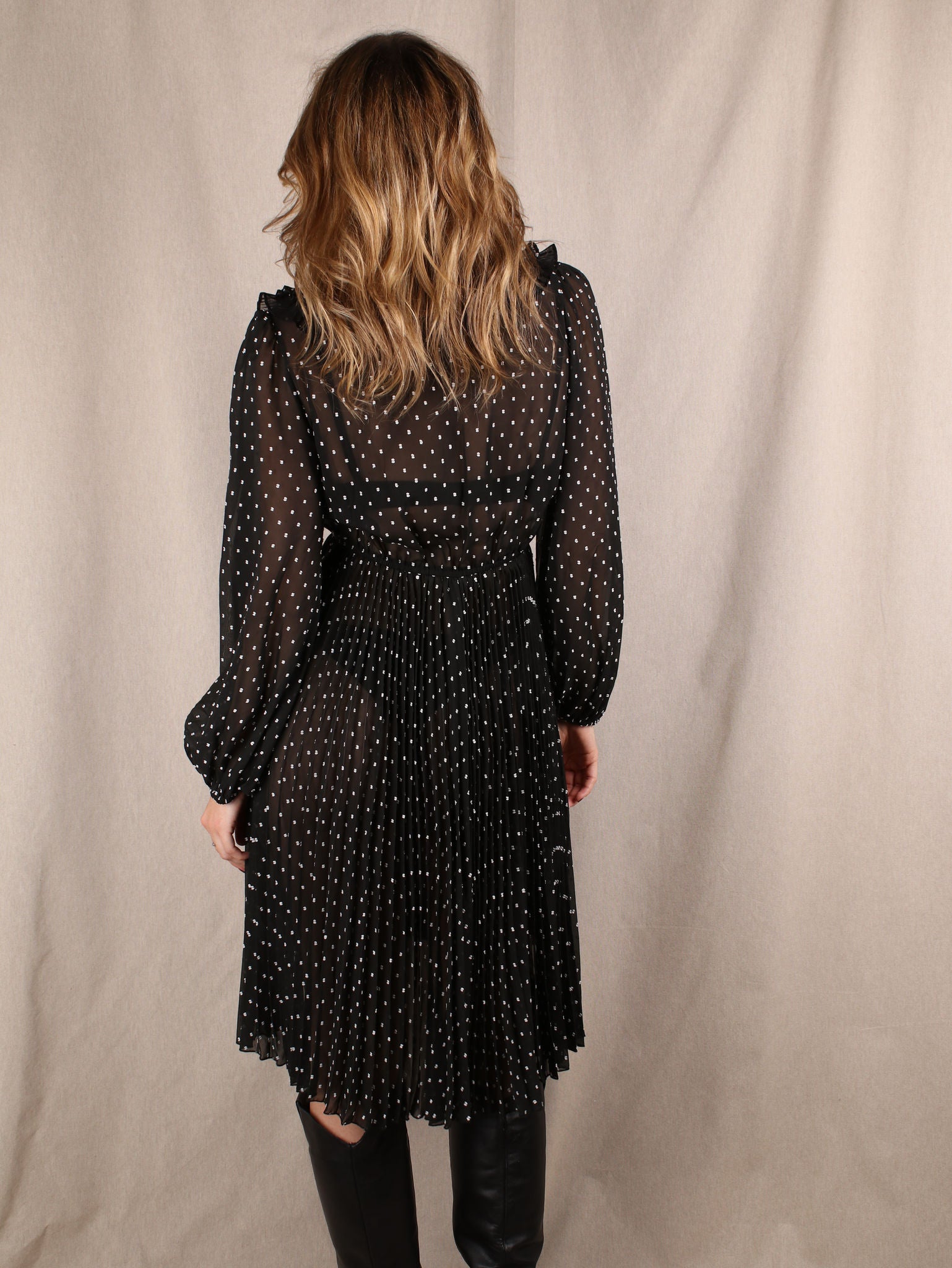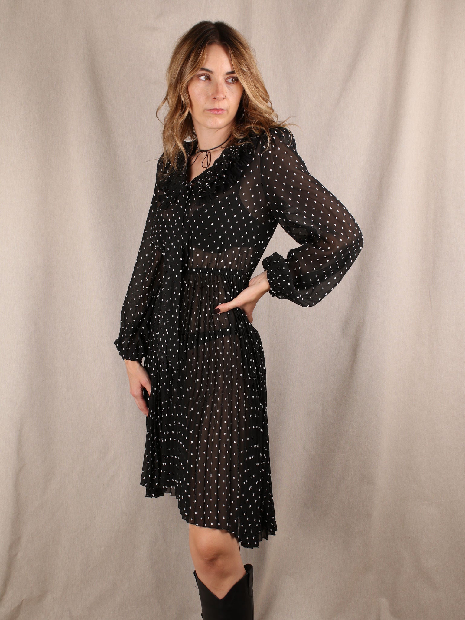 Blusenkleid aus Chiffon mit Fil Coupé Punkten, Rüschen und plissiertem Rock