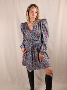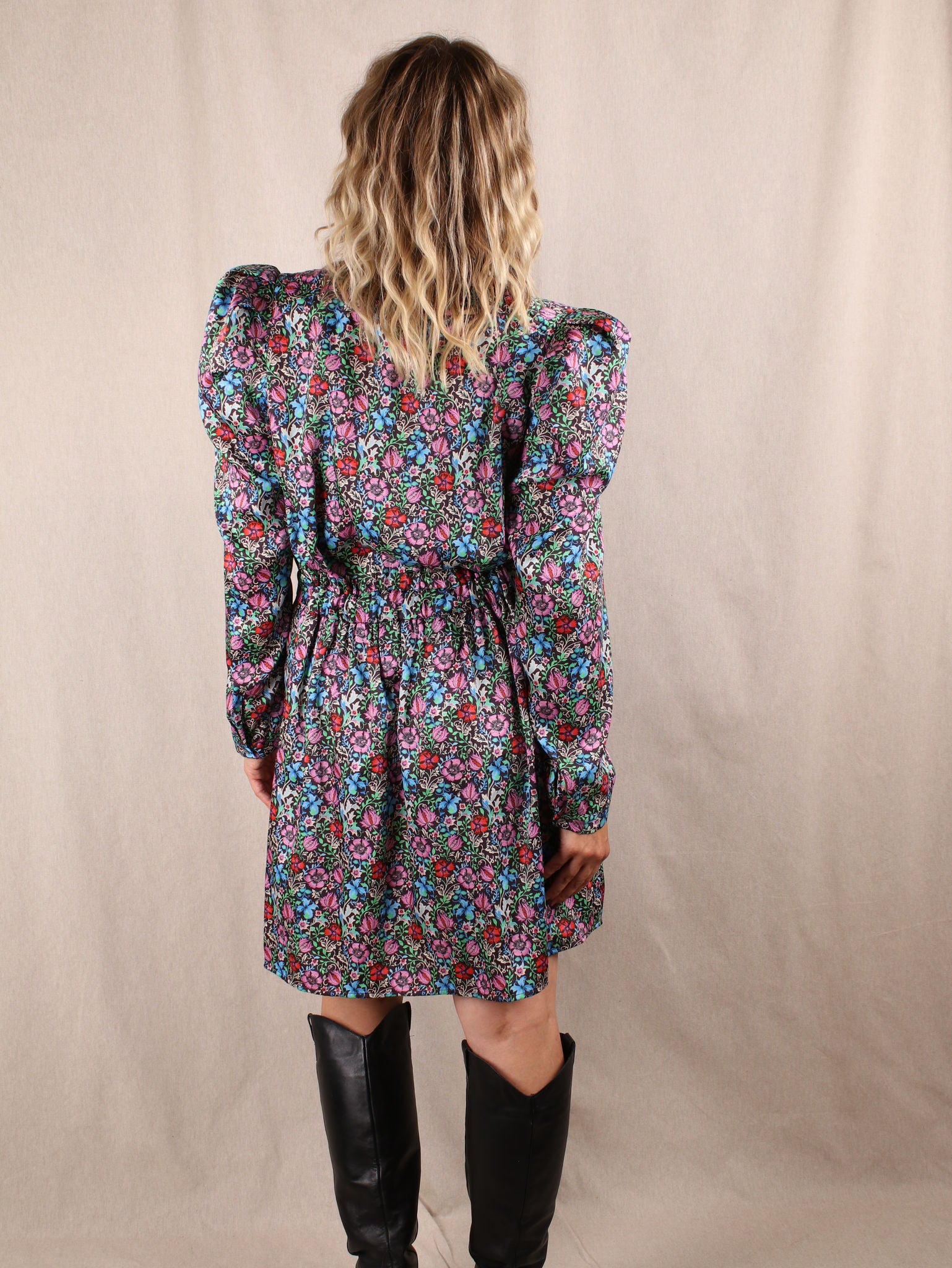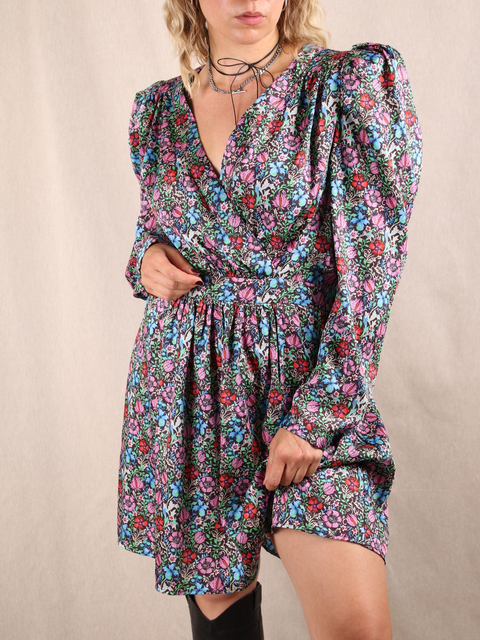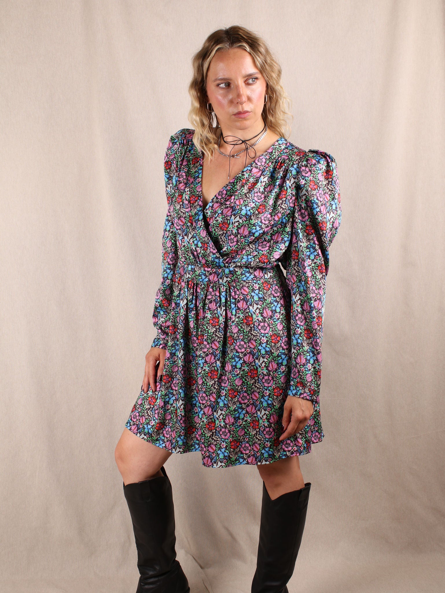 Satin-Kleid mit Flower-Print und Puffärmeln