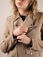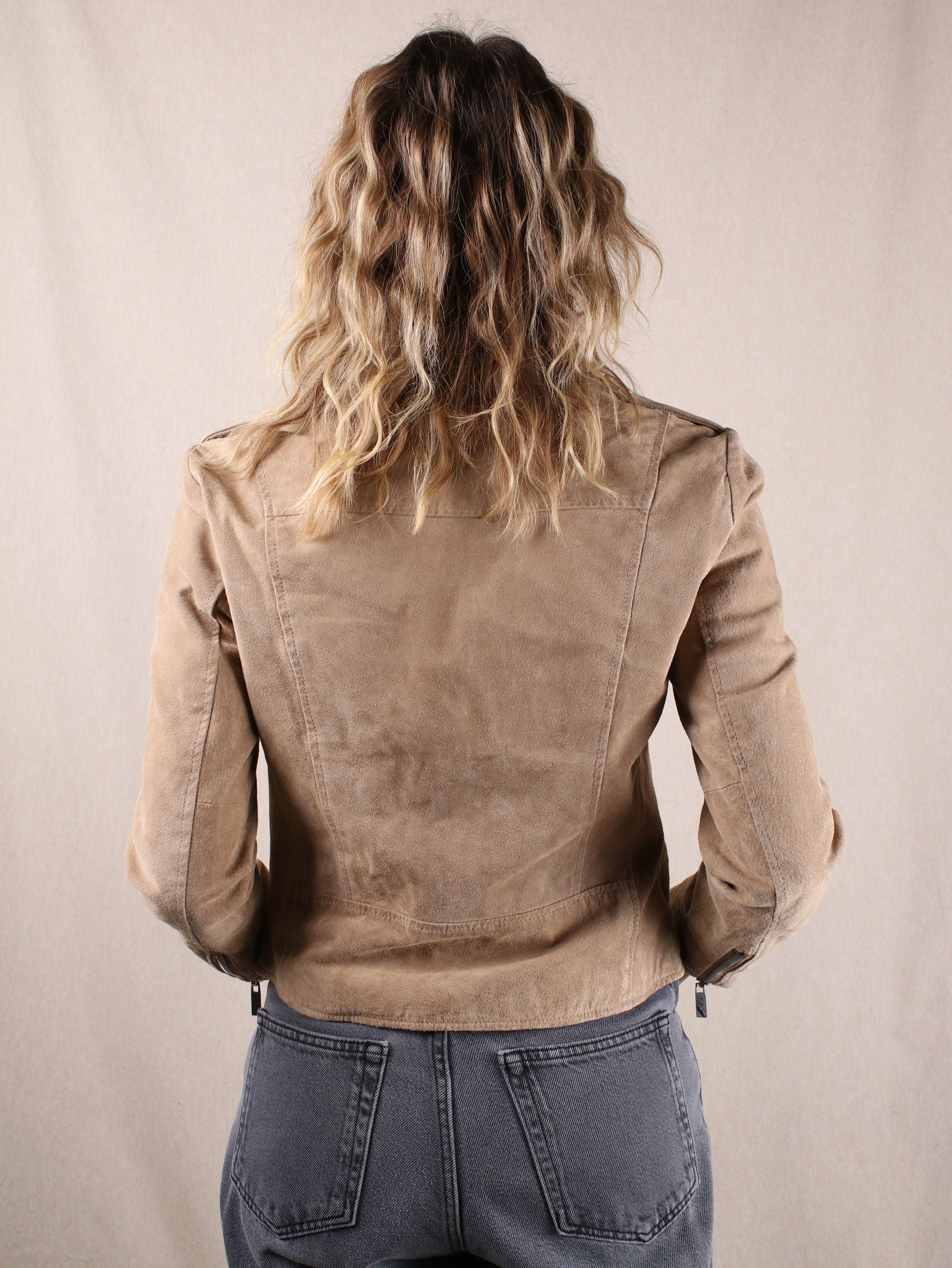 Beige is the New Black Diese preloved Mango Lederjacke aus hochwertigem Veloursleder ist dein neuer Style-Game-Changer! Ob lässig zu Jeans oder schick über einem Kleid – dieses unifarbene Must-have bringt frischen Wind in deine Garderobe und sorgt für einen stilvollen Auftritt.